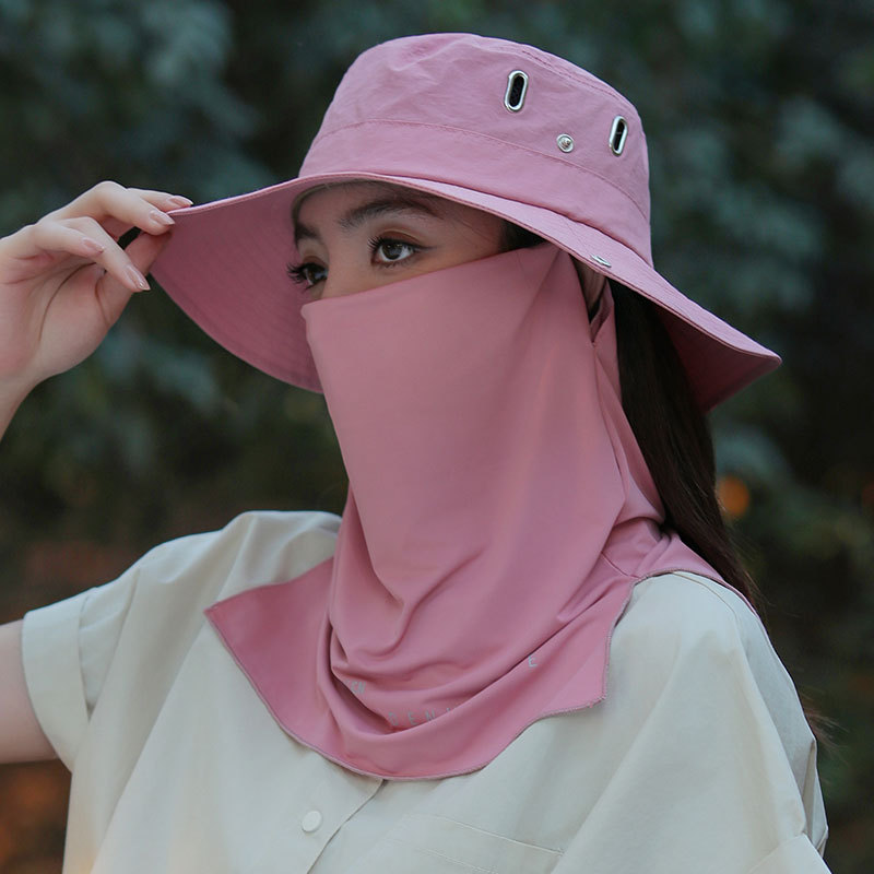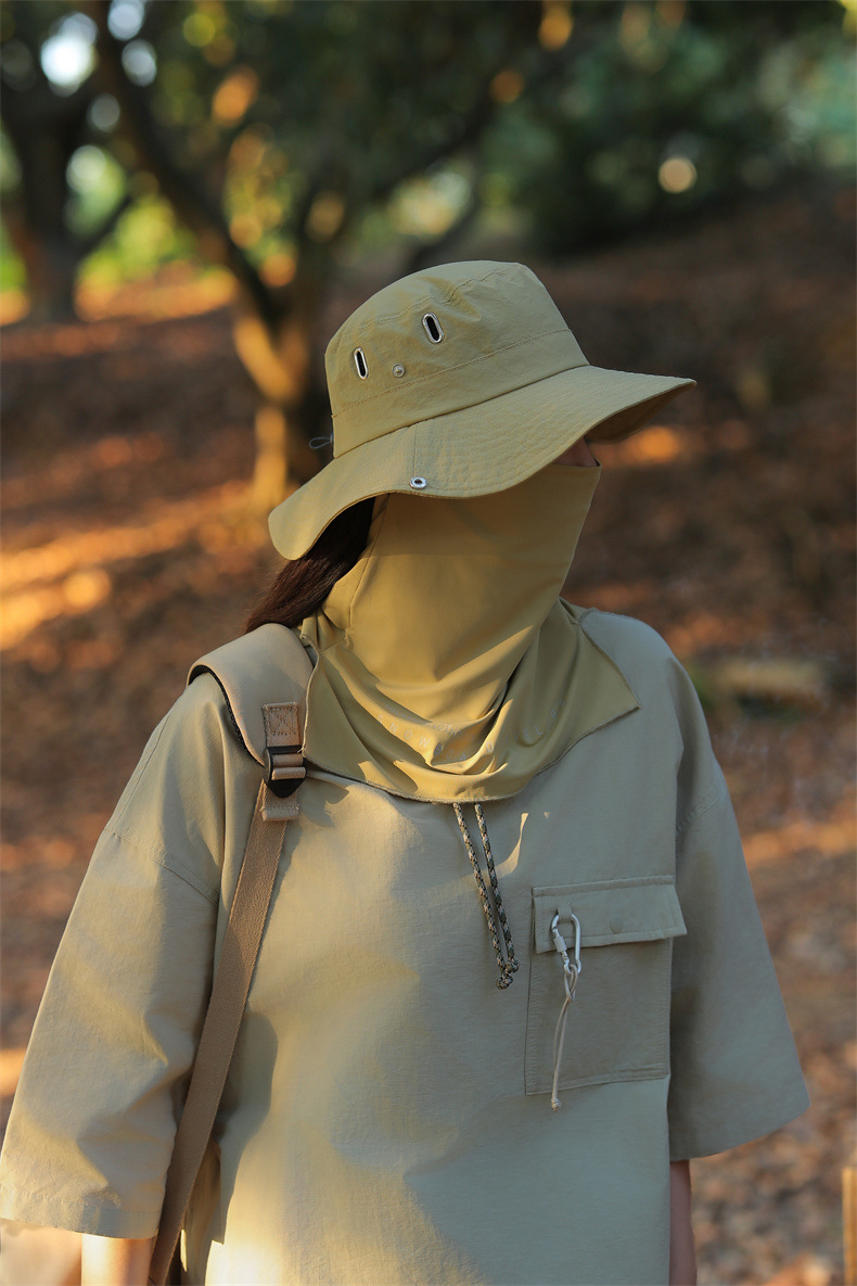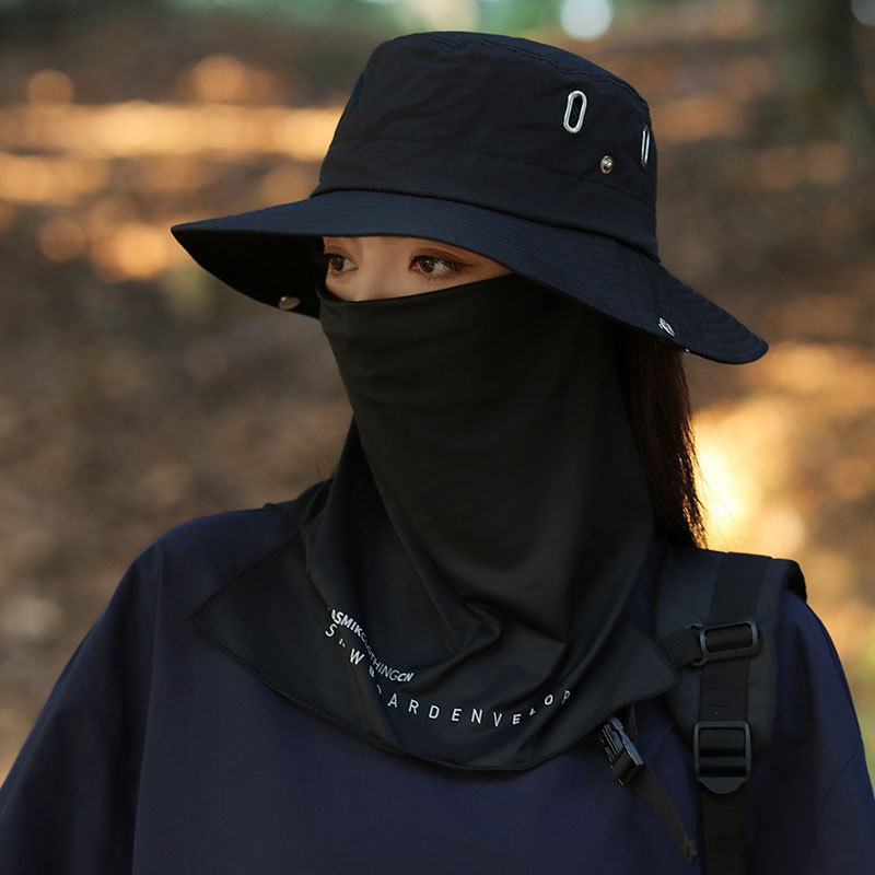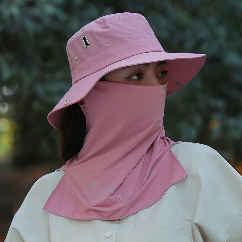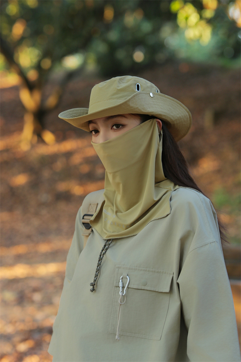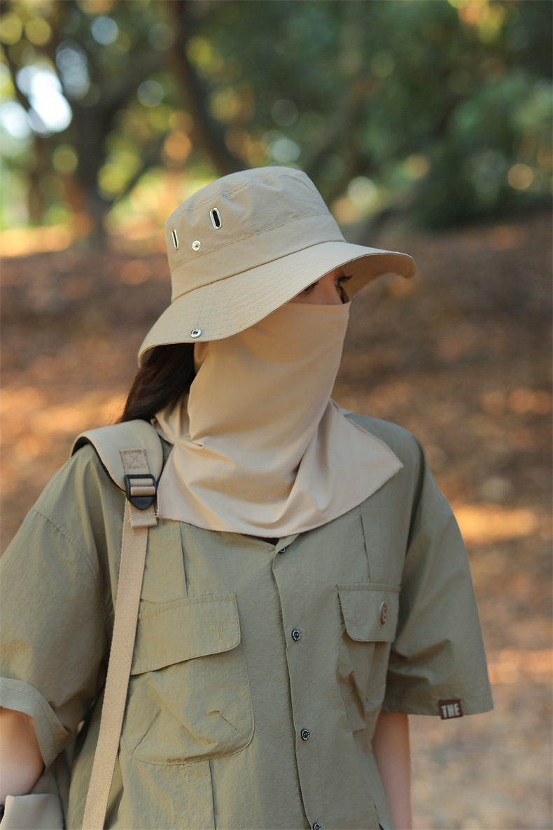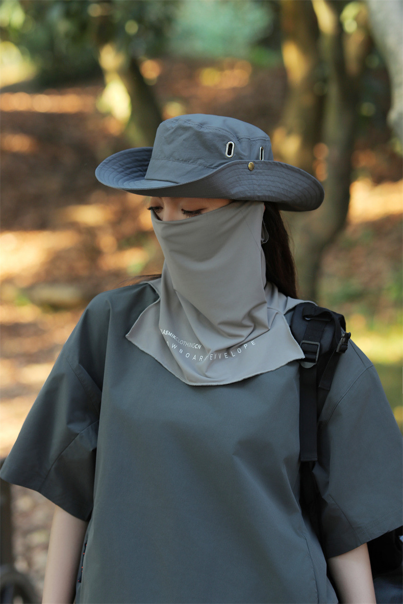 户外遮阳帽子女士夏季大沿防晒徒步登山帽潮遮脸面纱罩男士钓鱼帽