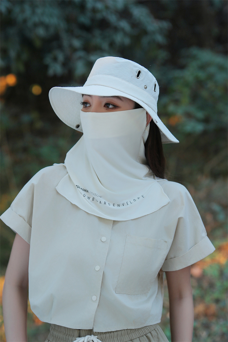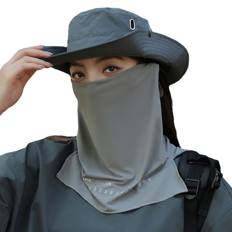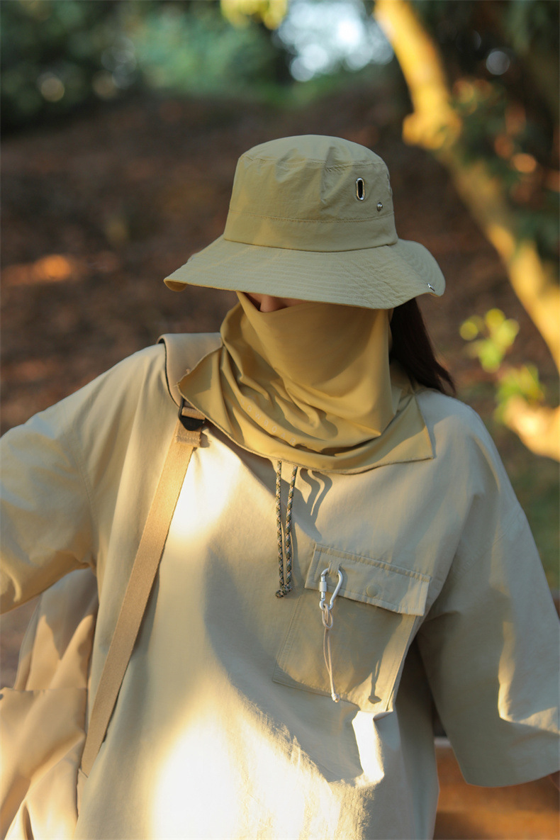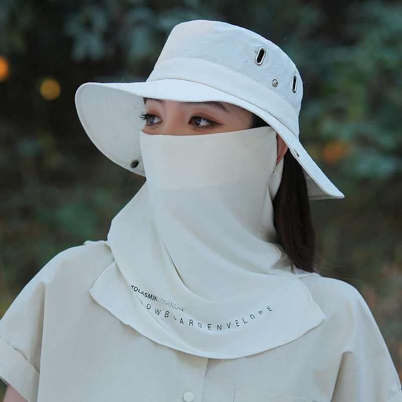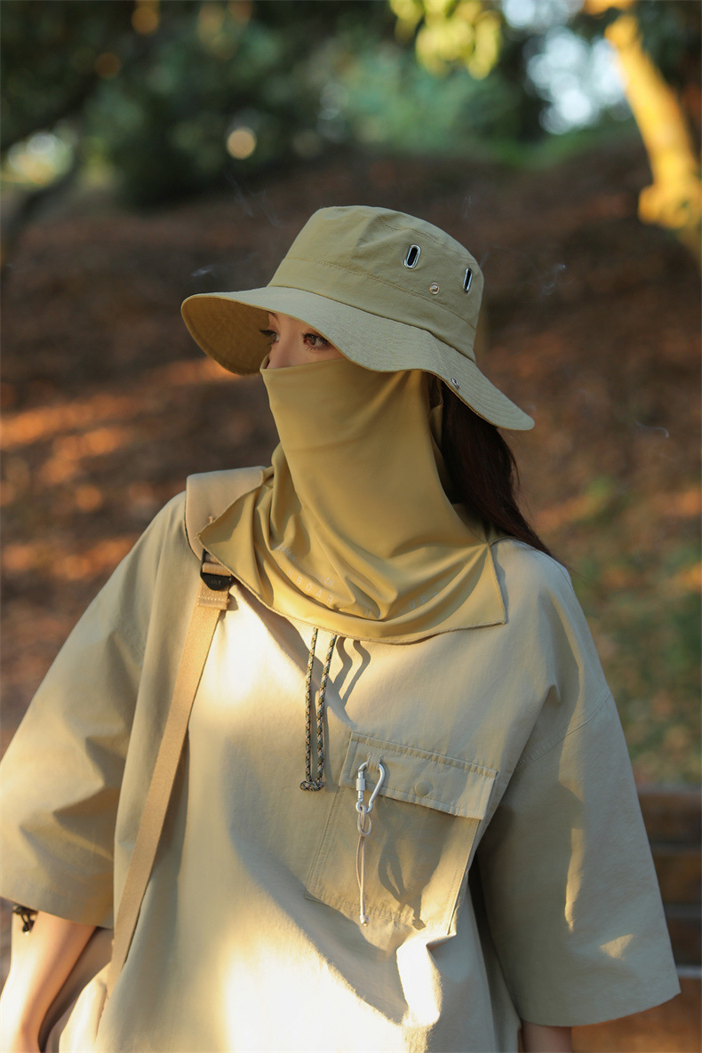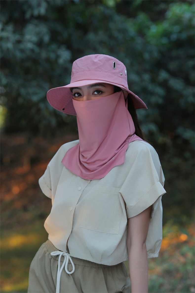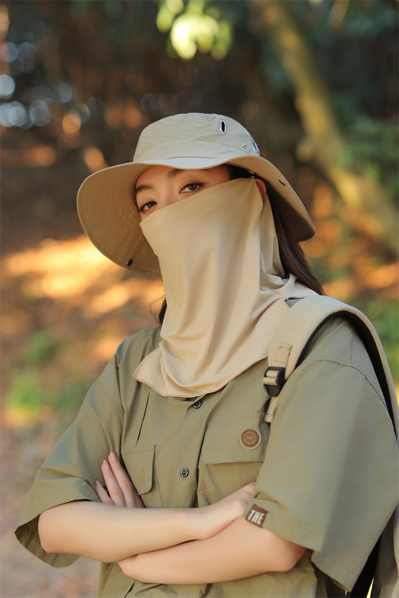 户外遮阳帽子女士夏季大沿防晒徒步登山帽潮遮脸面纱罩男士钓鱼帽