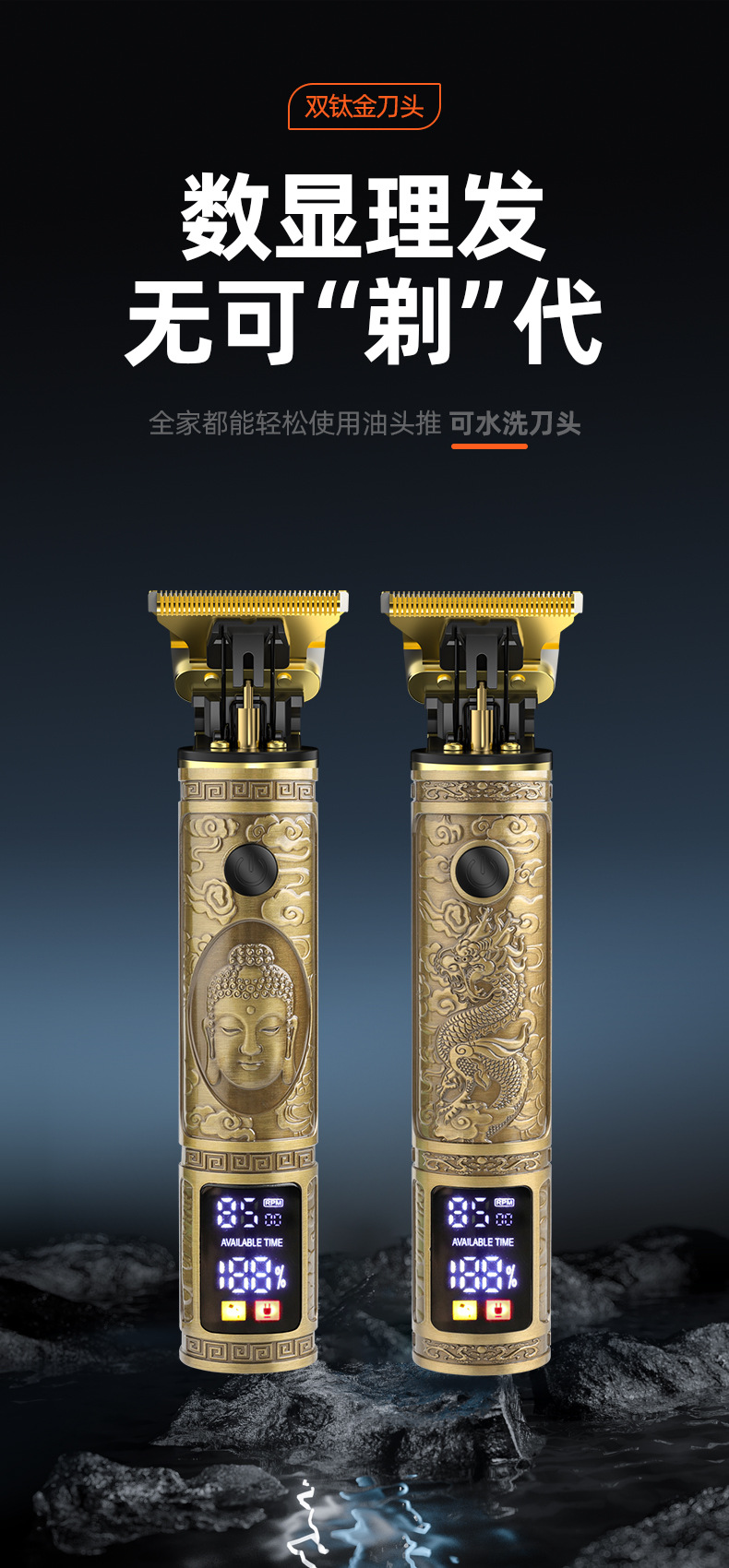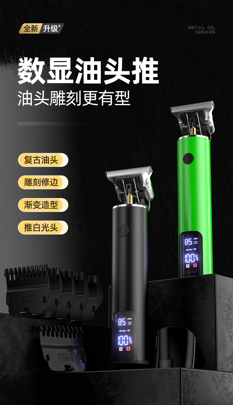 跨境电动防水雕刻T9理发器 油头电推剪剃发电推子光头神器批发