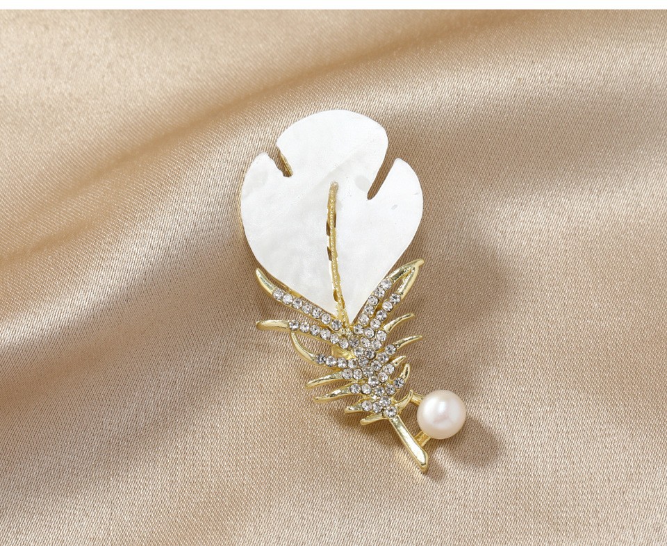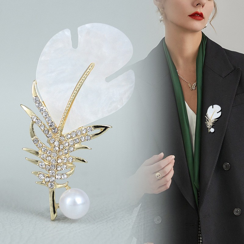 高档羽毛胸针女士气质小香风珍珠胸花水钻小众设计感服装配饰别针