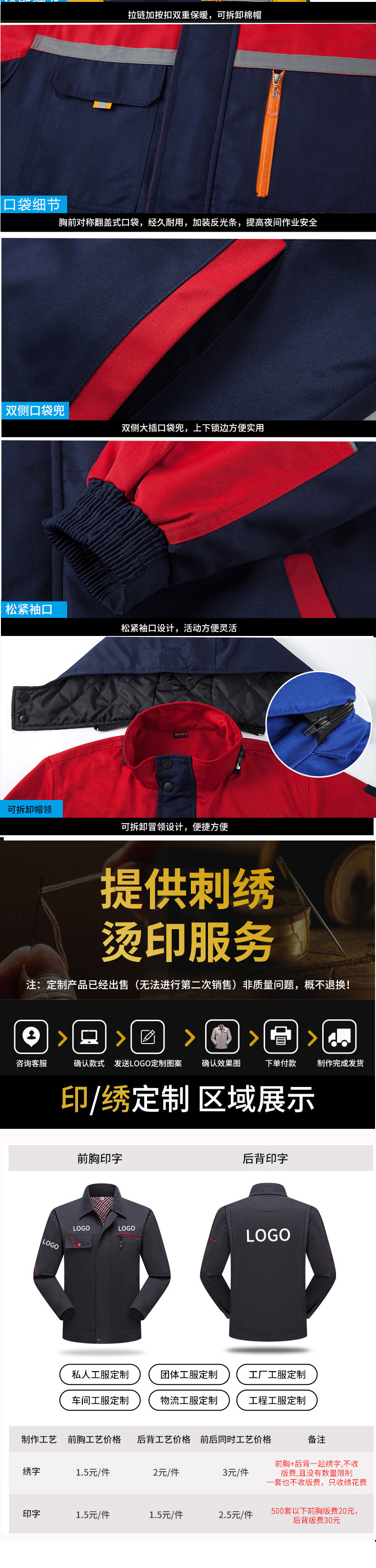 冬季工装加工定制防寒工作服棉衣反光加厚保暖劳保汽修服工厂车间