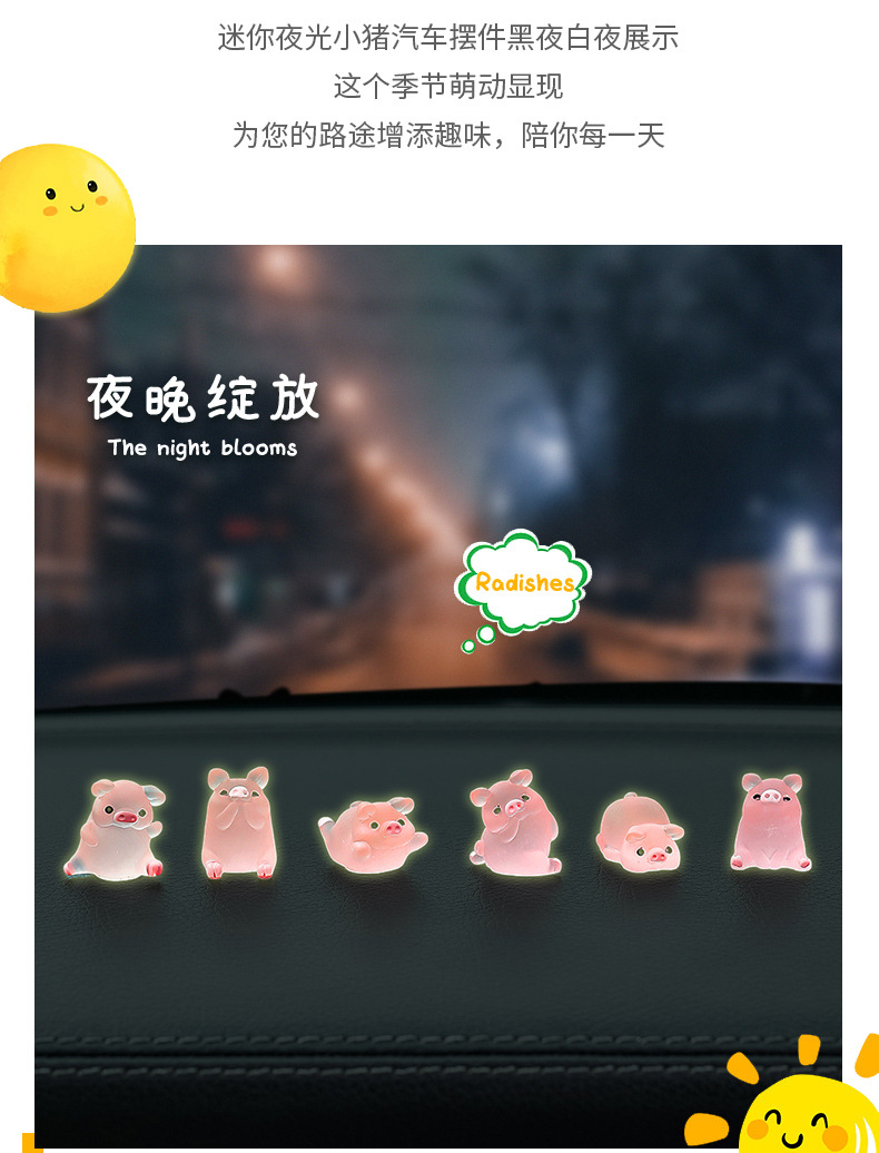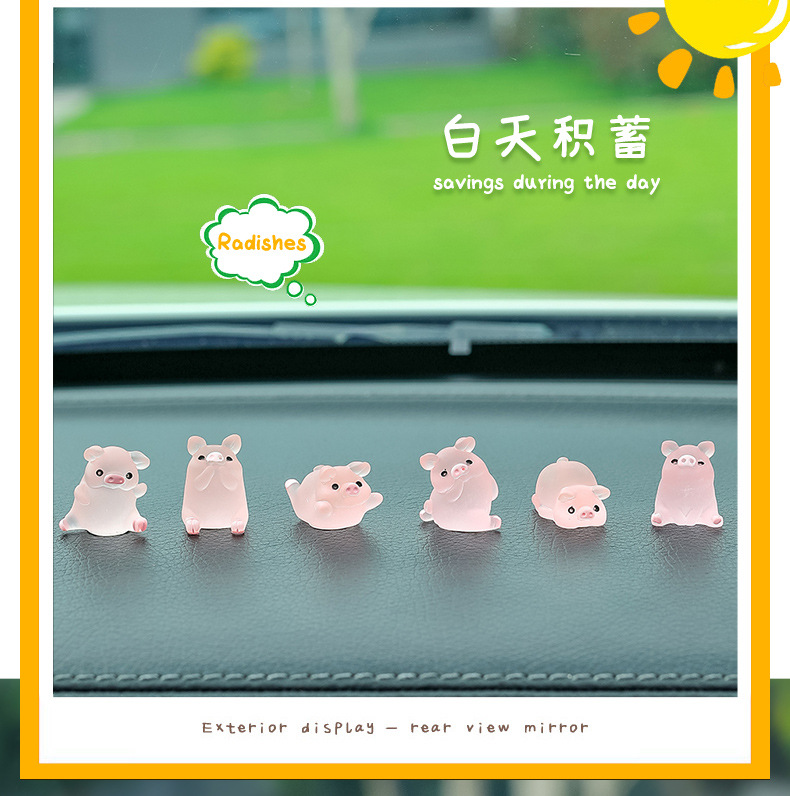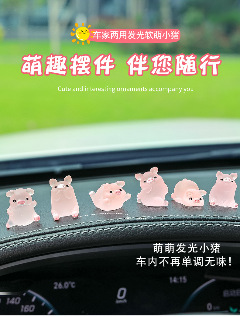 汽车中控台可爱卡通装饰品新款车内网红迷你夜光猪车载内饰小猪仔