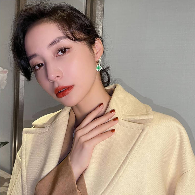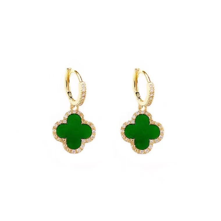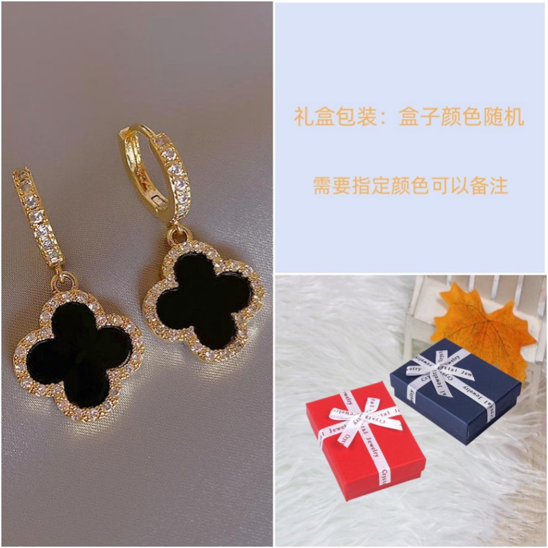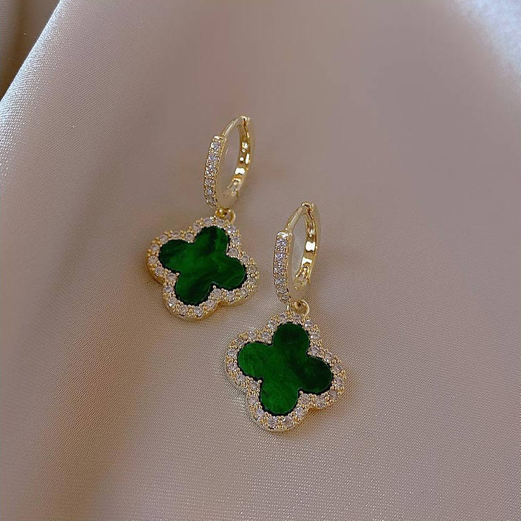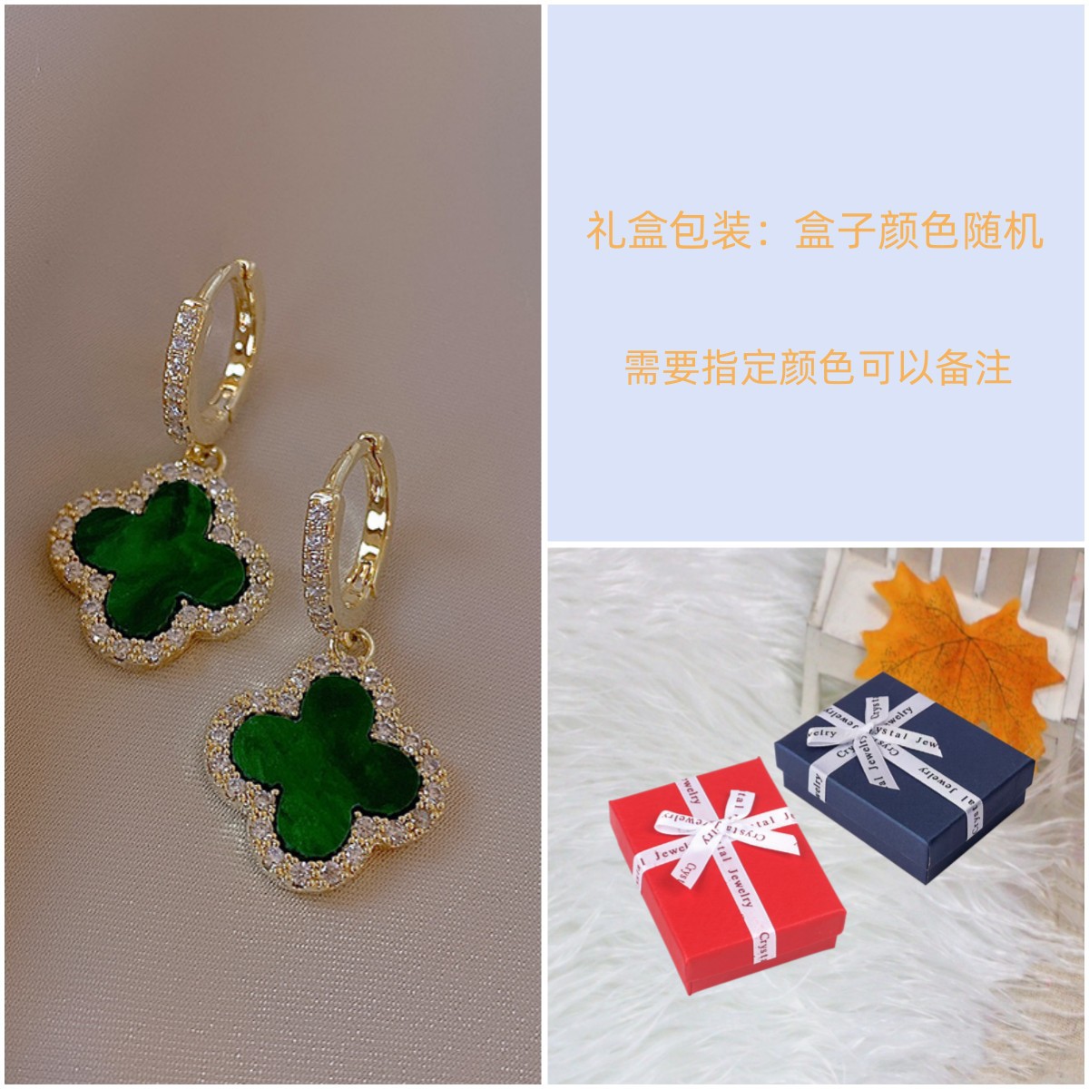 抖音四叶草2022年新款复古闪钻网红高级感耳钉小香风耳环女耳扣