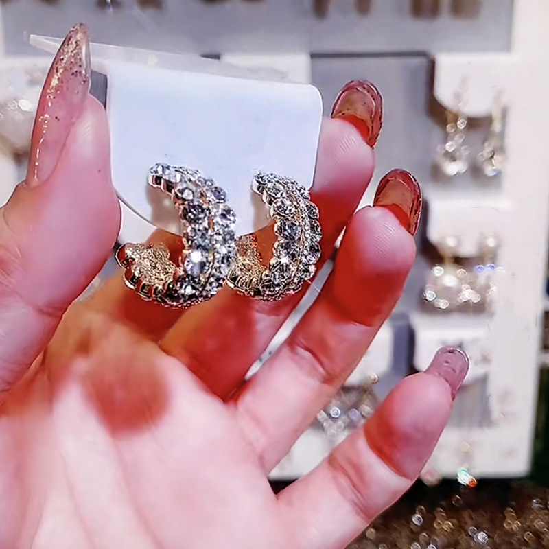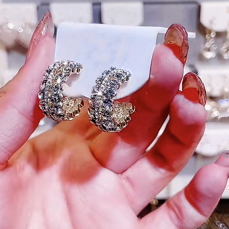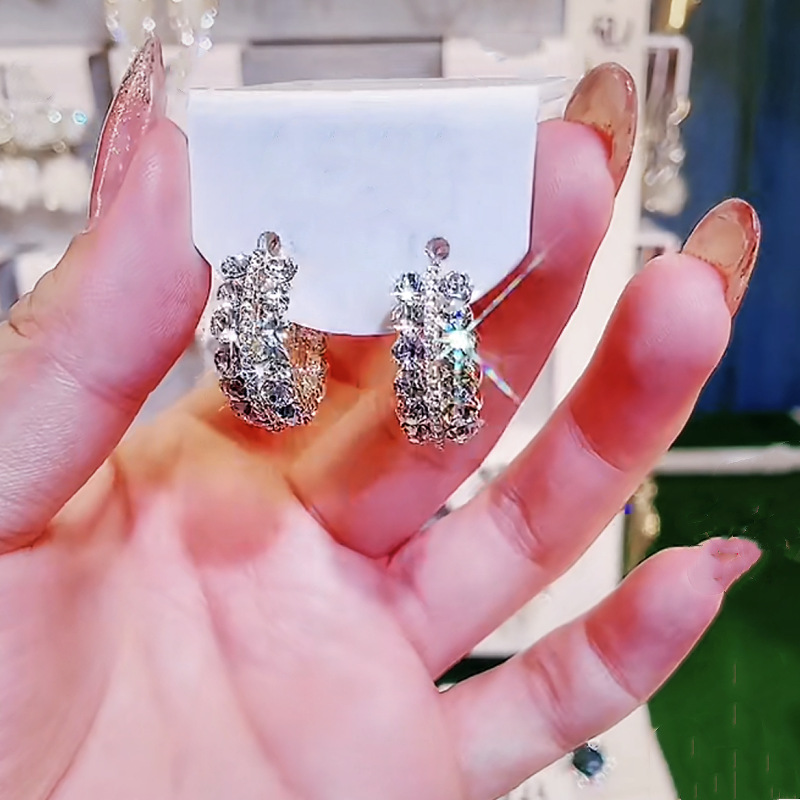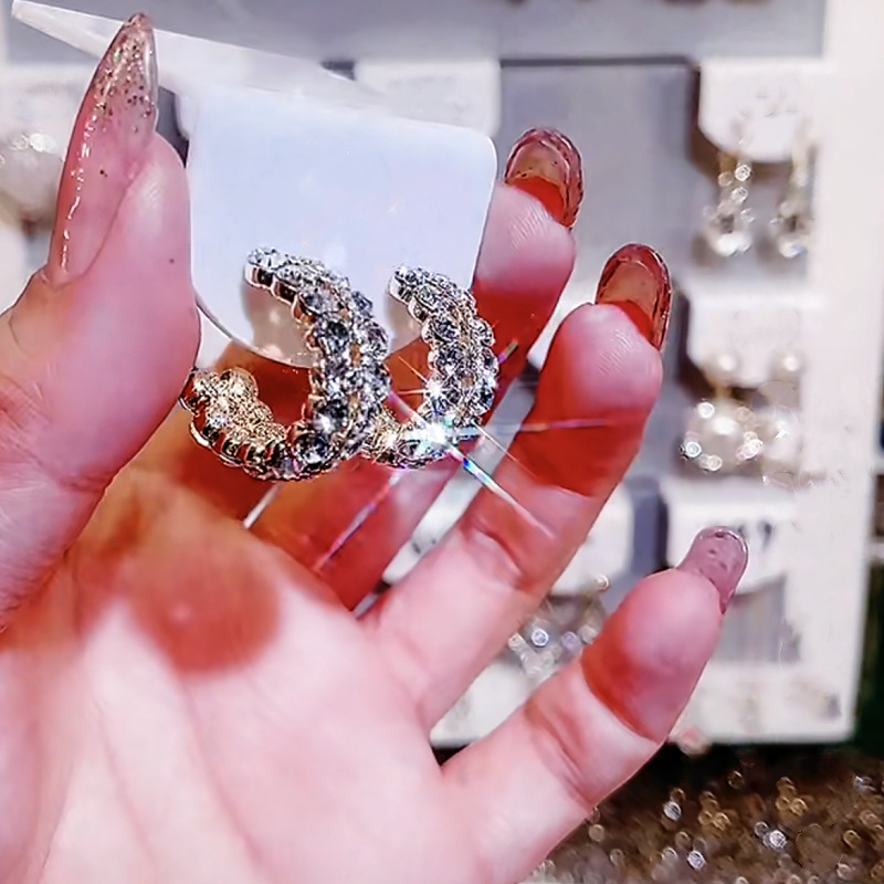 重工超闪C型圈圈耳环银针耳钉高级感轻奢气质圆圈耳环小耳圈批发