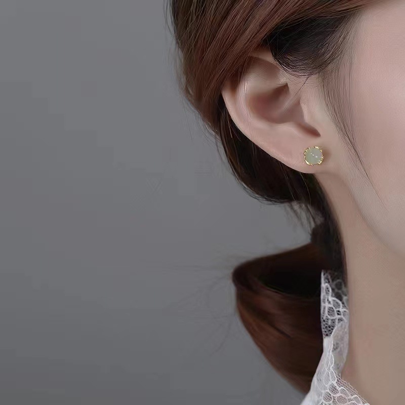 翠绿耳钉女小巧百搭高级感玉石耳环出游耳饰韩版2023年新款潮网红