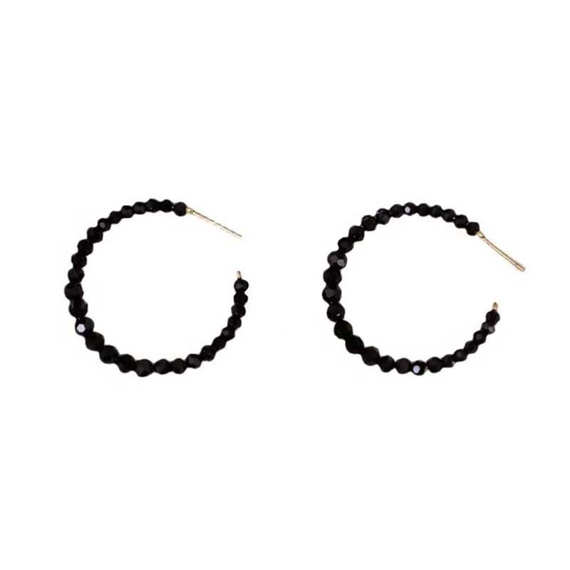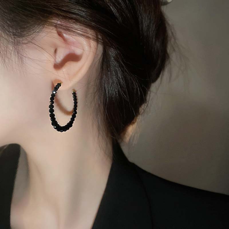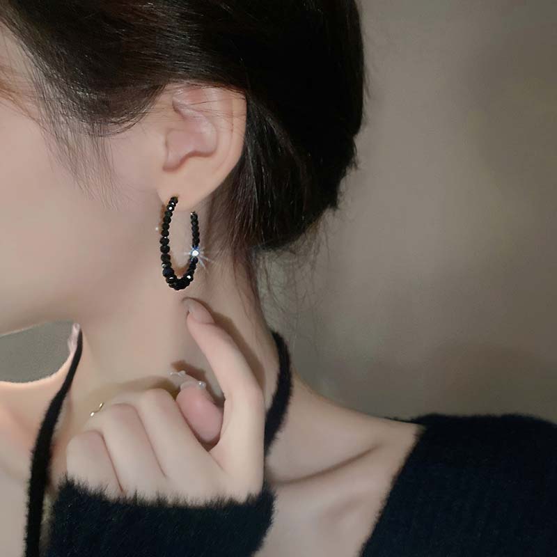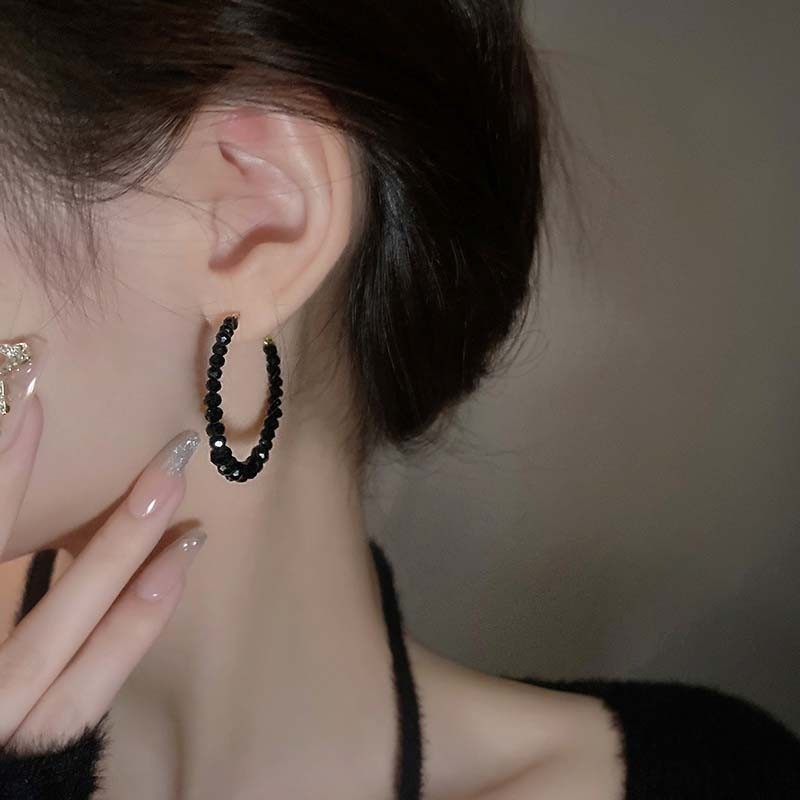 北夜极光~黑色水晶大耳圈轻奢高级感耳环女2022年新款设计感耳饰