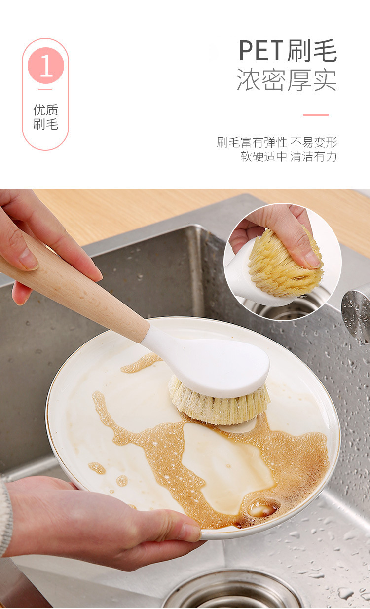 灶台锅刷家用长柄刷锅洗碗洗锅专用木柄刷子厨房除垢油污清洁神器