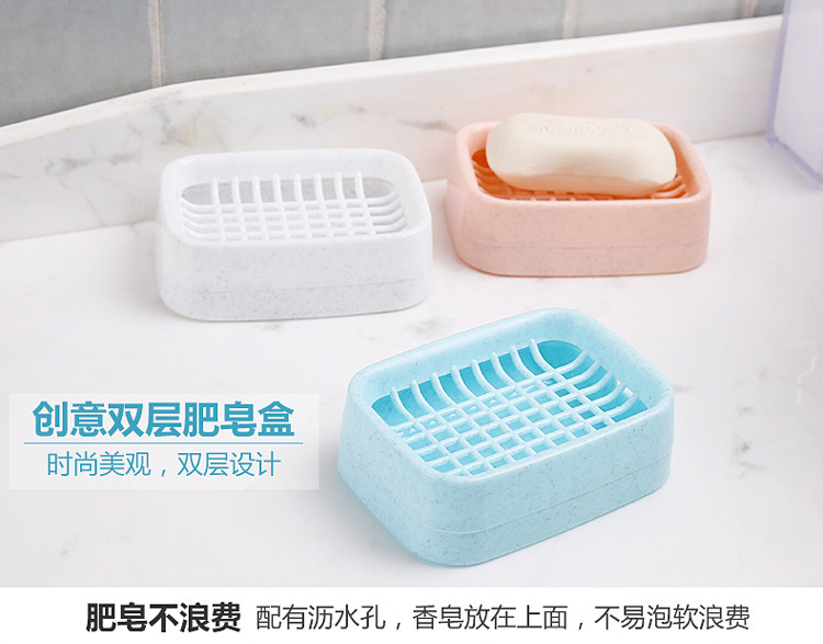肥皂盒免打孔可爱创意网格肥皂盒沥水双层沥水香皂架家肥皂盒家用