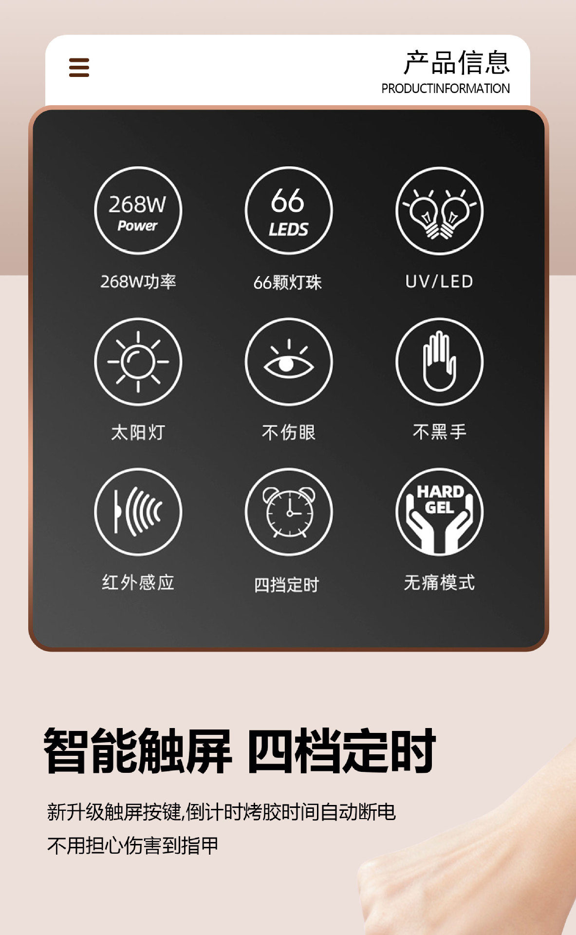 跨境新品QY-8美甲灯66灯珠大功率光疗机美甲光疗灯uv灯指甲烤灯