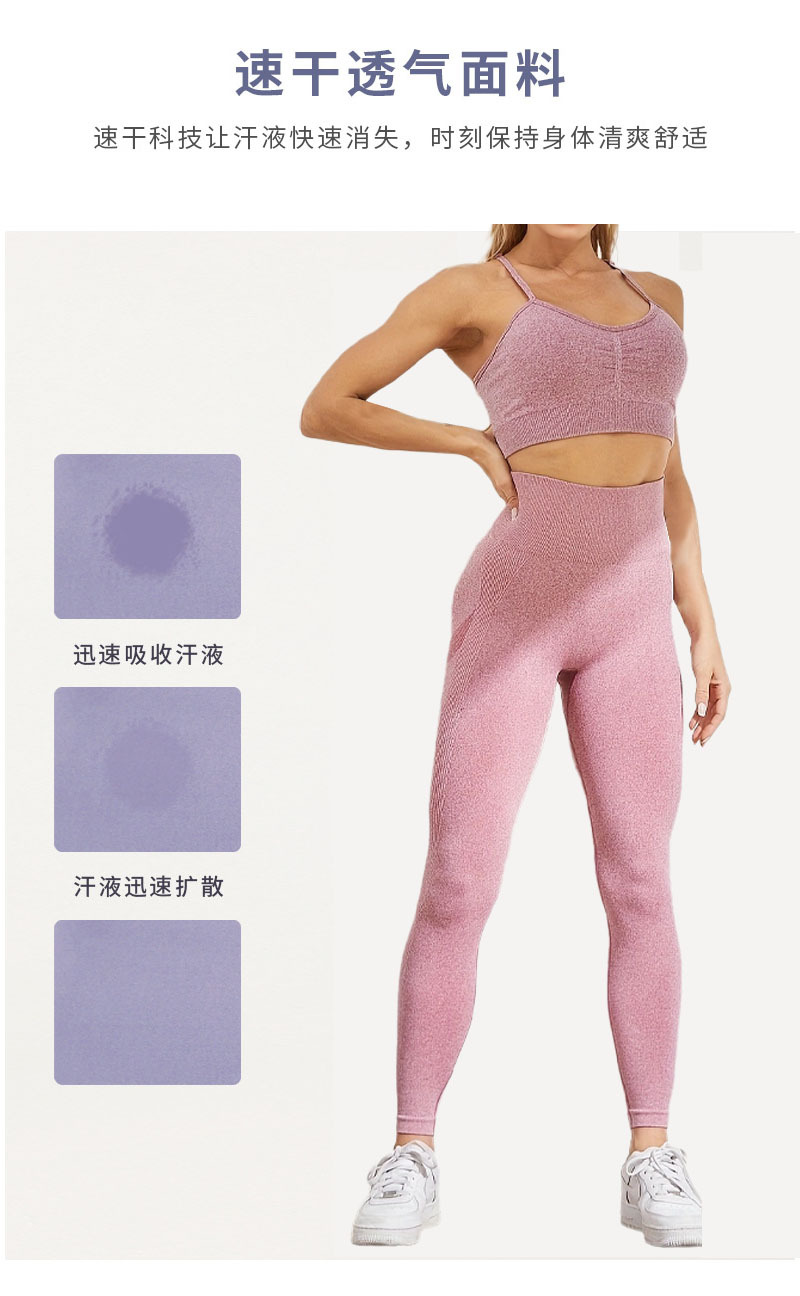 爆款夏季度无缝弹力紧身健身锦纶高弹健身裤运动跑步瑜伽裤套装