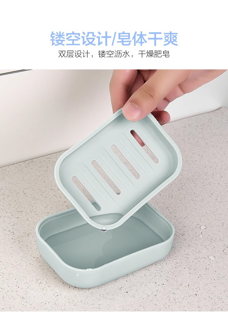 小清新素色沥水皂盒 肥皂盒带盖沥水双层皂托PP塑料香皂盒批发