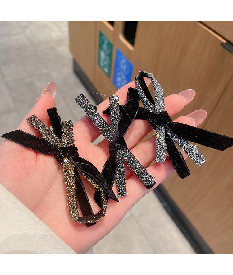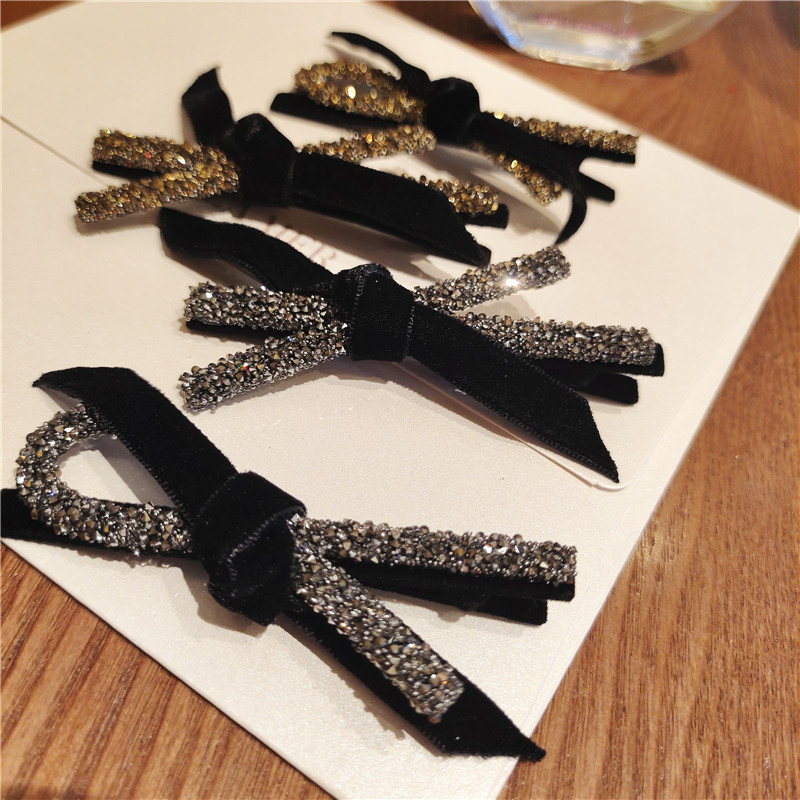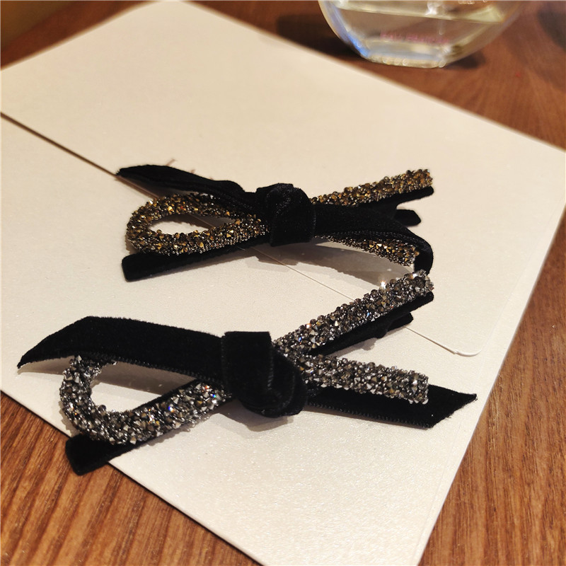 2023韩国水钻丝绒精致蝴蝶结两边刘海发夹子网红2022新款边夹头饰