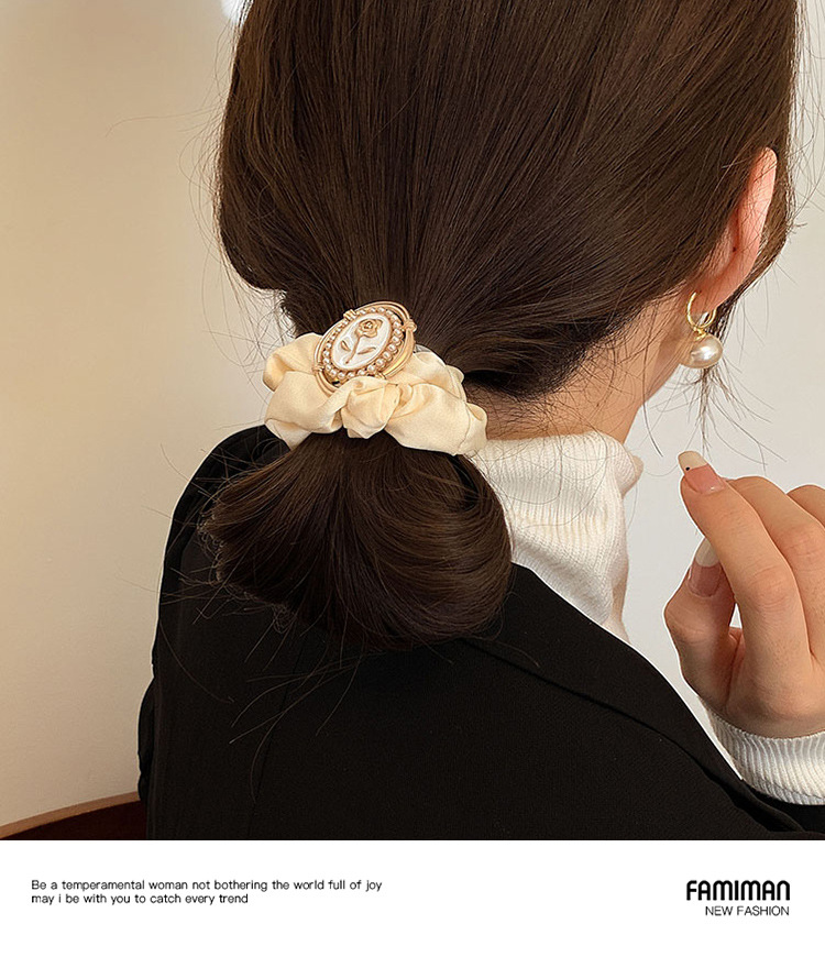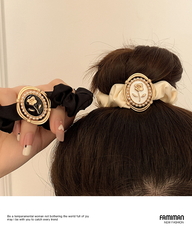法式玫瑰花小肠发圈高弹力绑头发扎丸子头绳橡皮筋女扎头发绳头饰