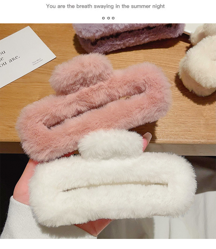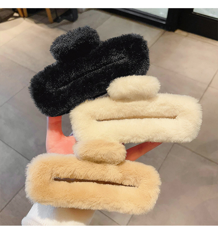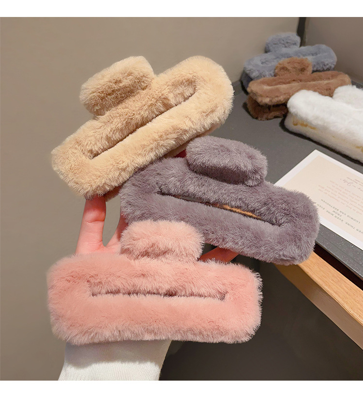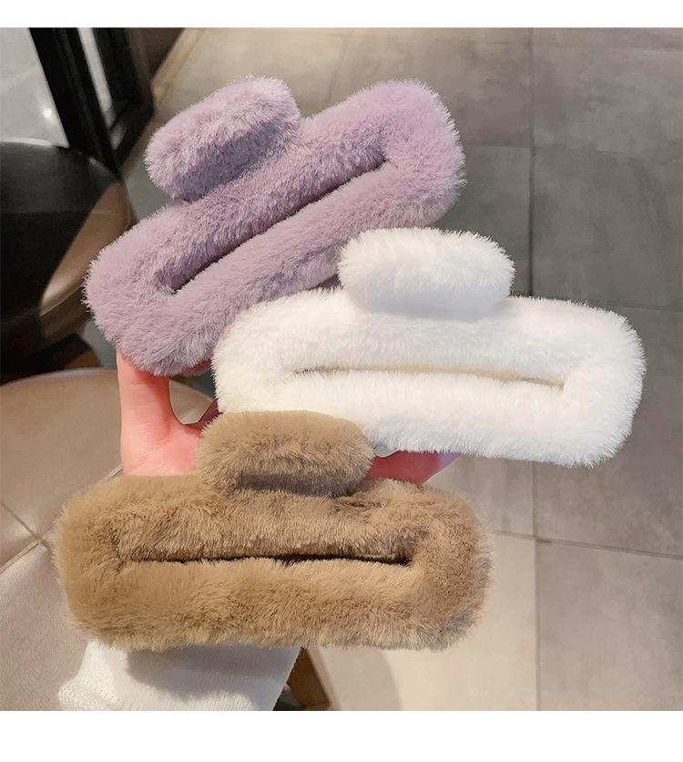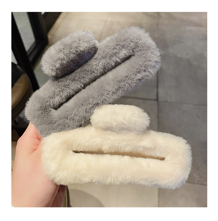 方形毛绒发抓夹女高级感夹子头饰发夹女2023新款后脑勺鲨鱼夹大号