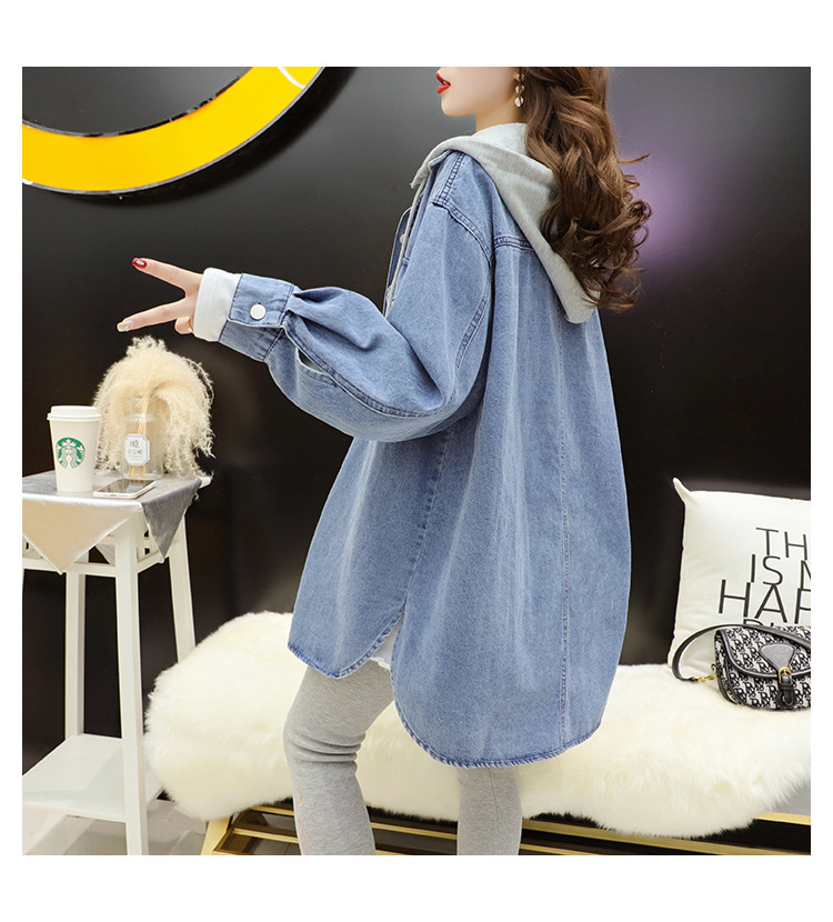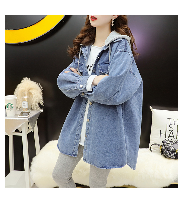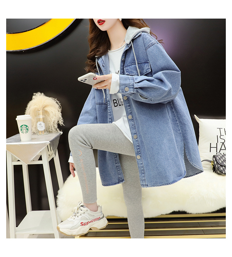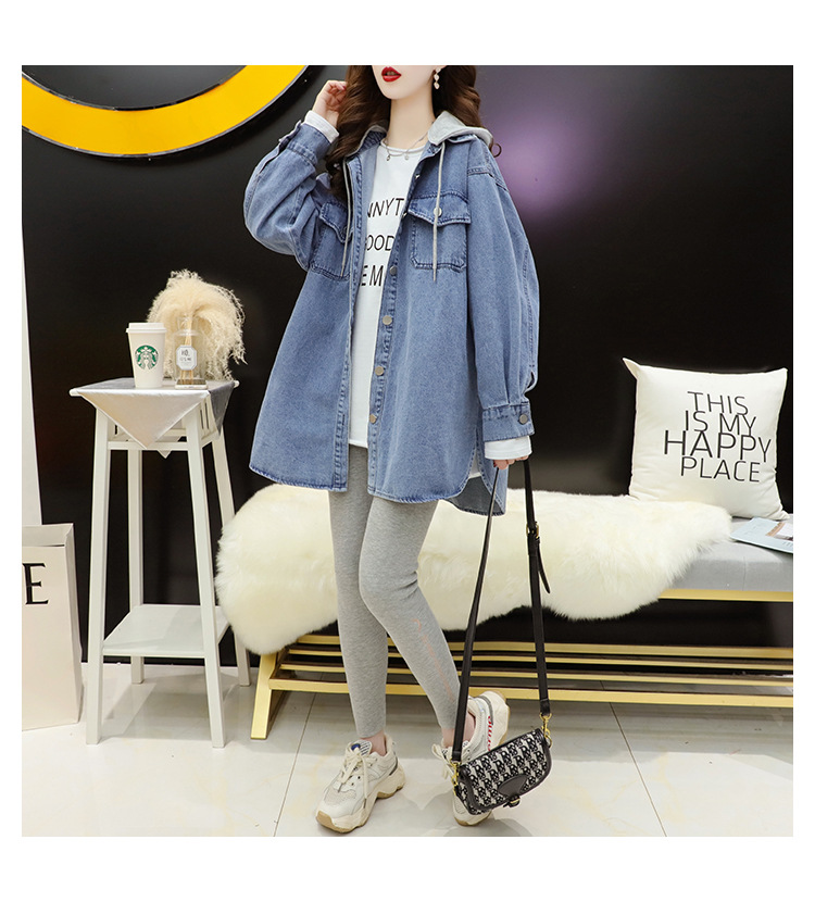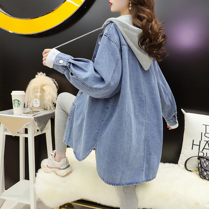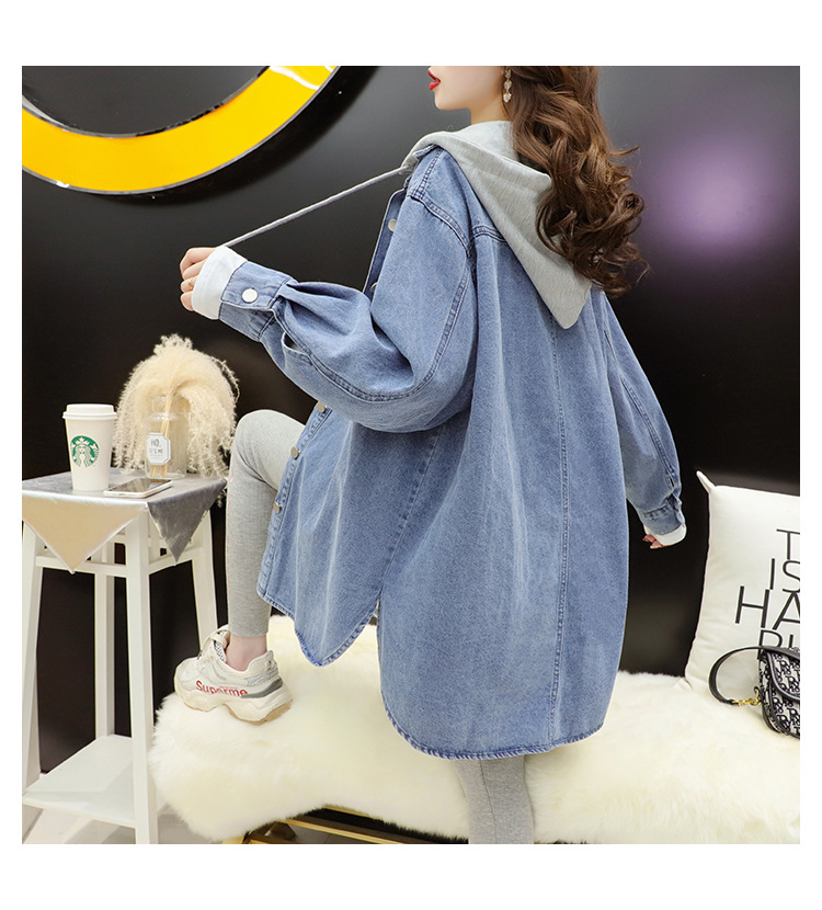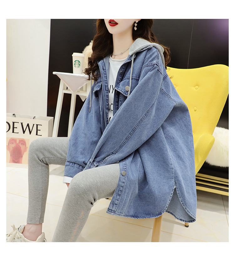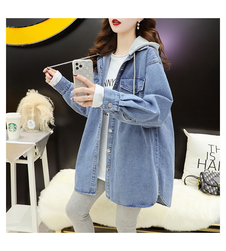 连帽中长款牛仔外套女春秋季2023新款韩版宽松慵懒风洋气百搭外套