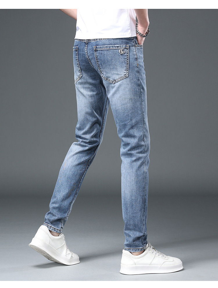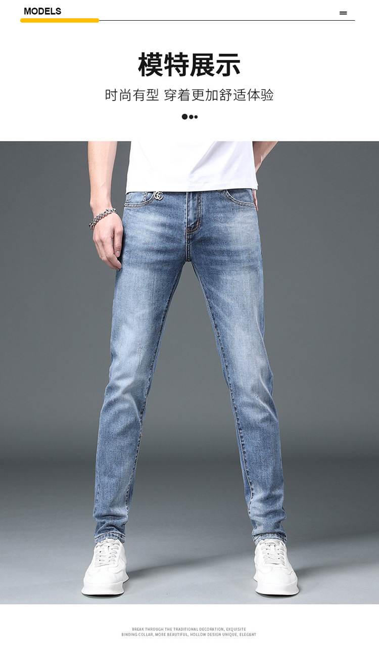 香港高端浅色牛仔裤男秋季新款男士潮流百搭弹力修身小脚裤子代发