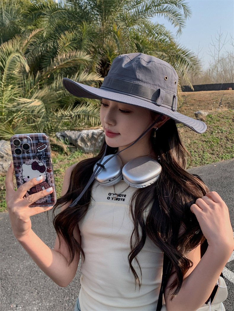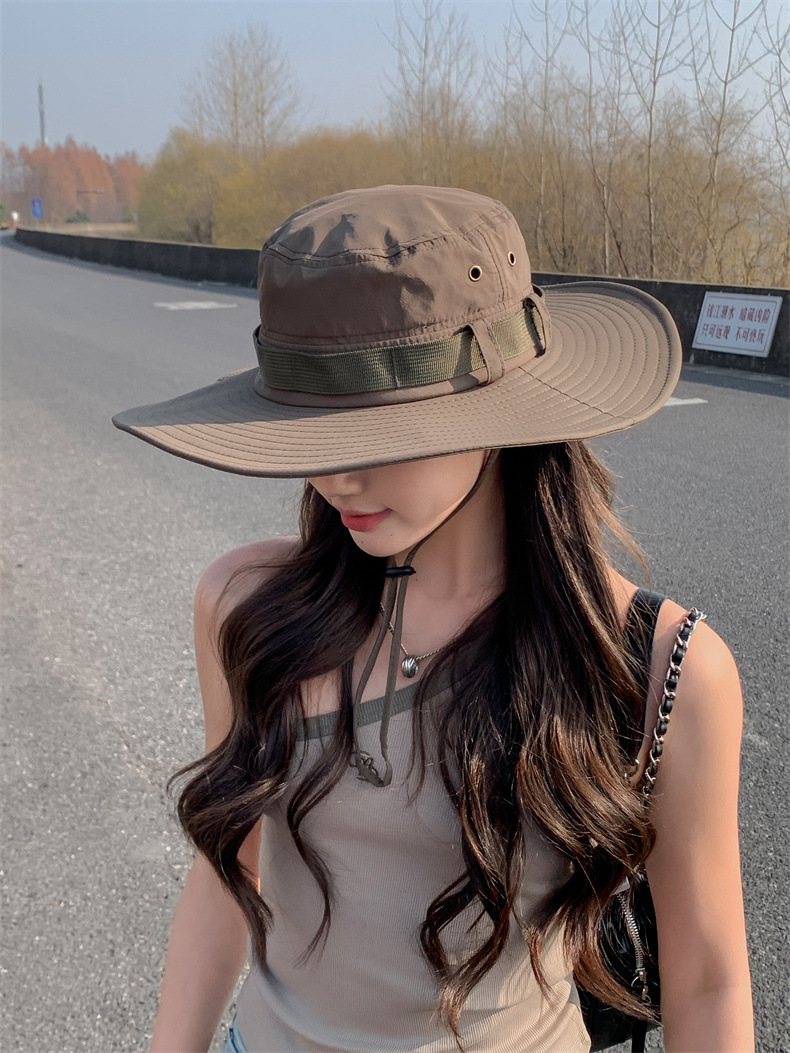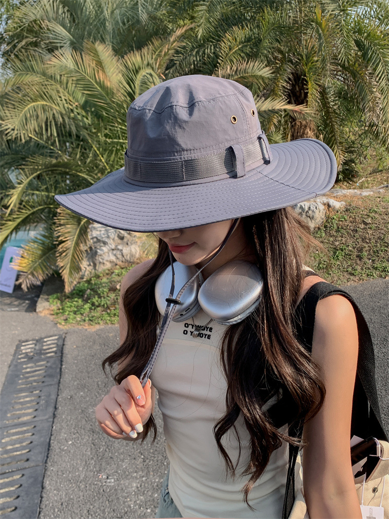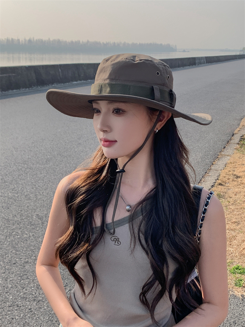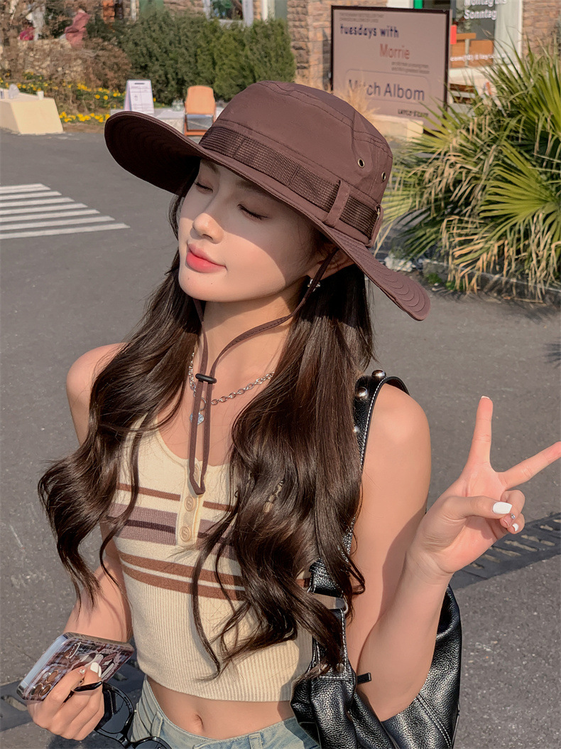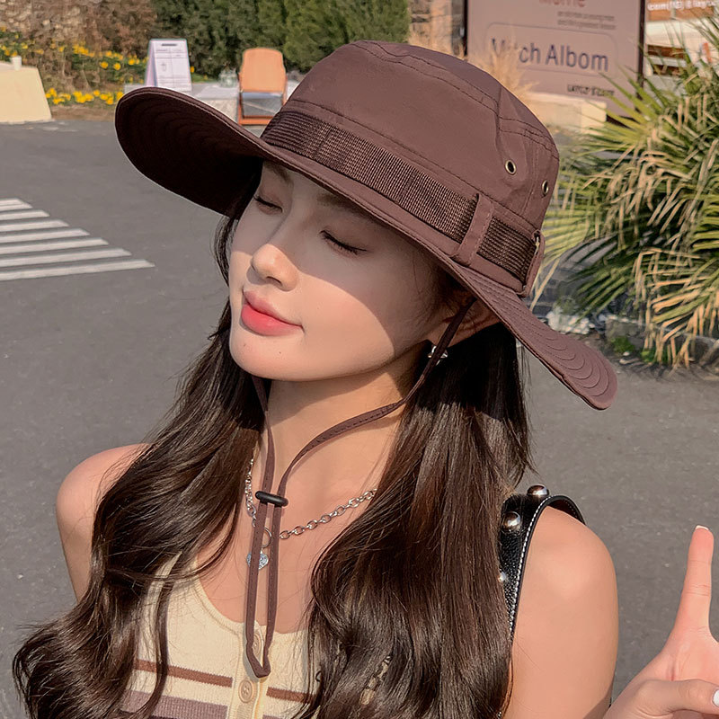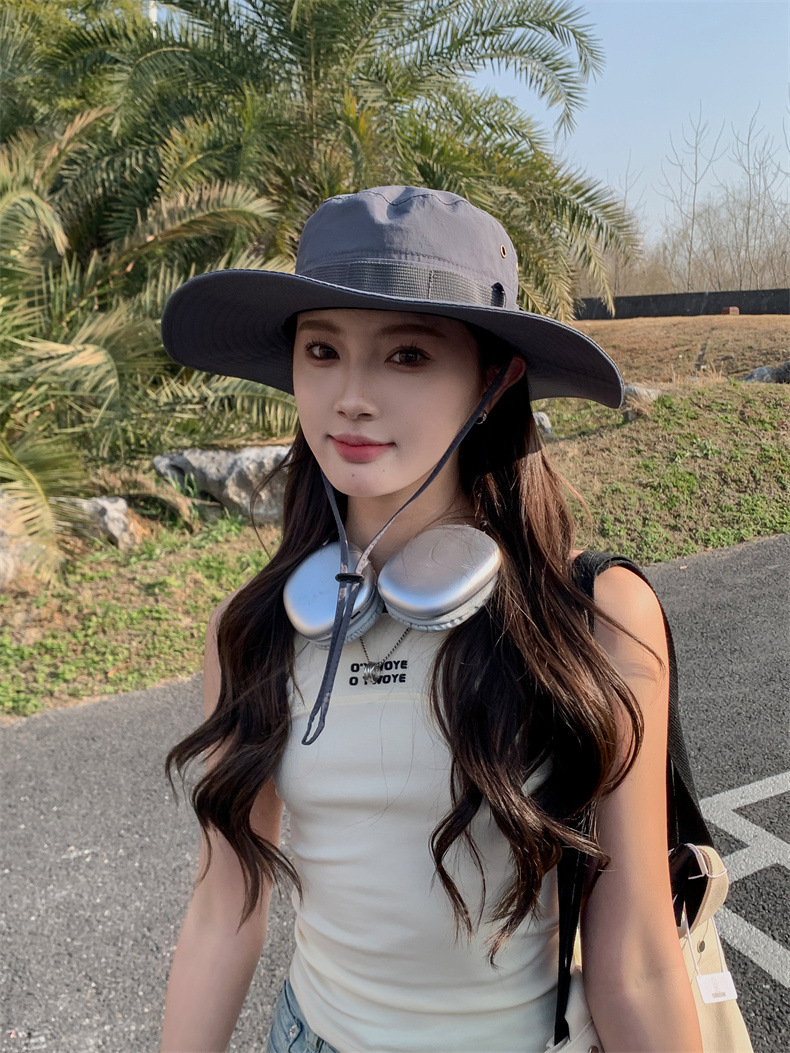 新款防晒帽子夏季女士大沿防紫外线渔夫帽户外男士钓鱼遮阳护颈帽