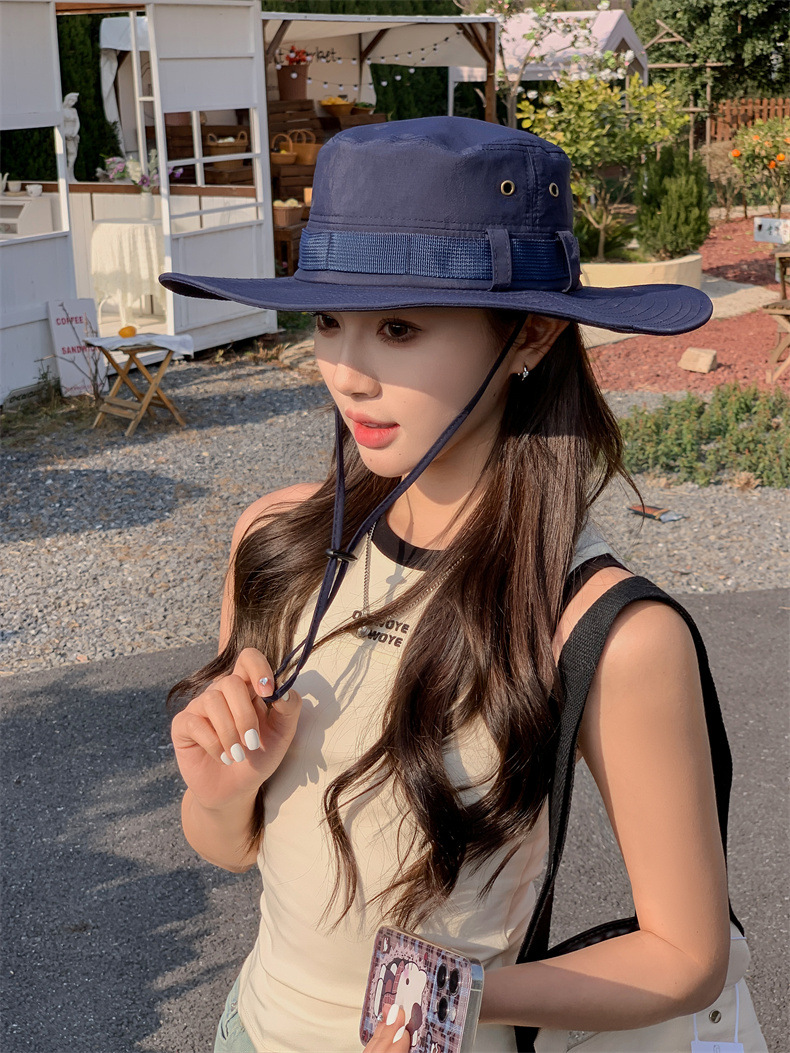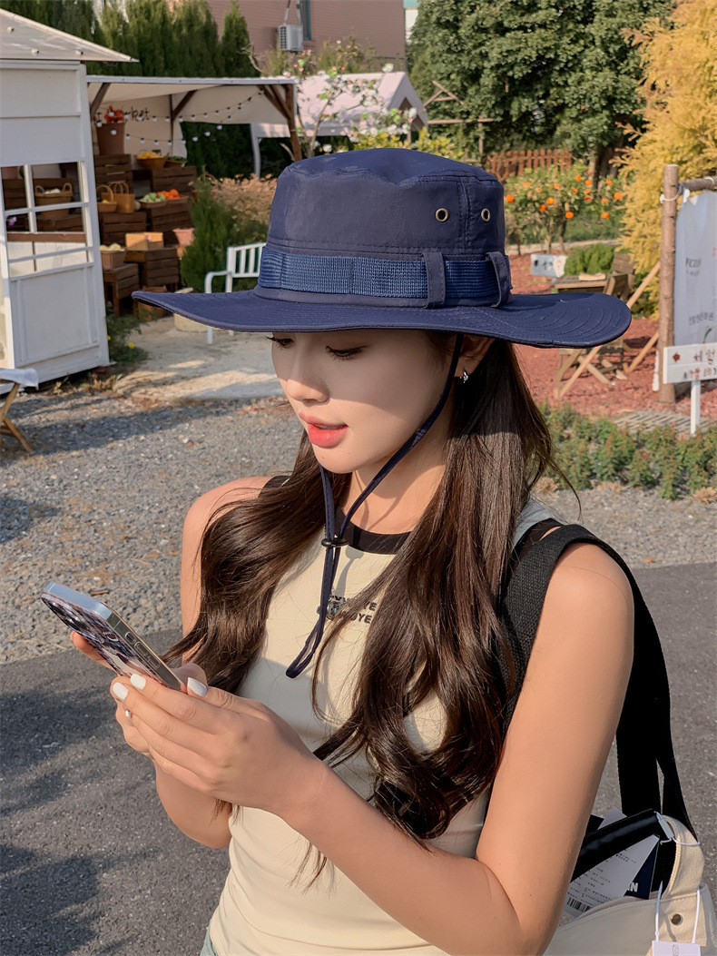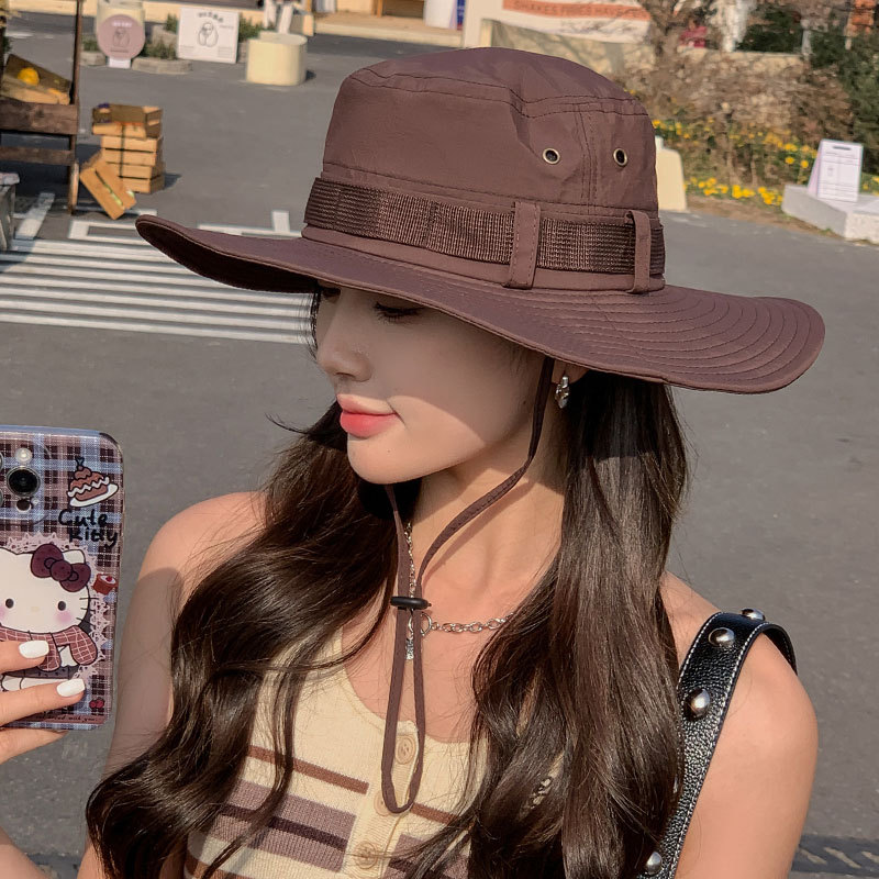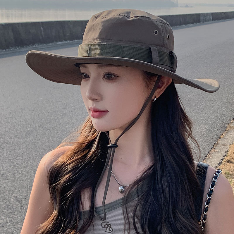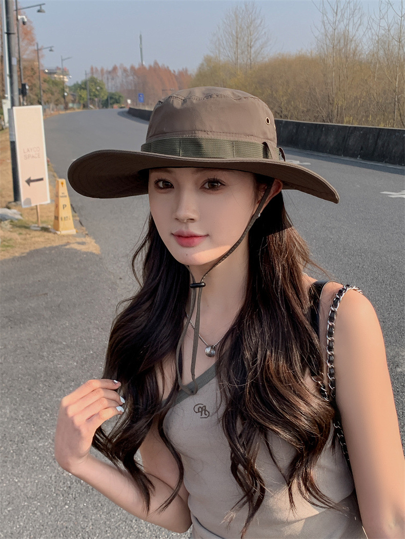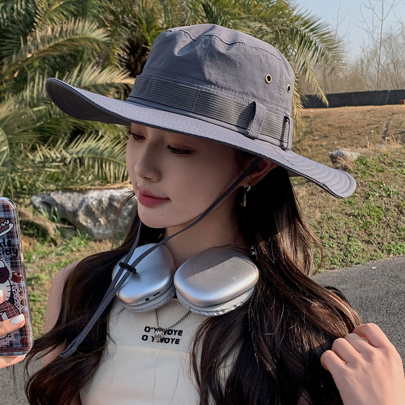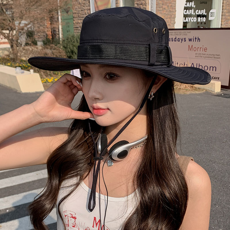 新款防晒帽子夏季女士大沿防紫外线渔夫帽户外男士钓鱼遮阳护颈帽