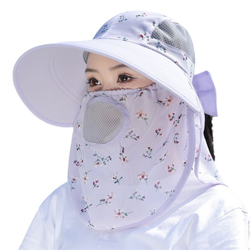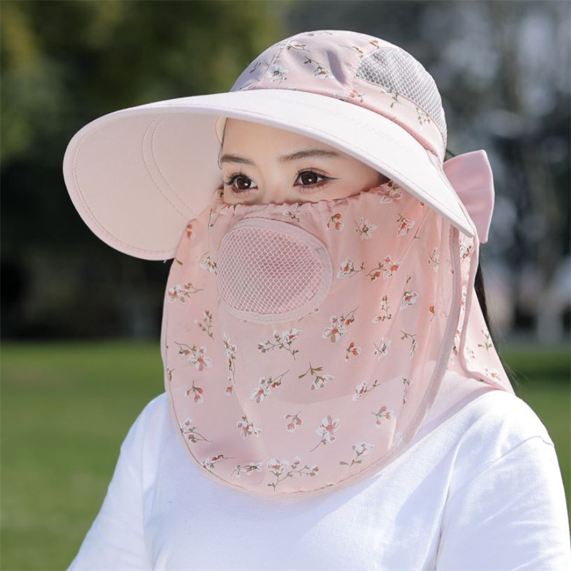 遮阳帽女士面罩全脸夏天护颈防紫外线遮脸骑车采茶凉帽大沿太阳帽