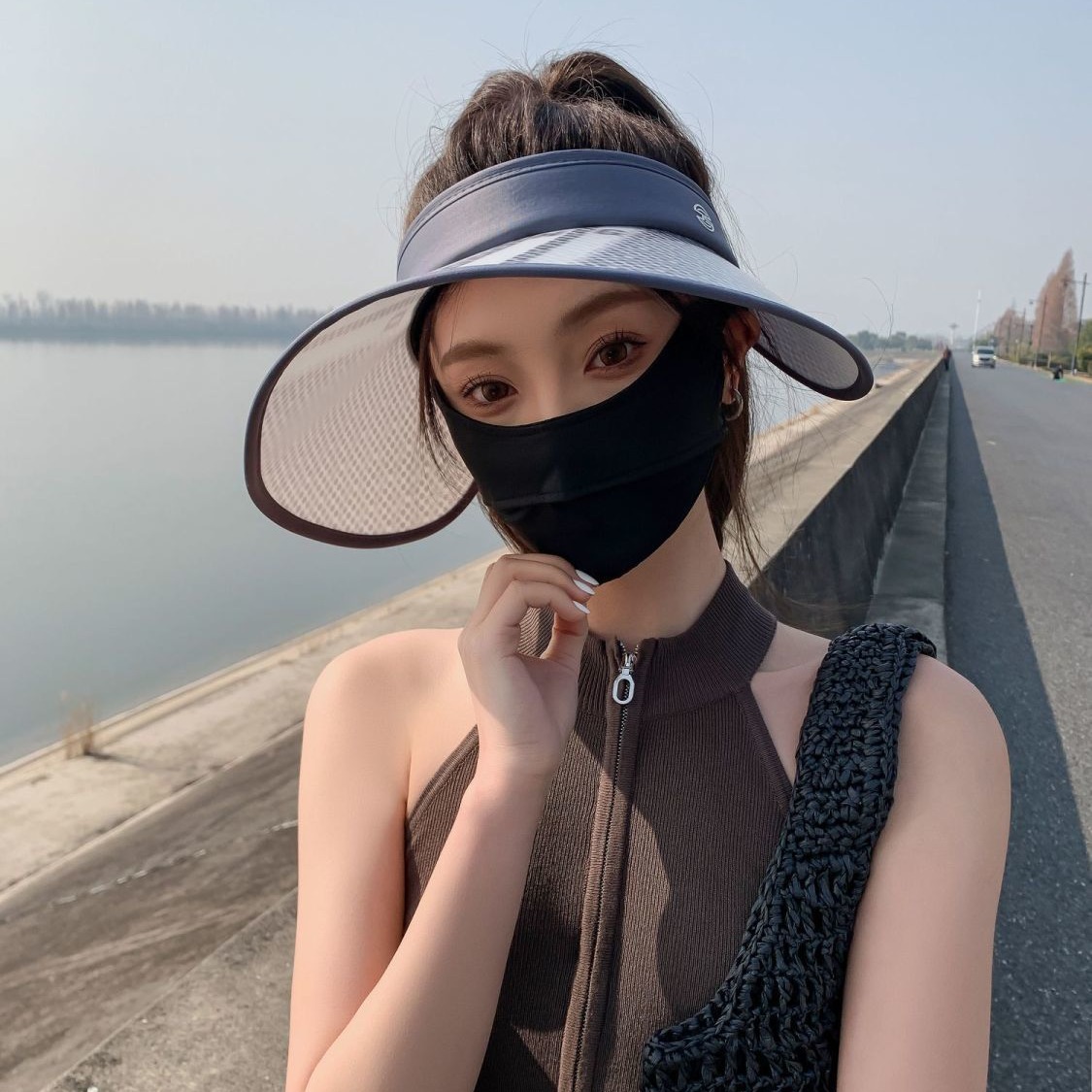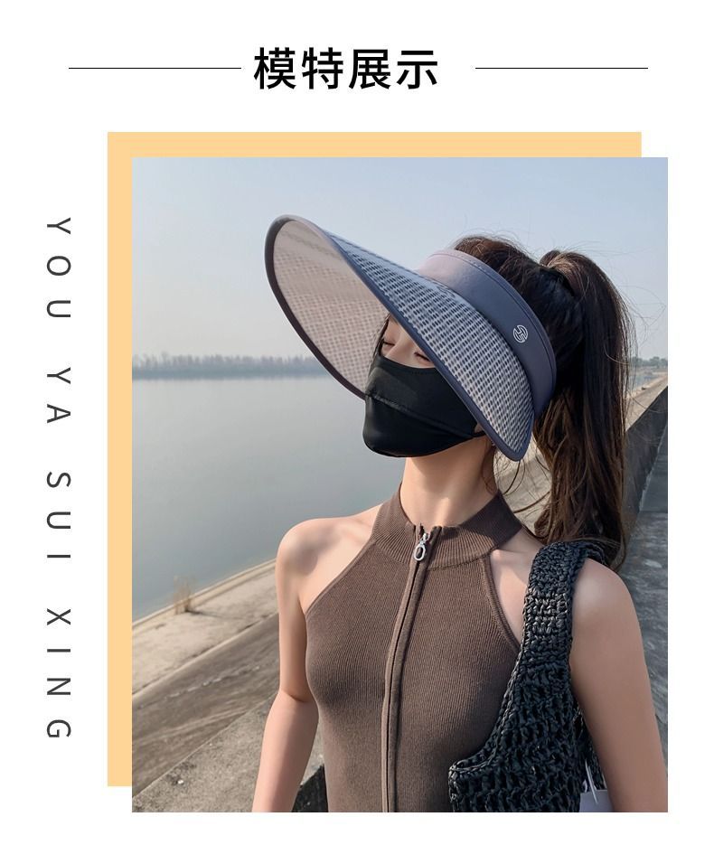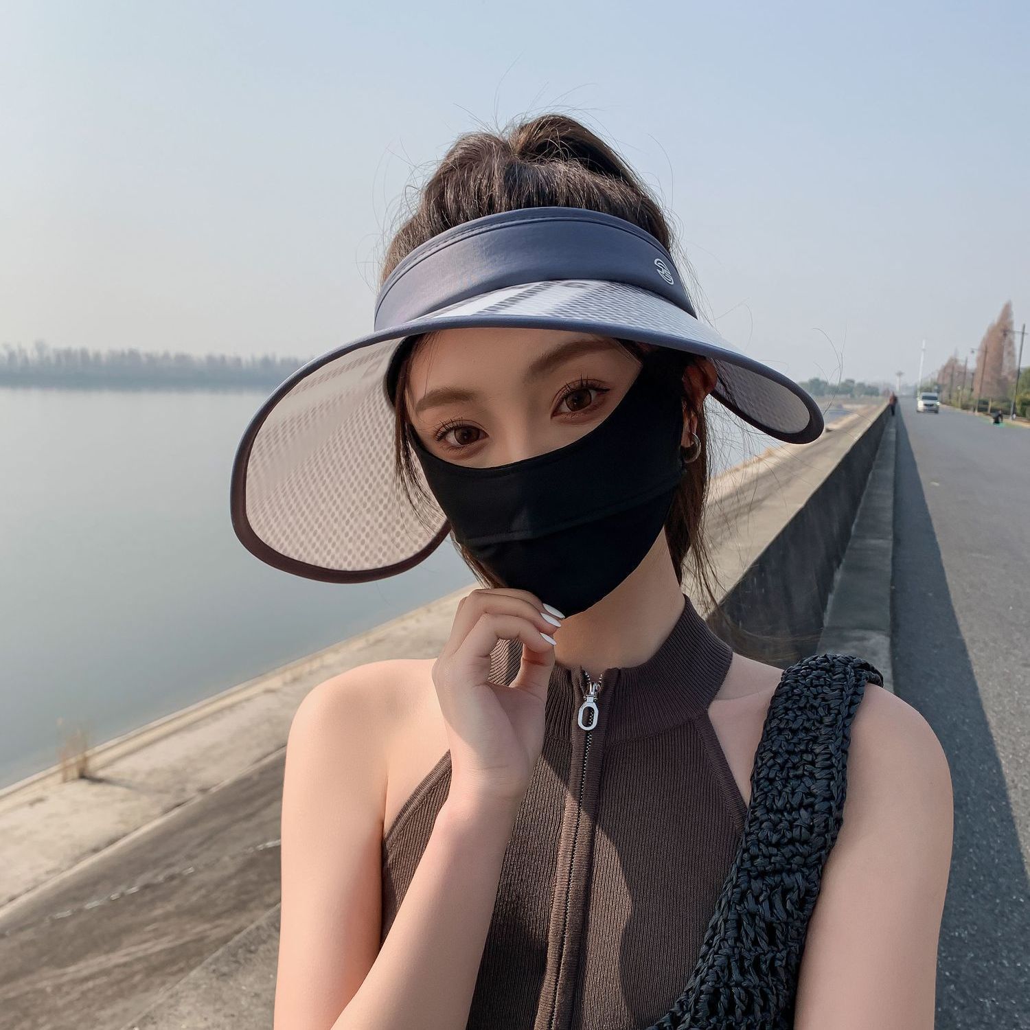 夏季大帽檐骑车防紫外线空顶防晒帽女uv太阳帽子遮阳帽UPF50+遮脸