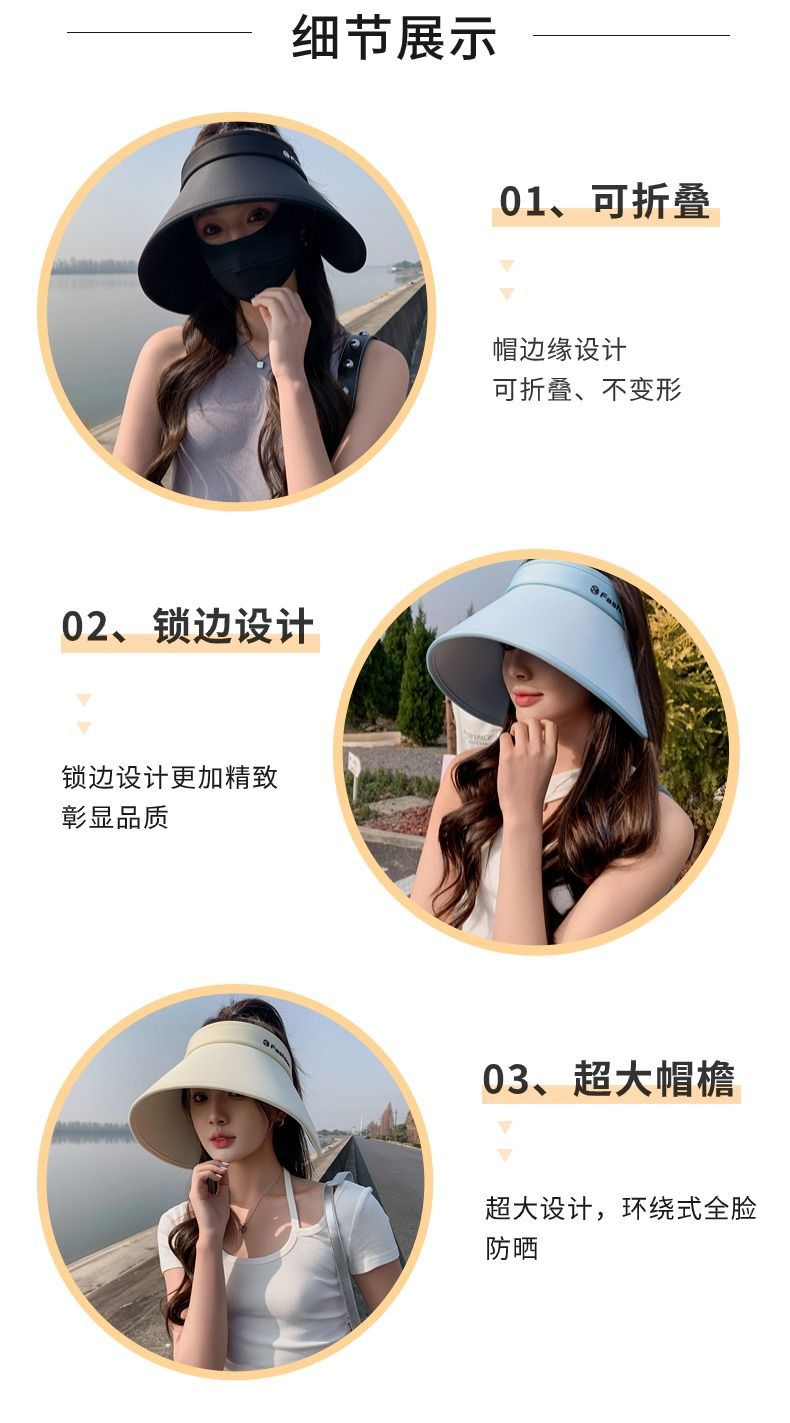 帽子女夏季防紫外线遮阳帽大檐空顶防晒帽网红显脸小太阳帽UPF50+