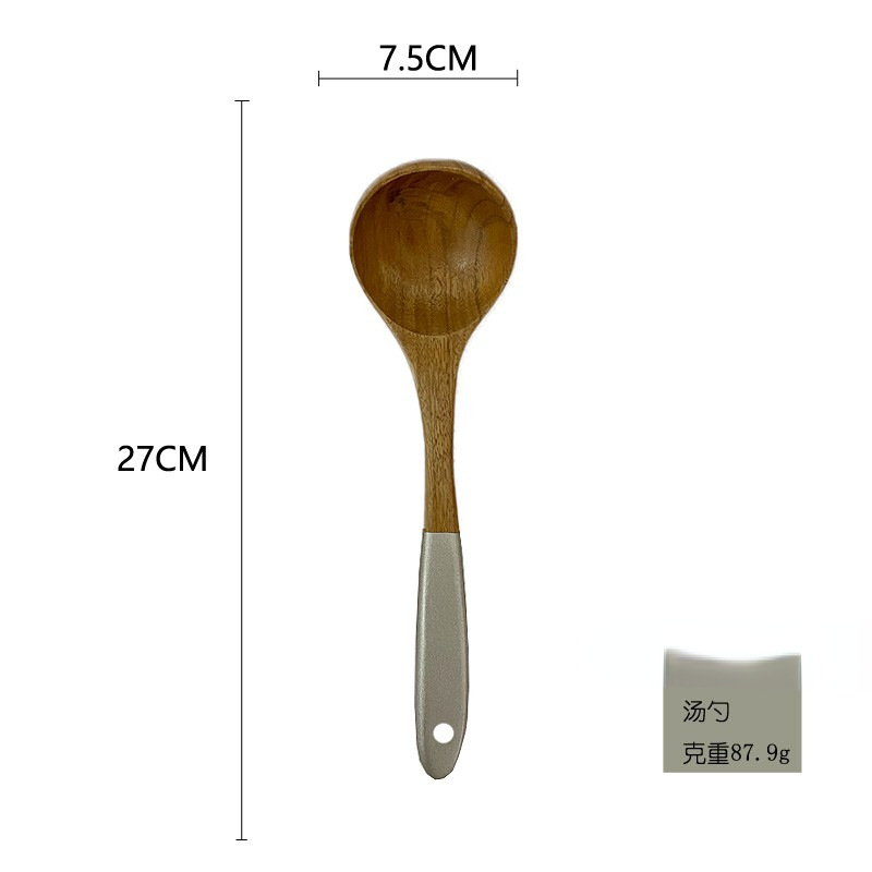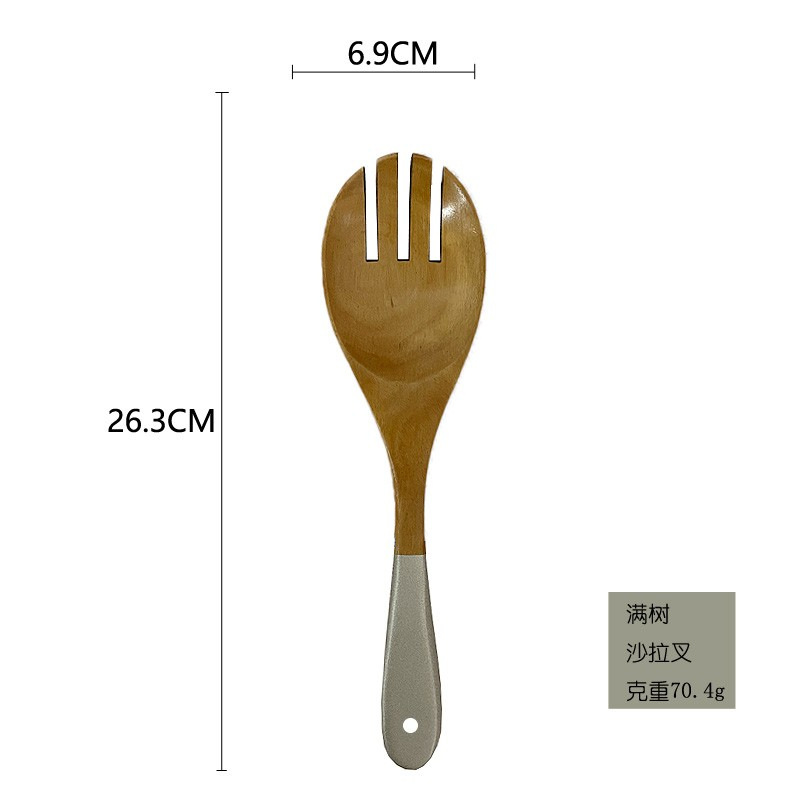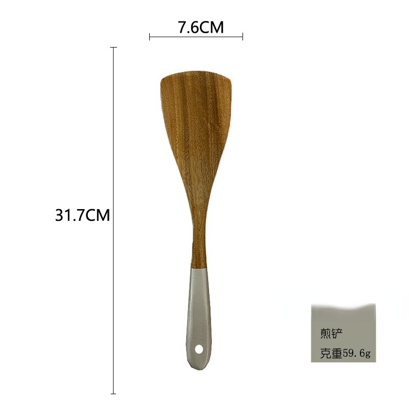 相思木烹饪铲勺8件套装沙拉勺叉搅拌勺银色手柄锅铲牛排煎铲木铲