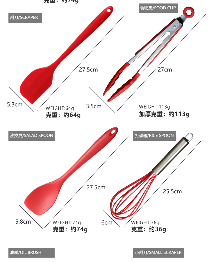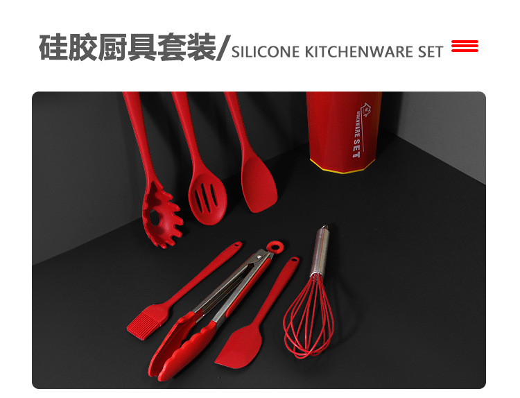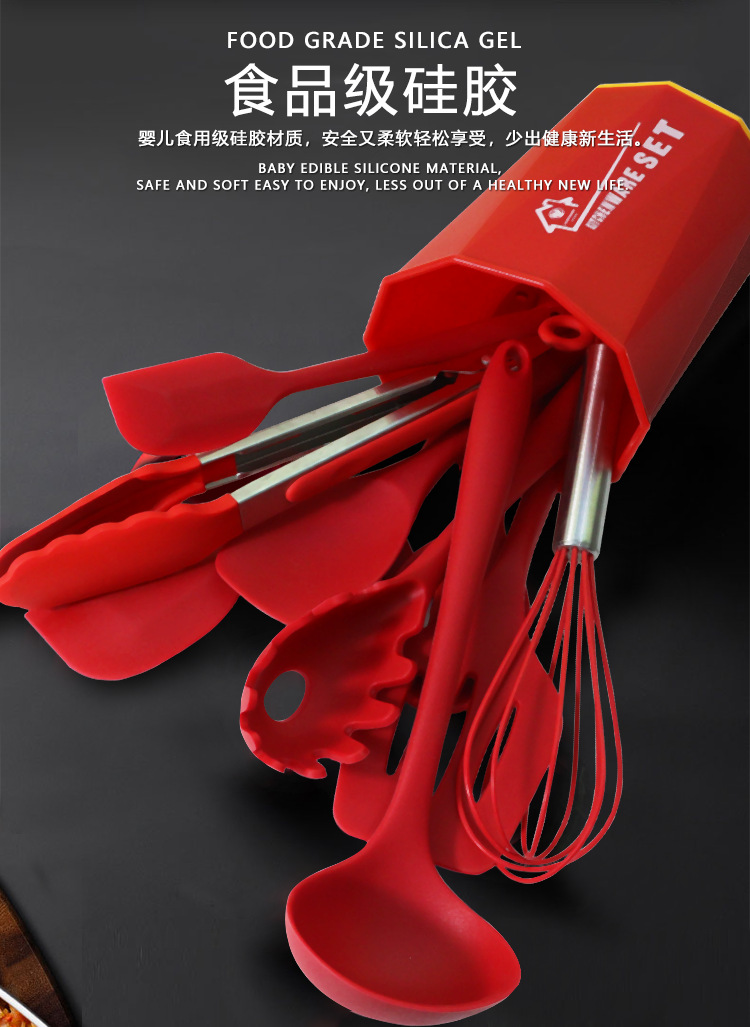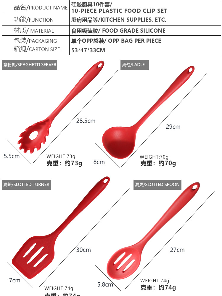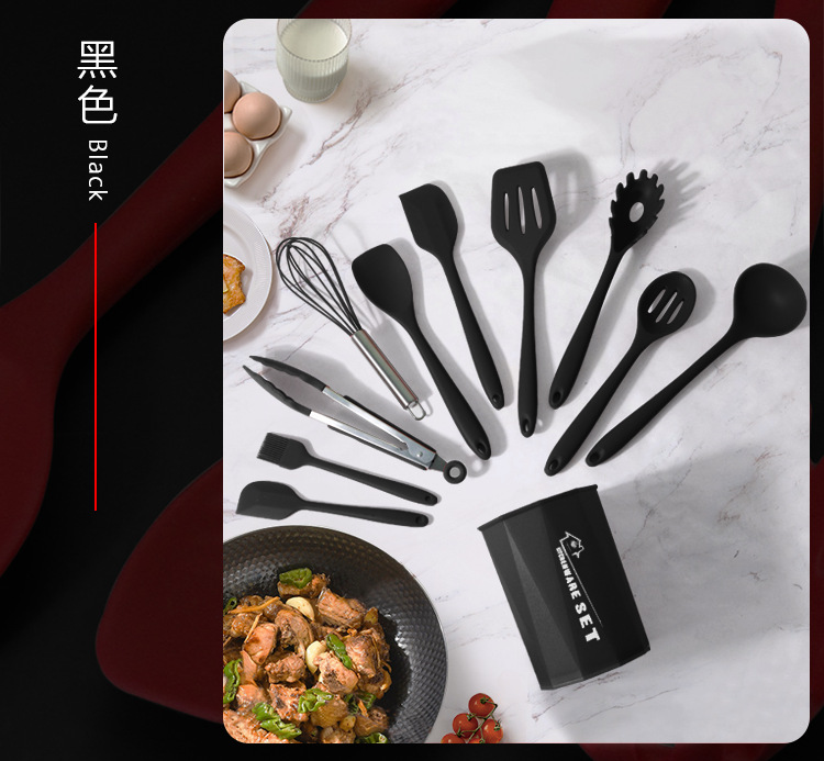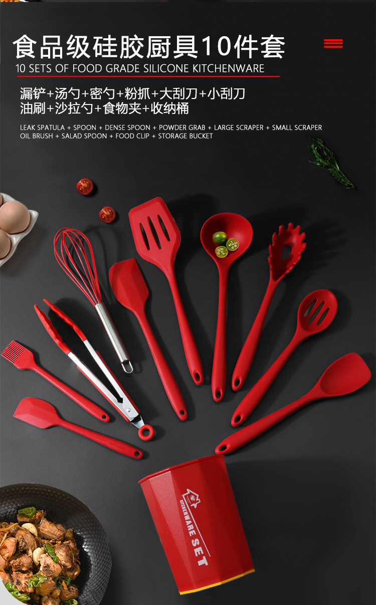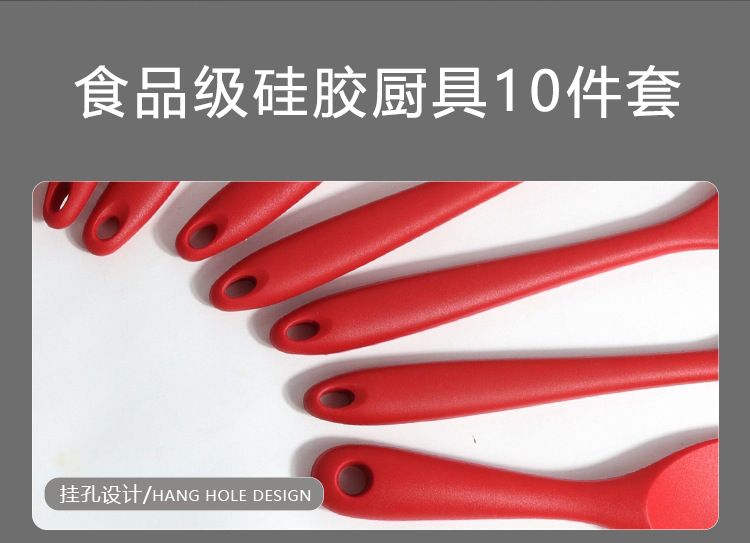 硅胶锅铲汤勺10件套不粘锅食品级硅胶铲耐高温硅胶厨具套装批发