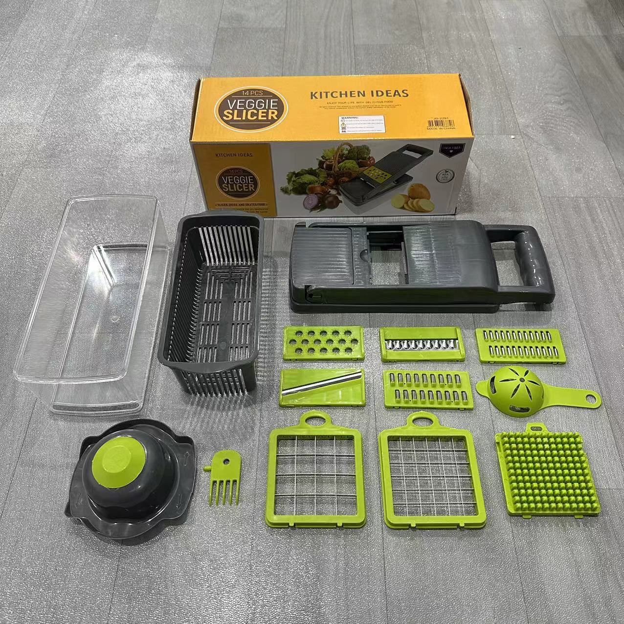 跨境多功能切菜器14合1厨房土豆丝刨丝器切片机擦丝器切丁器套装