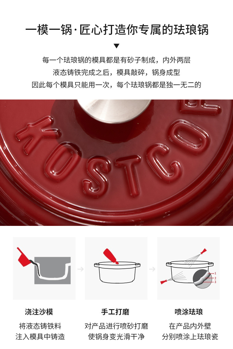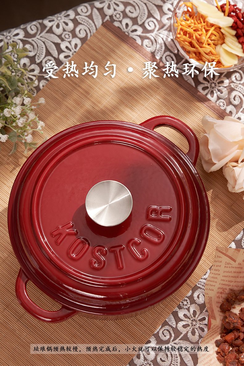 KOSTCOR珐琅锅铸铁锅Enamel Pot明火燃气灶电磁炉通用批外贸跨境