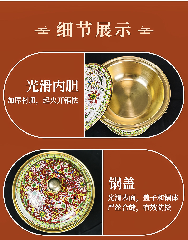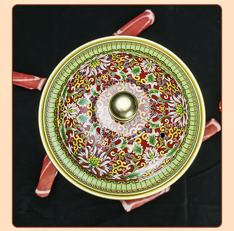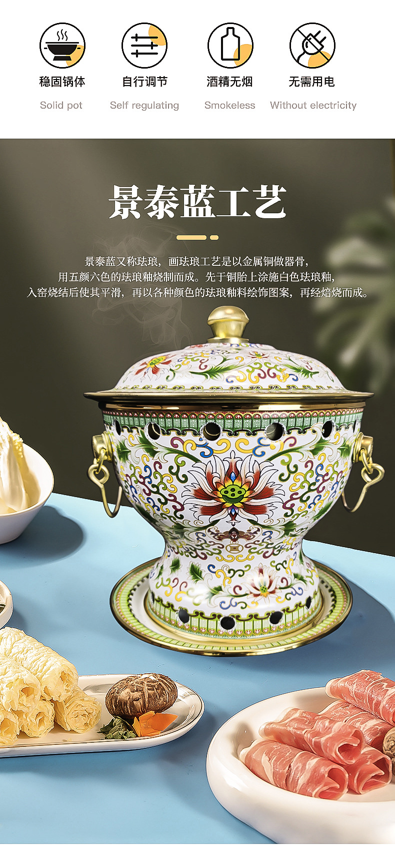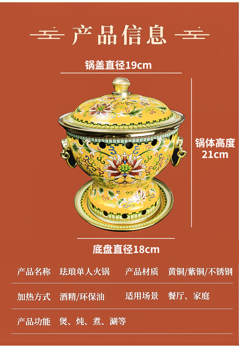 珐琅搪瓷单人小火锅自助桌面火锅酒精锅家用单人酒精锅炉纯铜锅