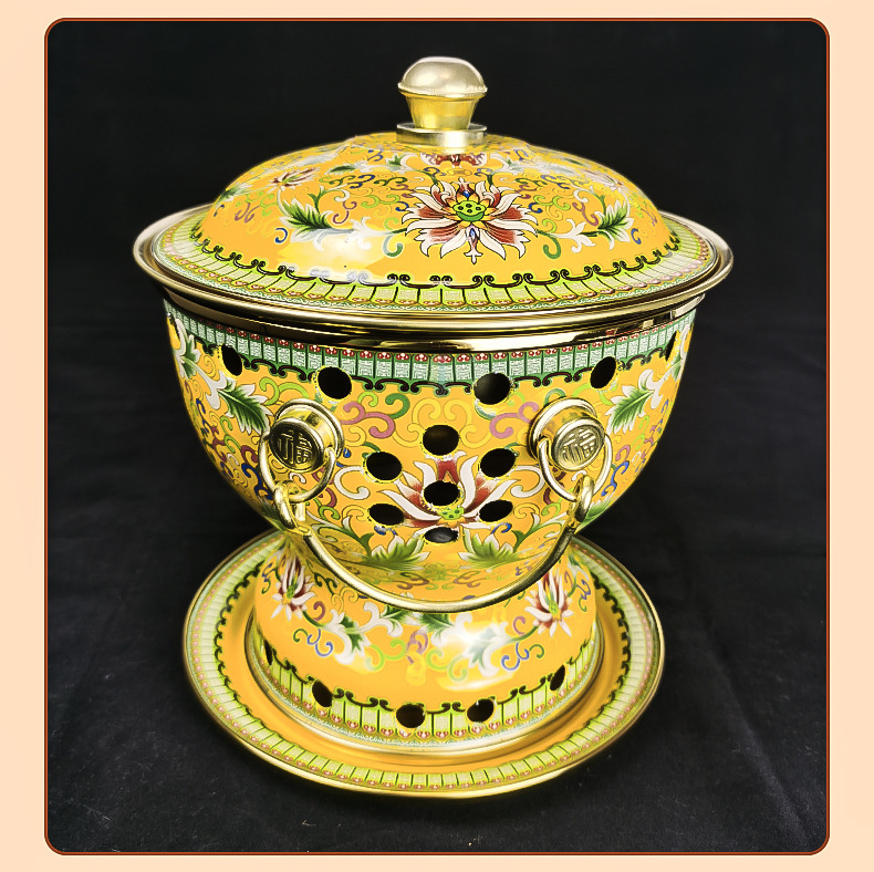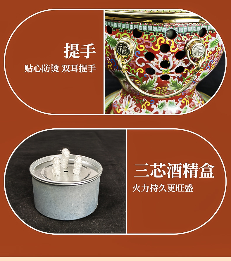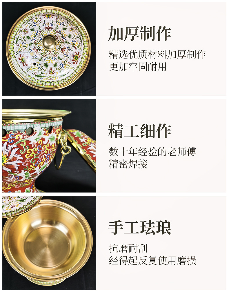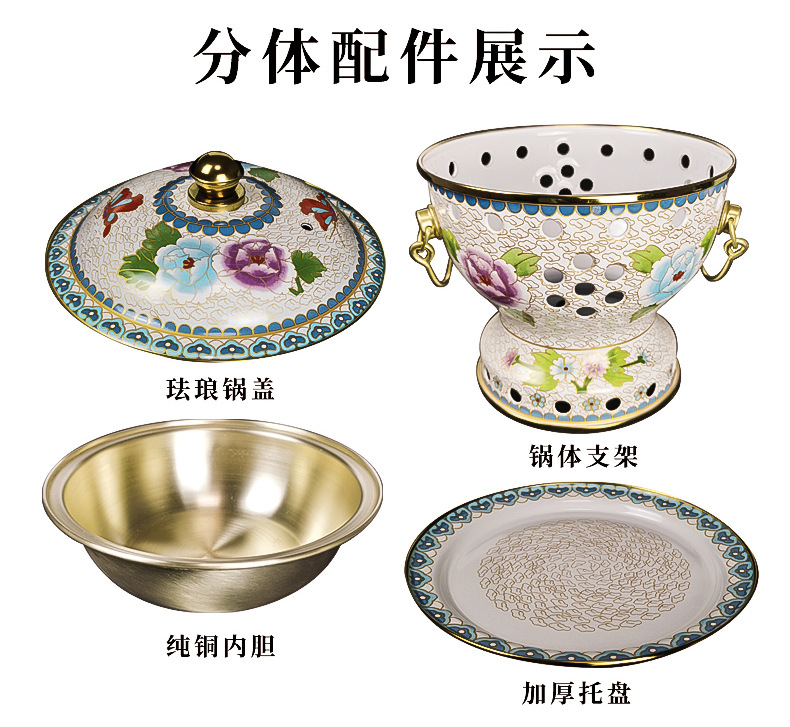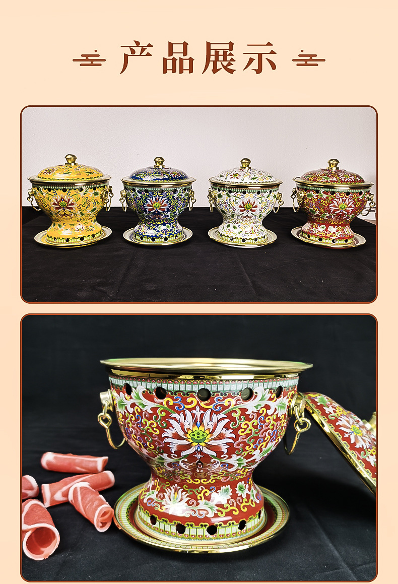 珐琅搪瓷单人小火锅自助桌面火锅酒精锅家用单人酒精锅炉纯铜锅