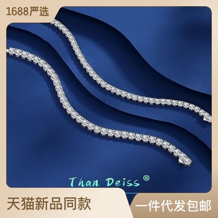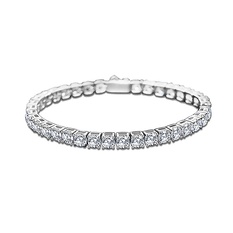 S925纯银莫桑石网球手链新款男女士锆石手链银手饰品跨境热卖现货