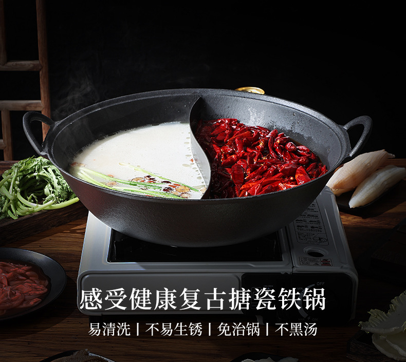 商用火锅重庆老火锅火锅店专用锅鸳鸯锅红汤锅不沾搪瓷火锅串串锅