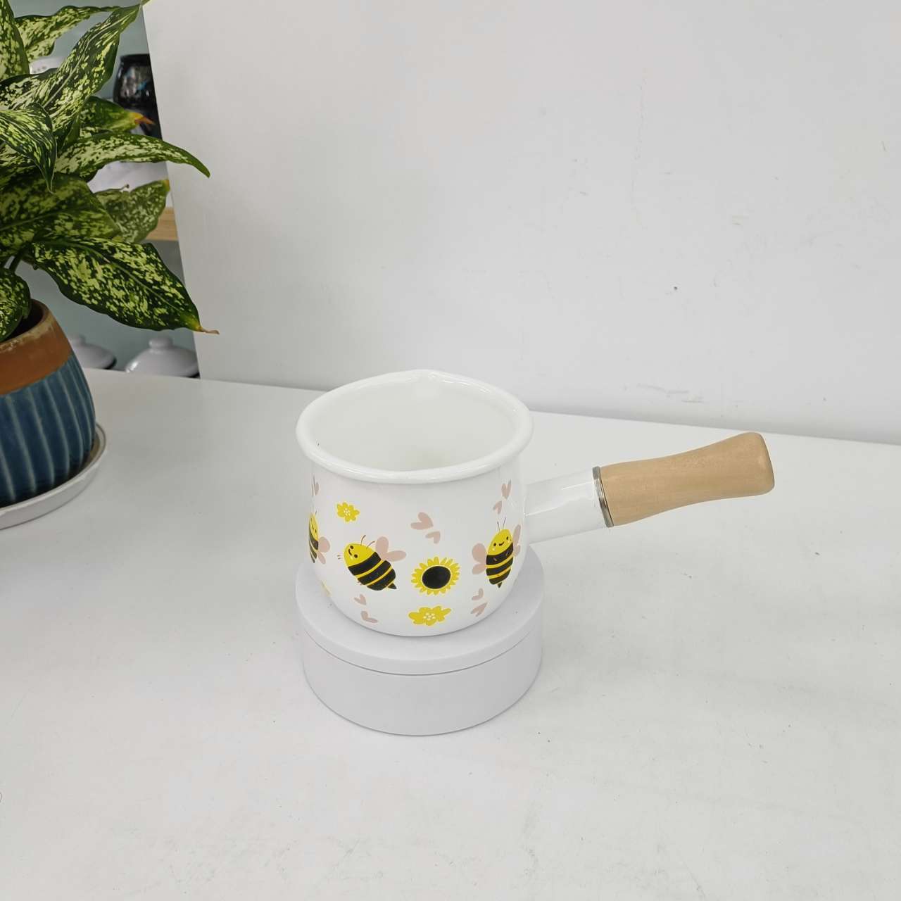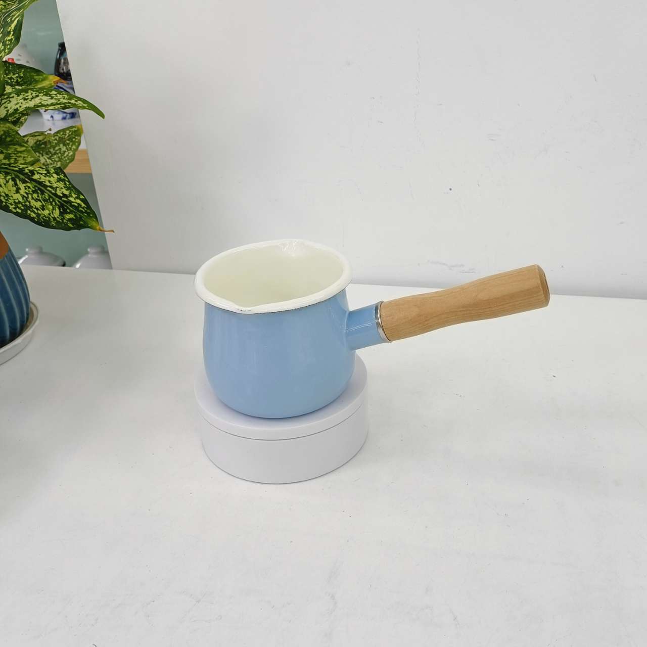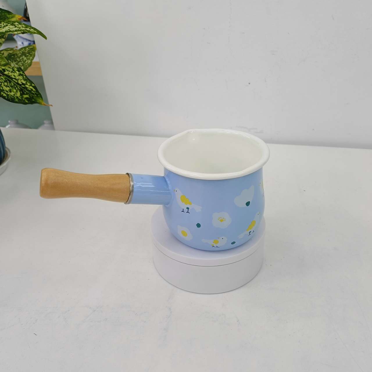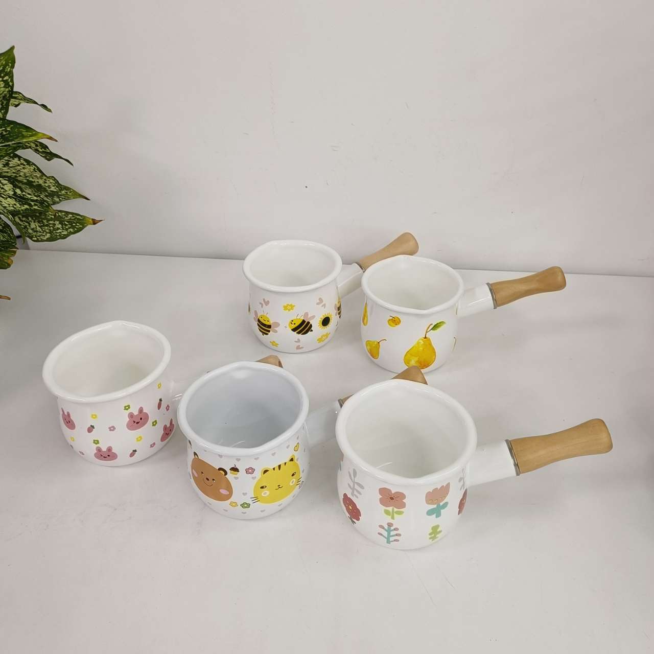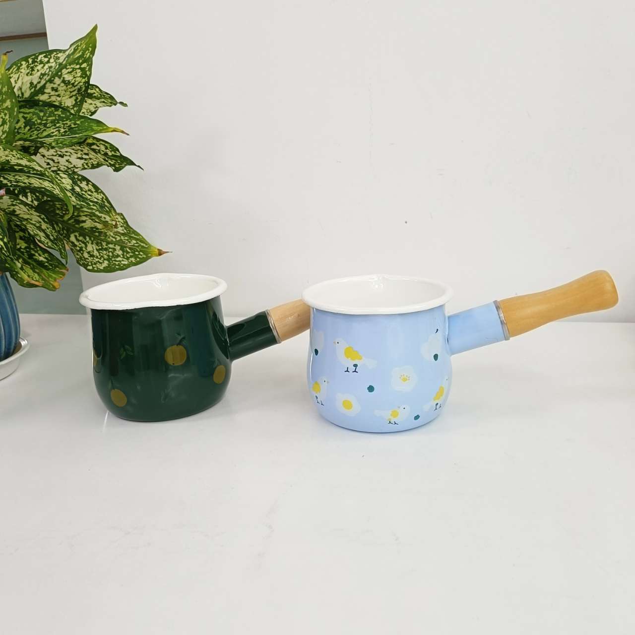 加厚搪瓷奶杯可爱INS风清新萌趣搪瓷单柄奶锅木柄日韩搪瓷厨具批