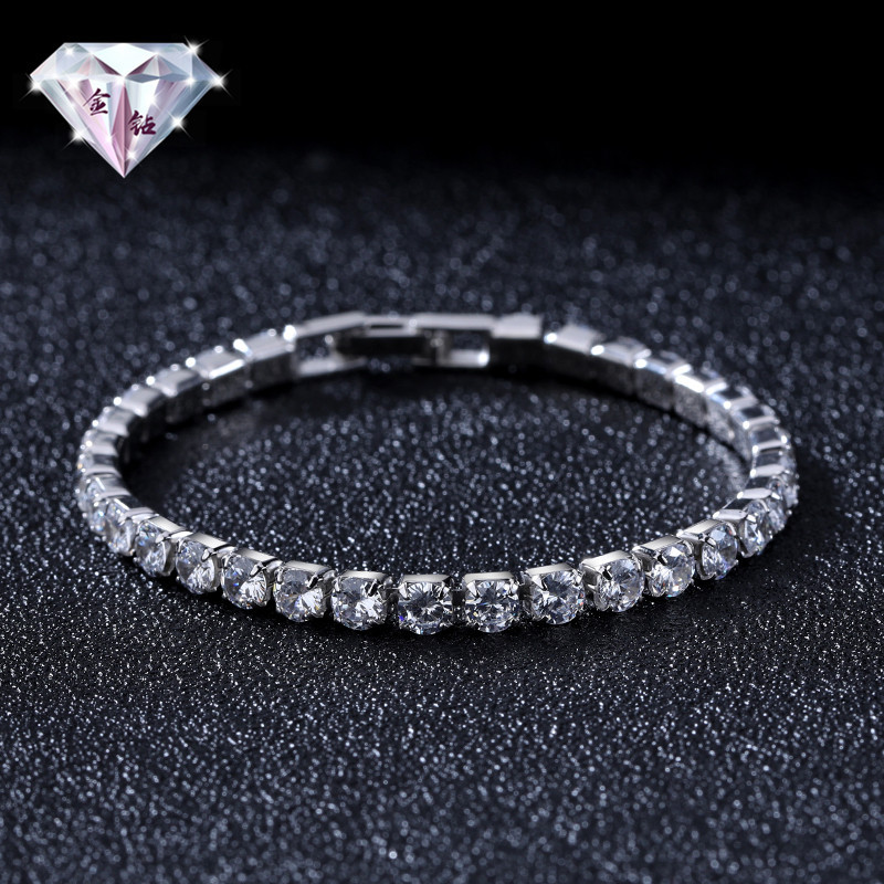 跨境电商 热销圆形4mm嘻哈手链单排满钻时尚手饰欧美厂家直销批发