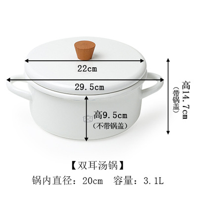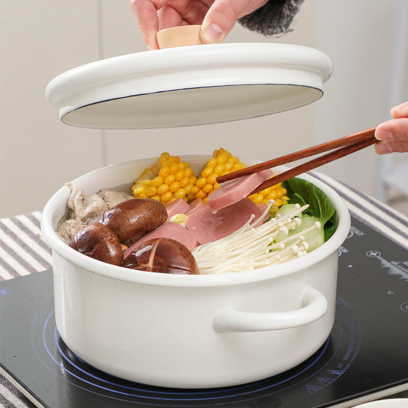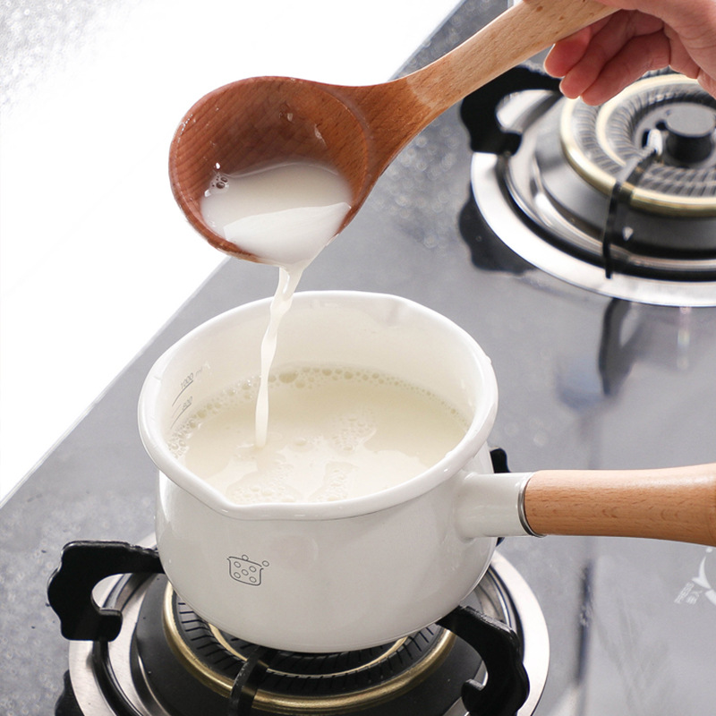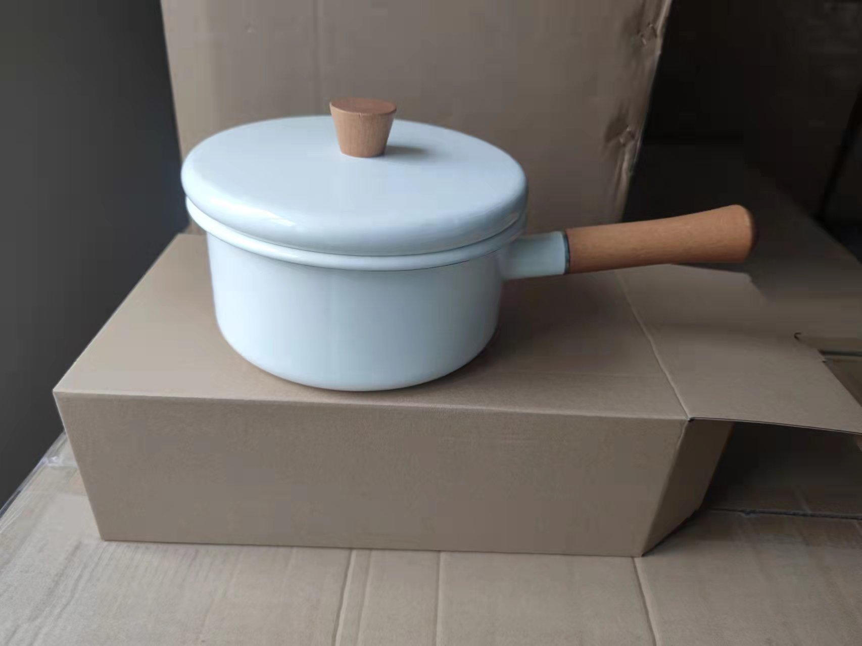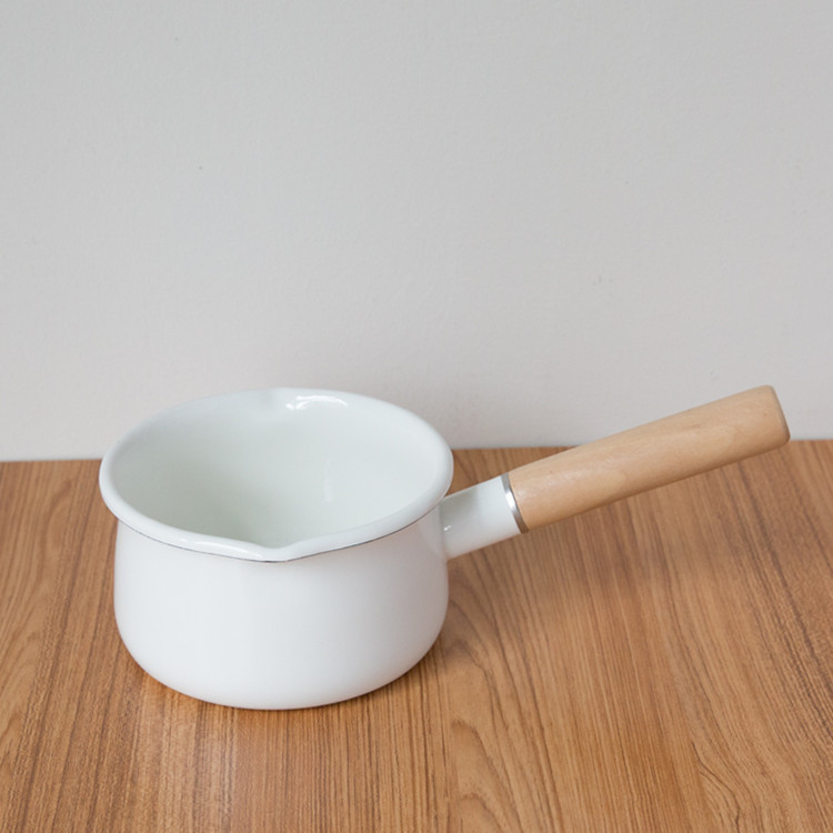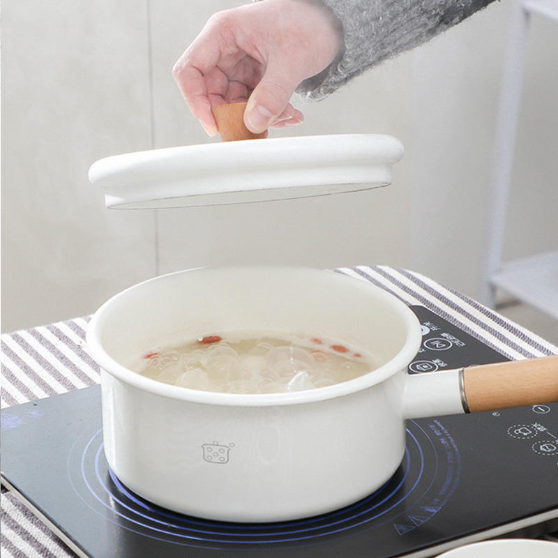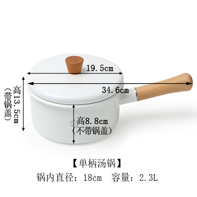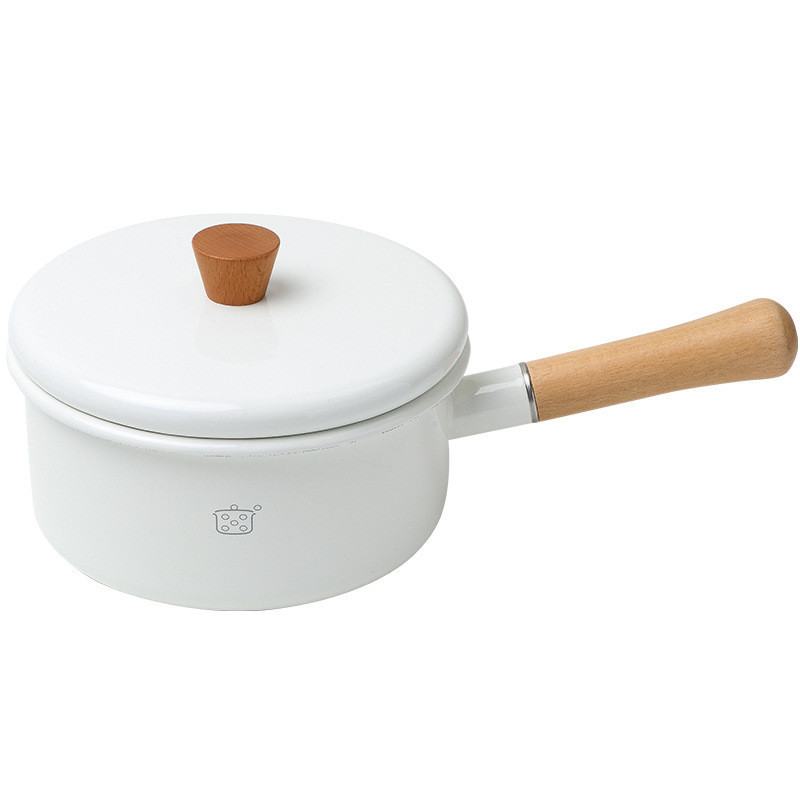 一件代发日式珐琅木柄搪瓷锅宝宝辅食奶锅汤锅带盖电磁炉明火通用