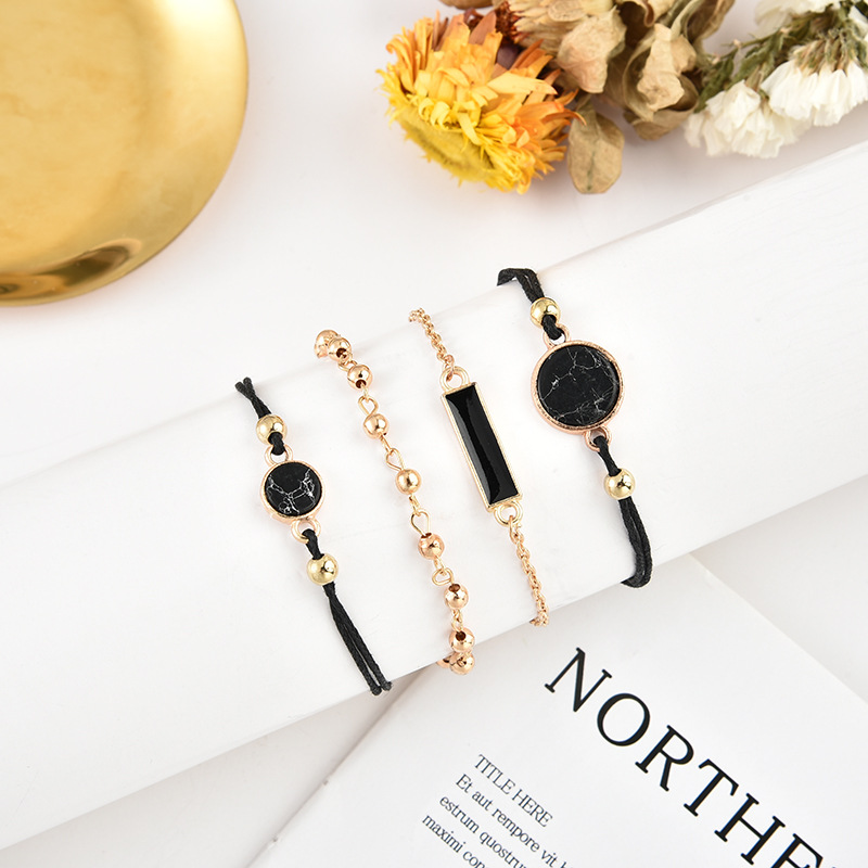 3105欧美风个性黑松石花纹手链 手工黑方块潮流气质4件套手饰工厂
