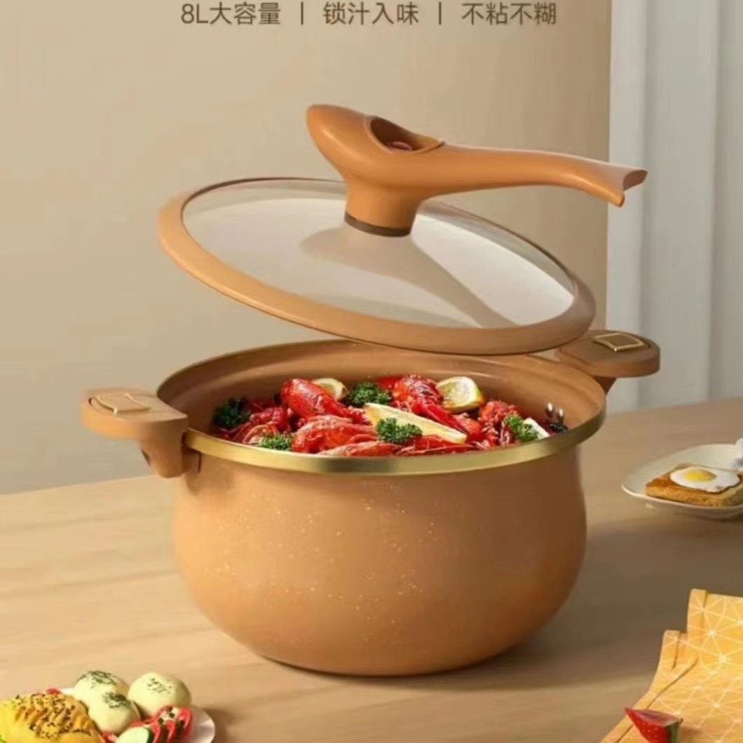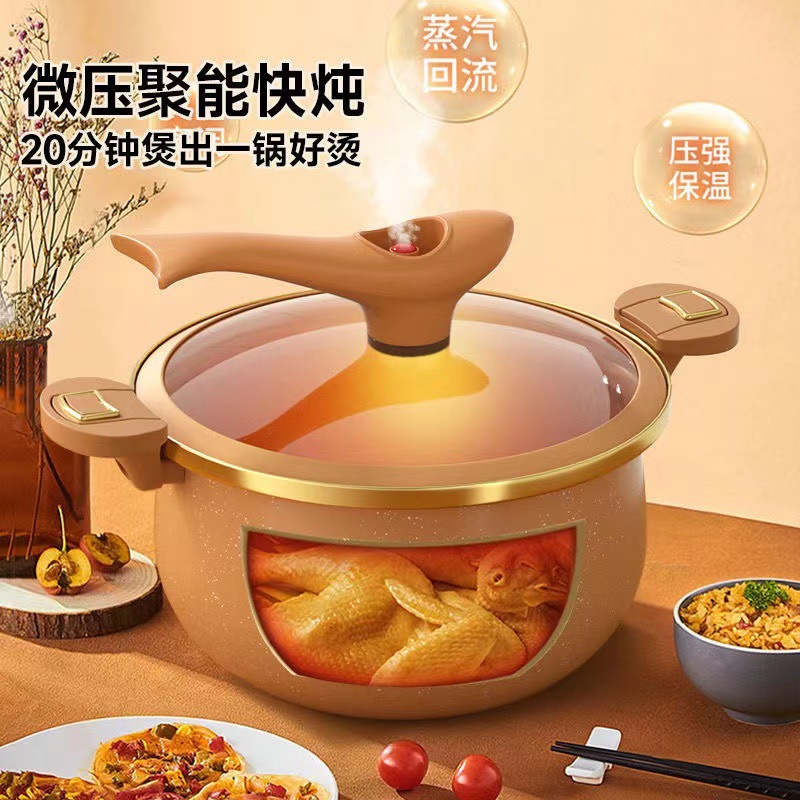 厂家批发新款陶土微压锅家用多功能大容量汤锅电磁炉通用不粘锅