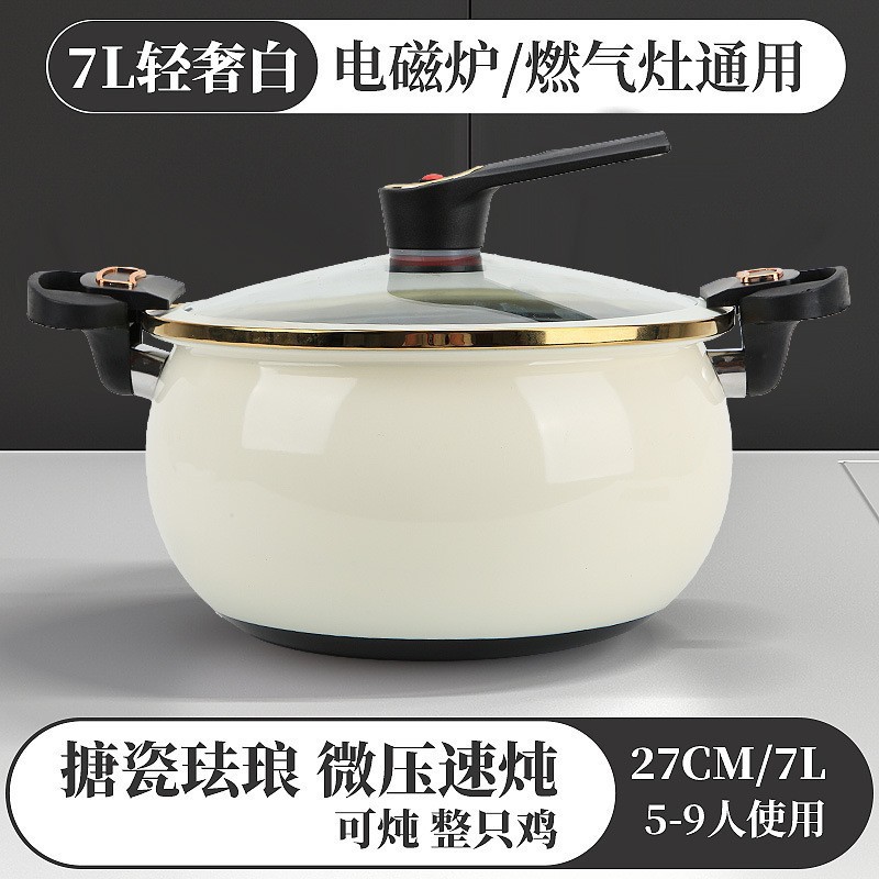 珐琅锅搪瓷微压锅家用大容量煲汤锅料理锅多功能双耳无涂层不粘锅