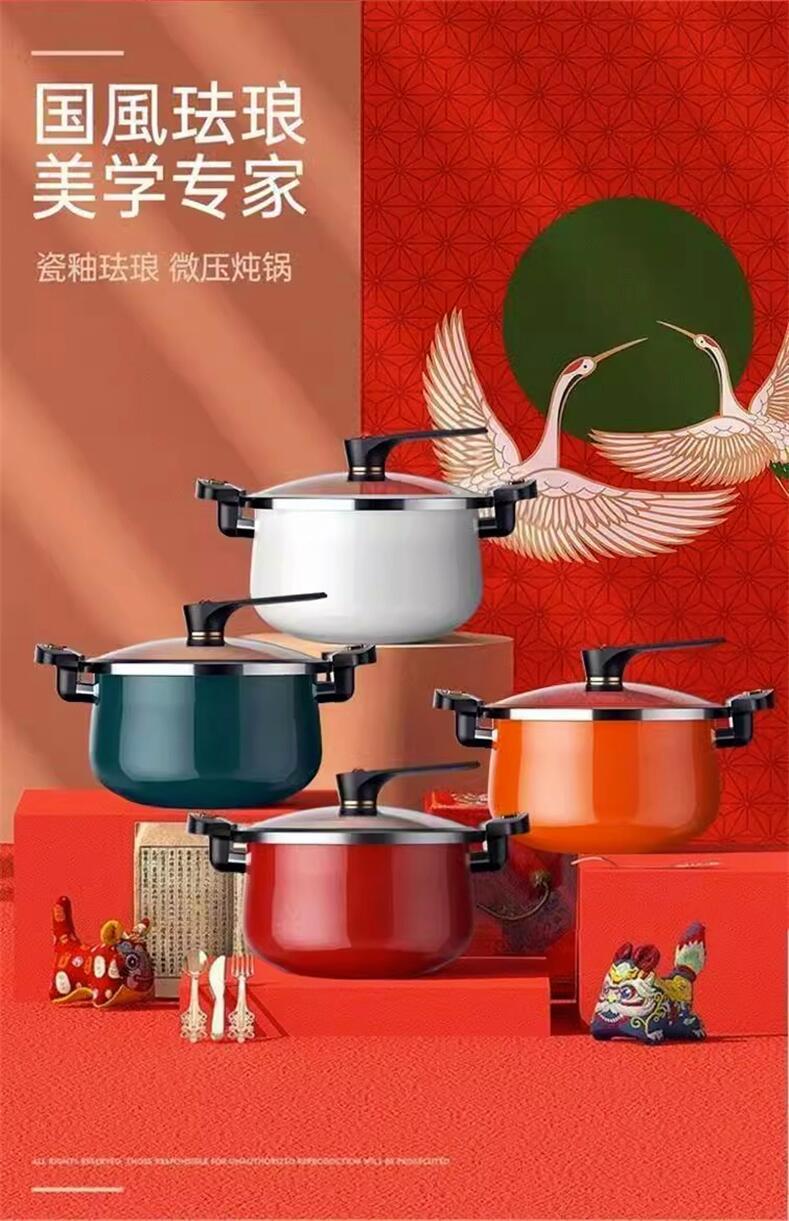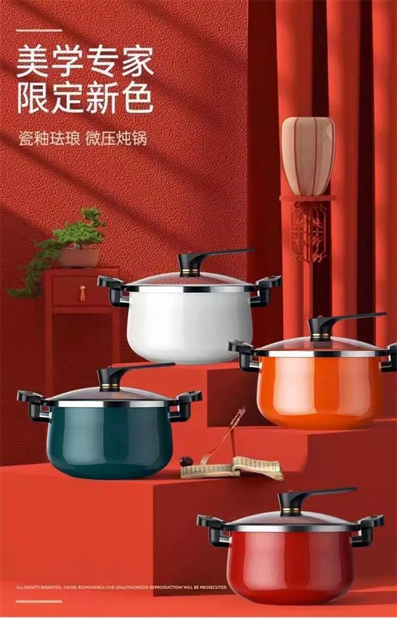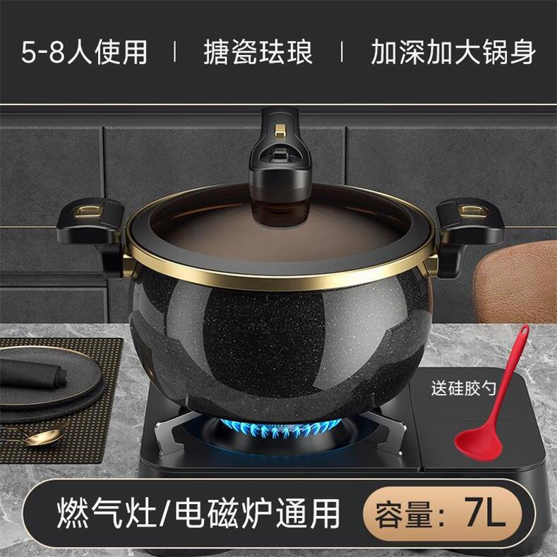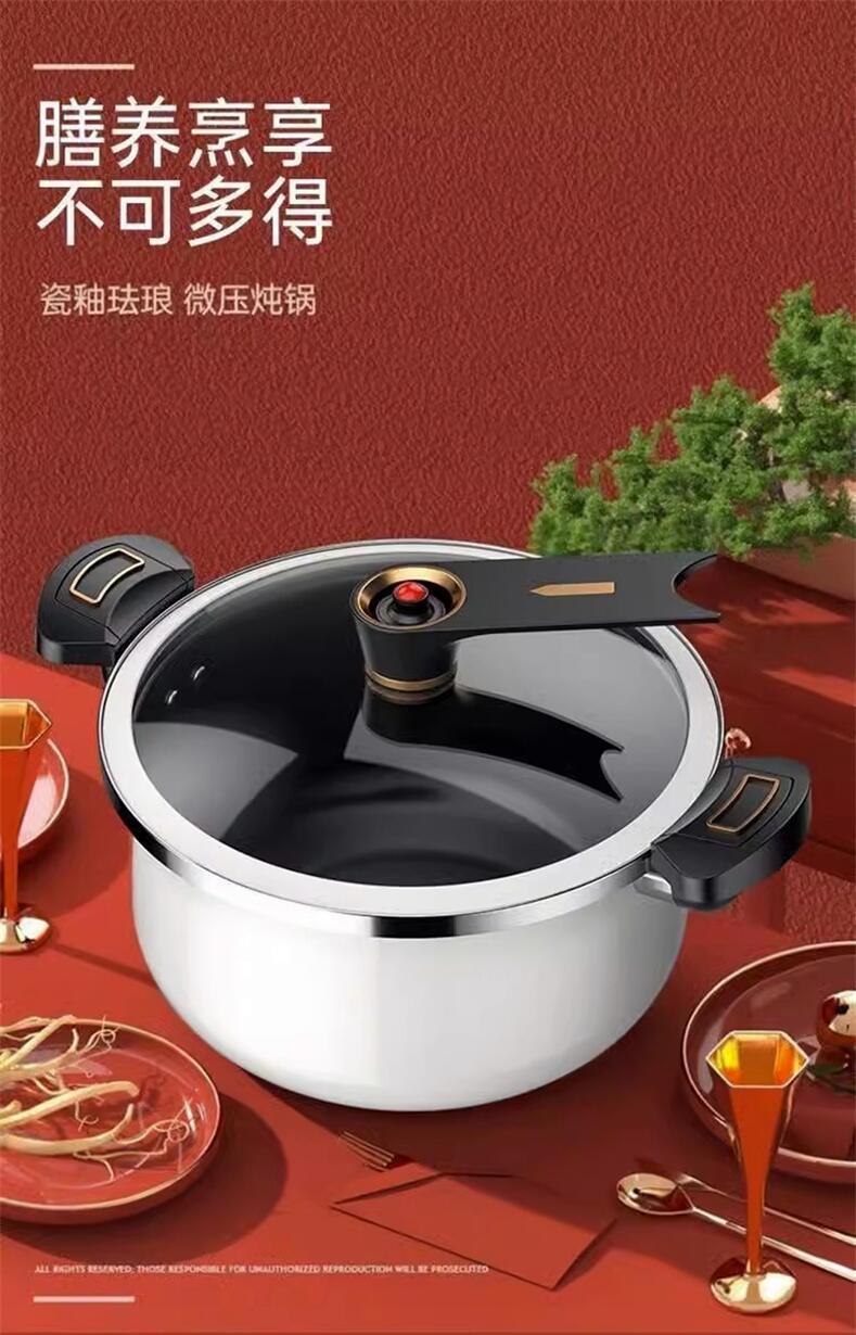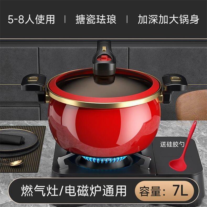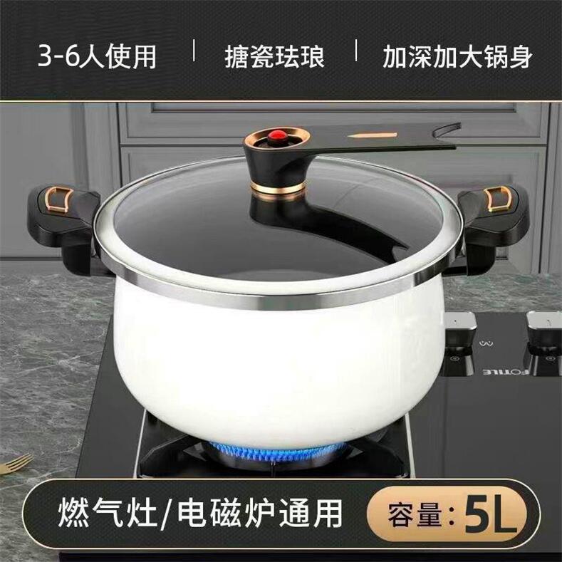网红搪瓷微压汤锅家用压力锅煮锅不粘锅双耳炖锅电磁炉专用大容量