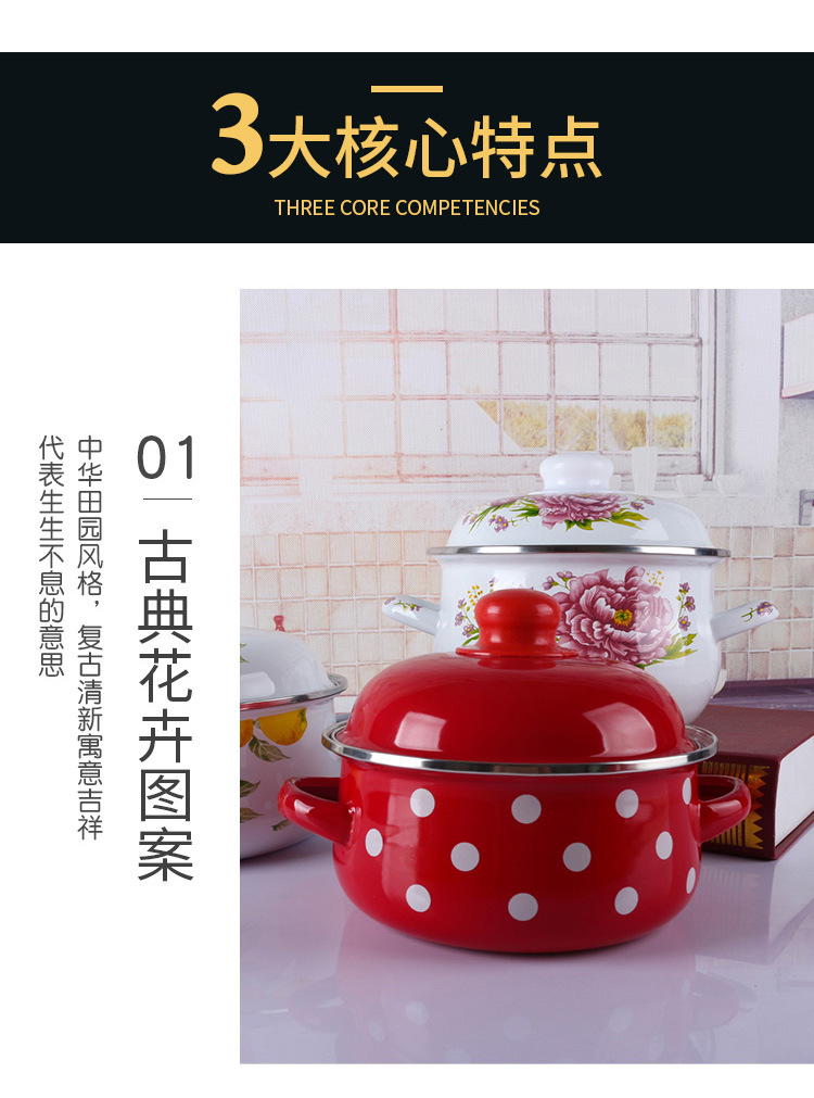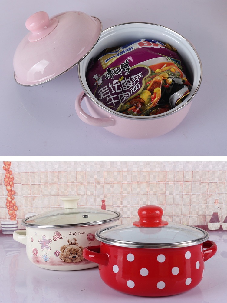 搪瓷小盖盆加厚双耳搪瓷锅汤锅搪瓷加深盆老式猪油盆饺子馅料盆搅