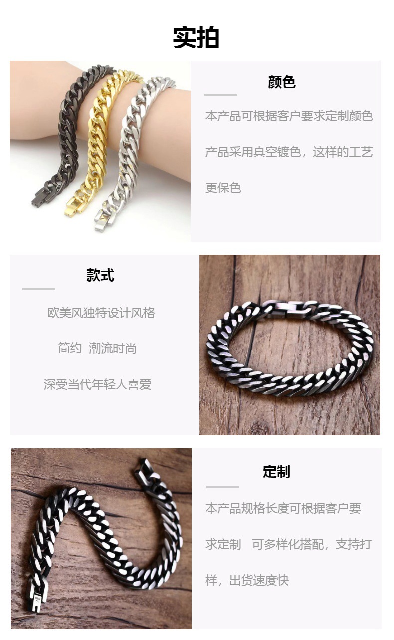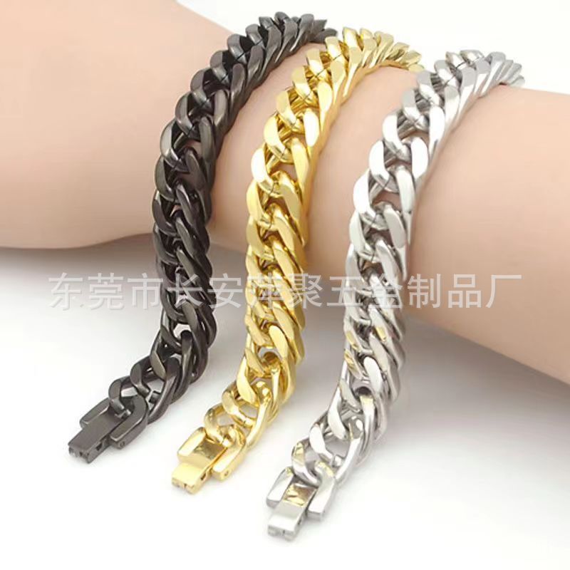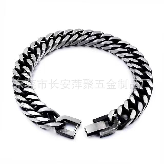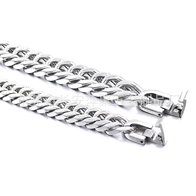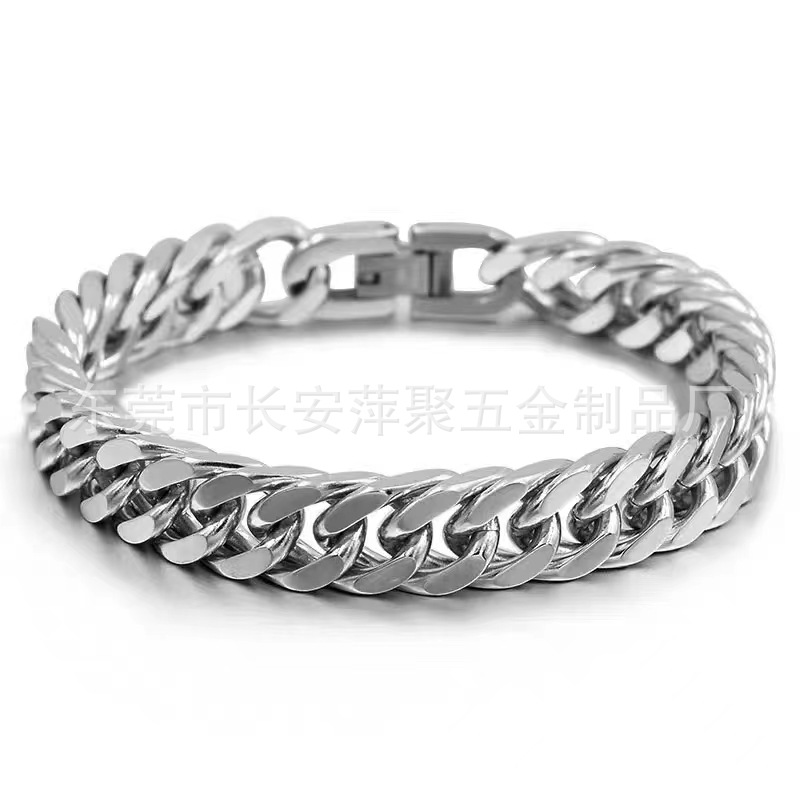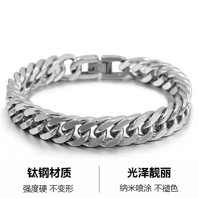 跨境热销钛钢加密四面磨双织手链欧美嘻哈潮流百搭简约古巴手链