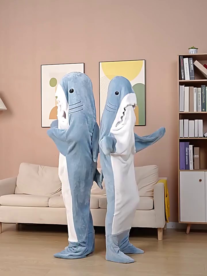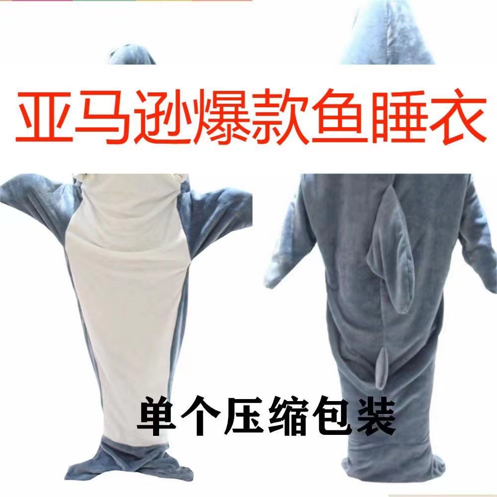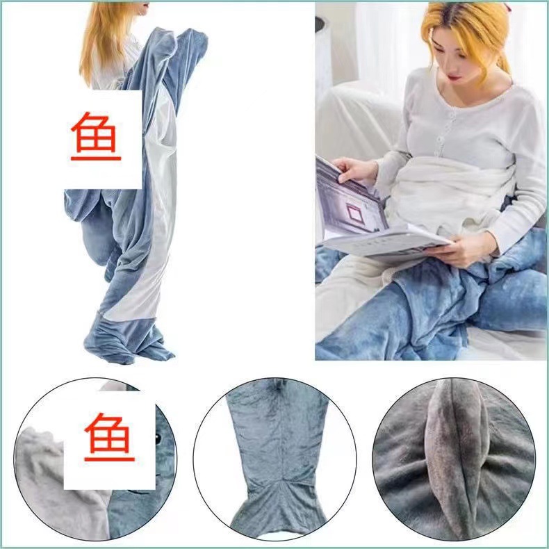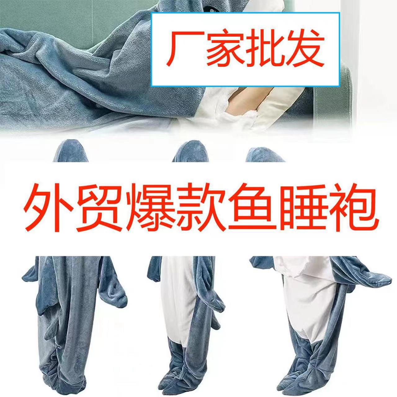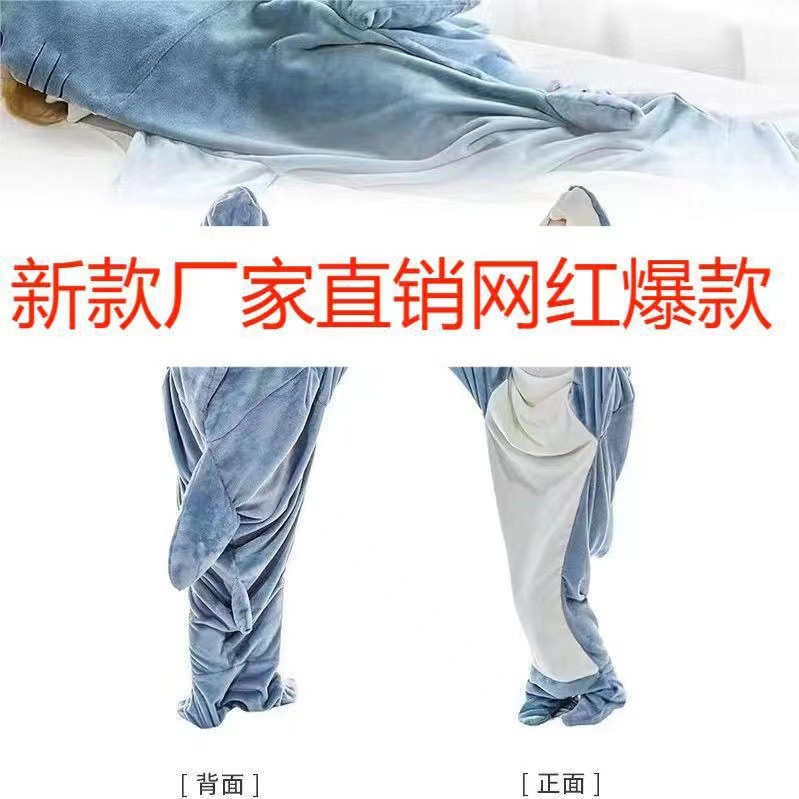 cross-border new winter cartoon shark sleeping bag animal one-piece pajamas flannel shark home wear one-piece shark nightgown