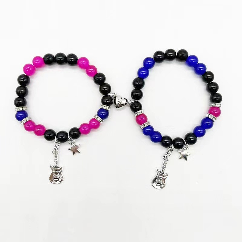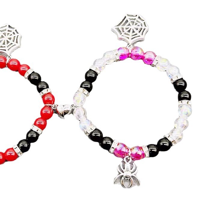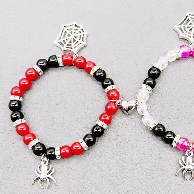 欧美跨境热销万圣节情侣手链红黑色系串珠手饰蜘蛛吊坠节日礼物