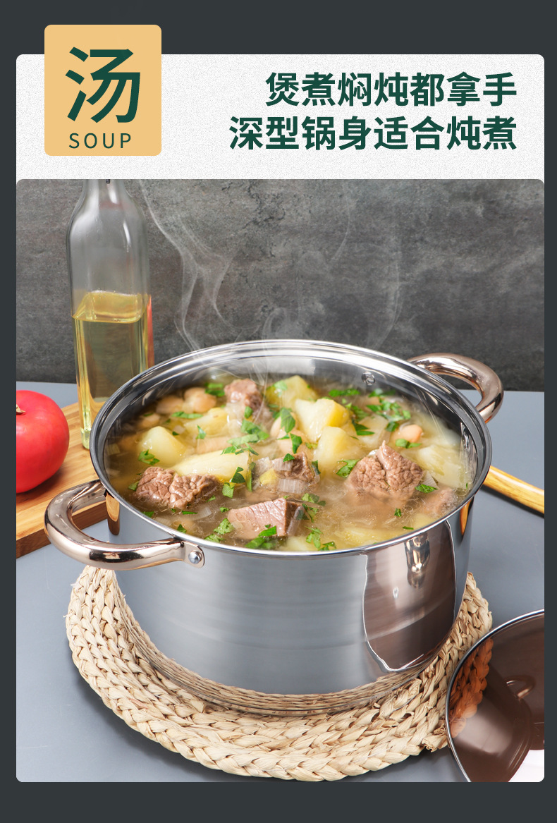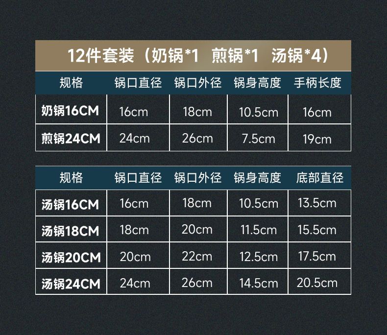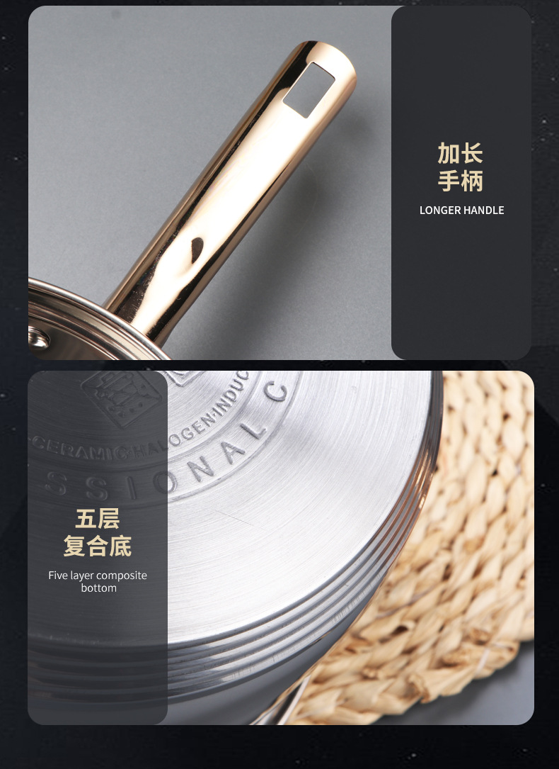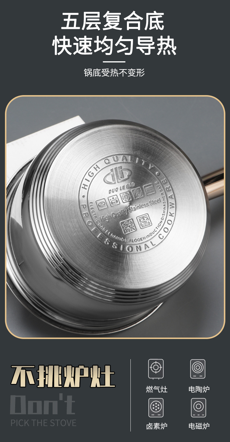 外贸跨境不锈钢12件套锅商用锅具批发奶锅煎锅复底礼品汤锅套装锅