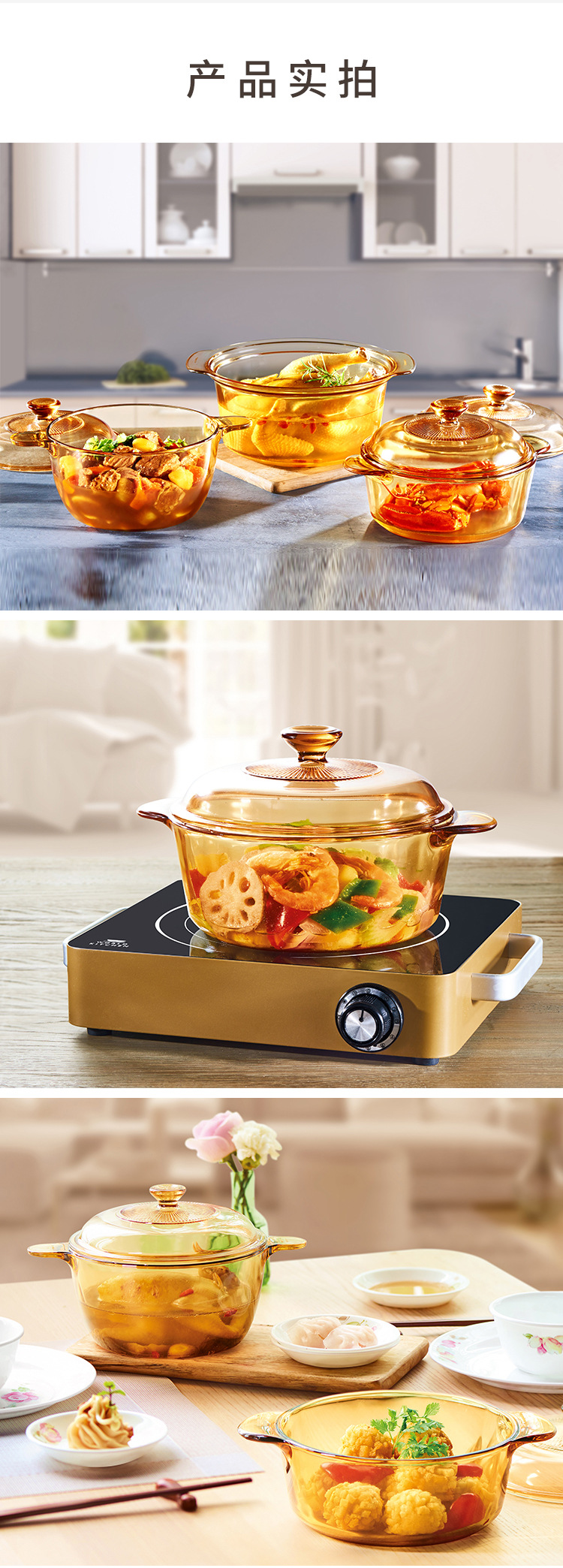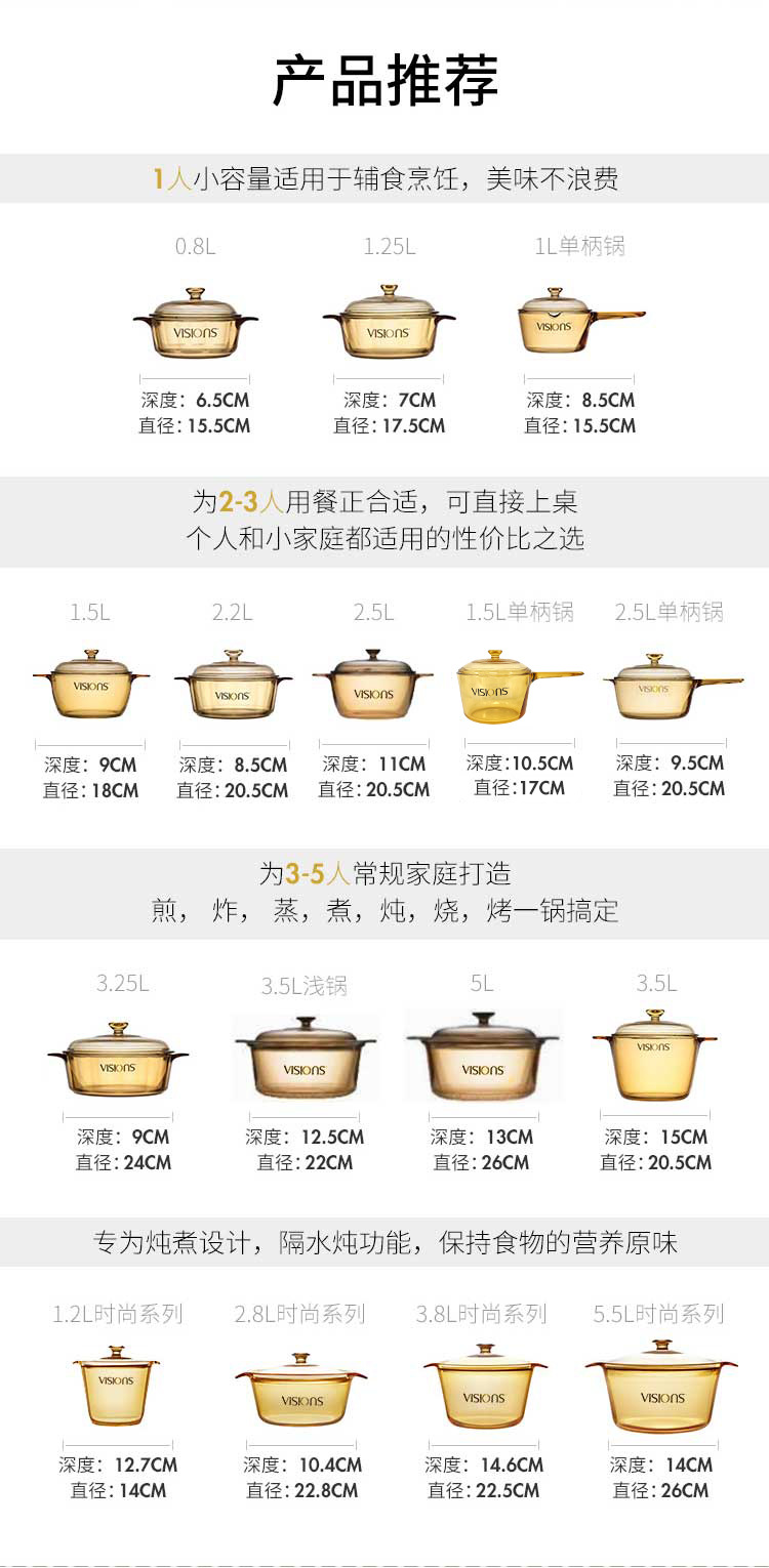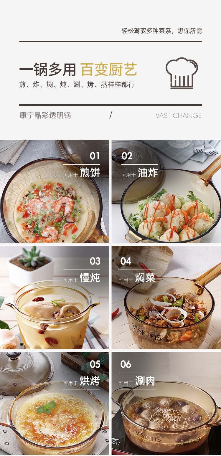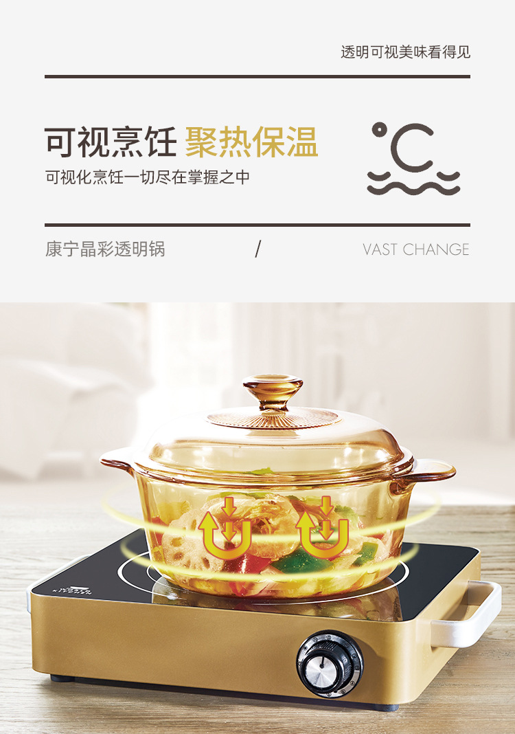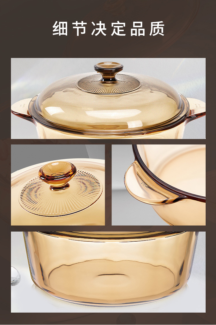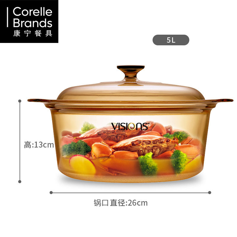 美国康宁琥珀锅带琥珀蒸格餐饮家用耐高温玻璃蒸锅炖锅明火直烧
