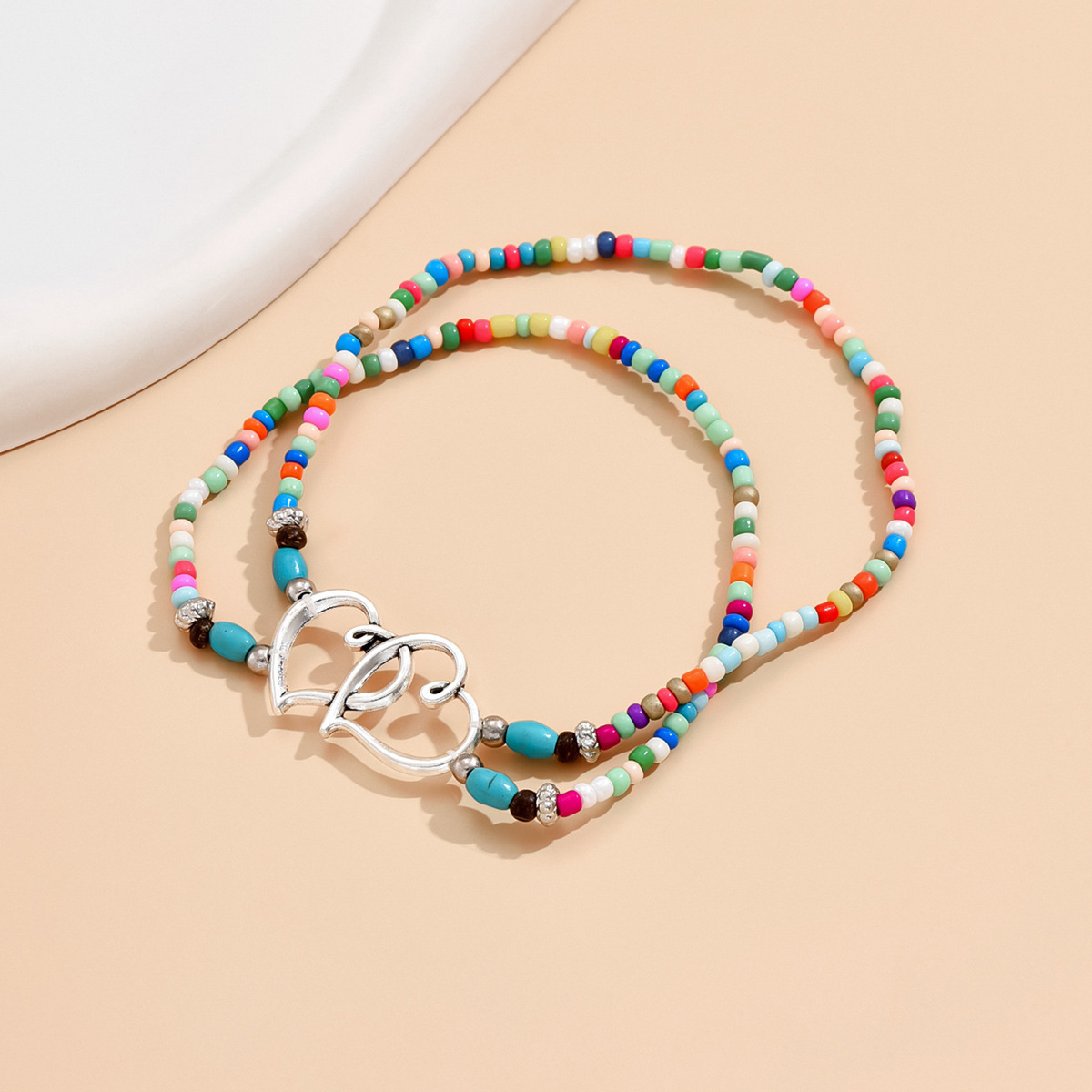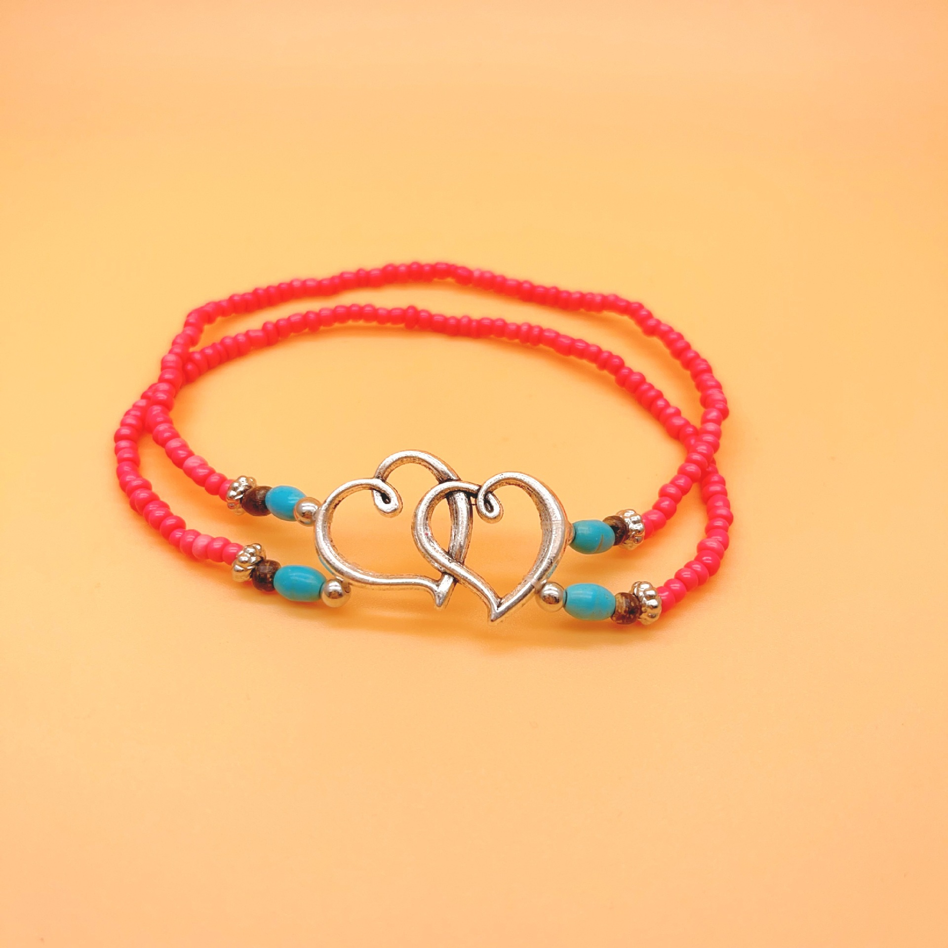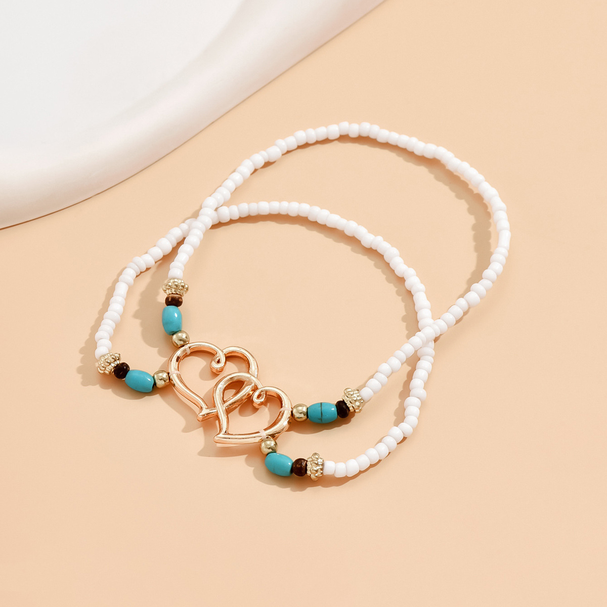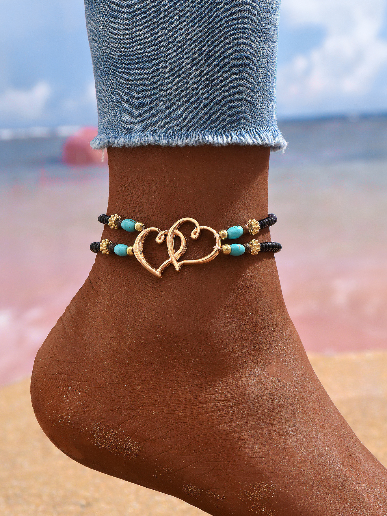 速卖通欧美沙滩风脚饰时尚叠戴式爱心米珠脚链心连心松石双层脚链