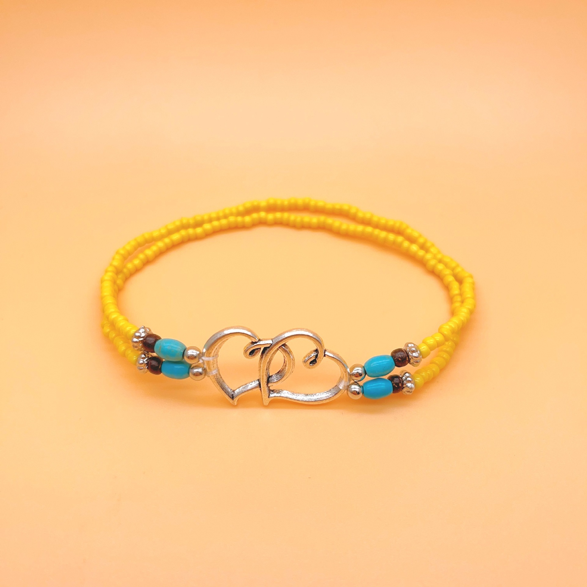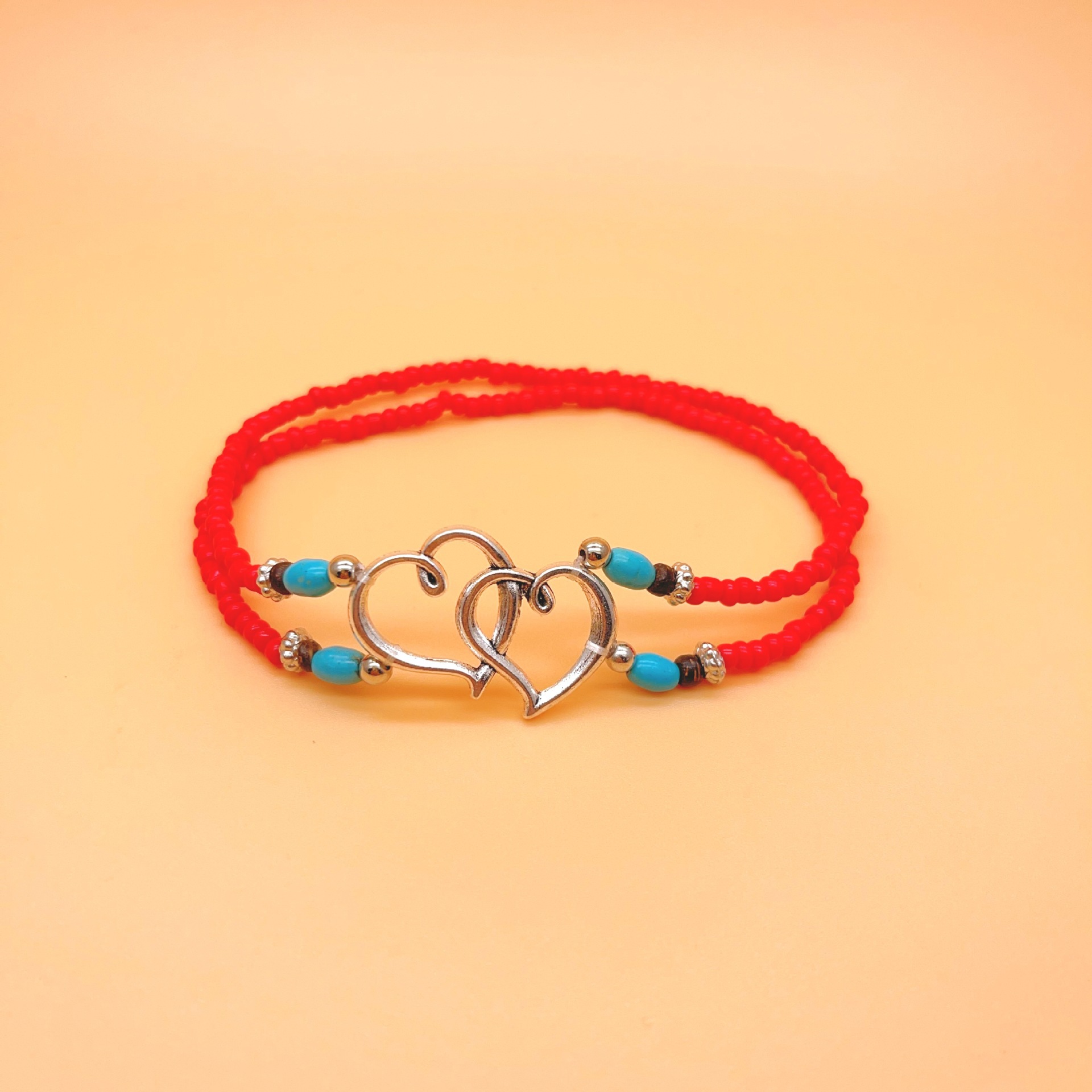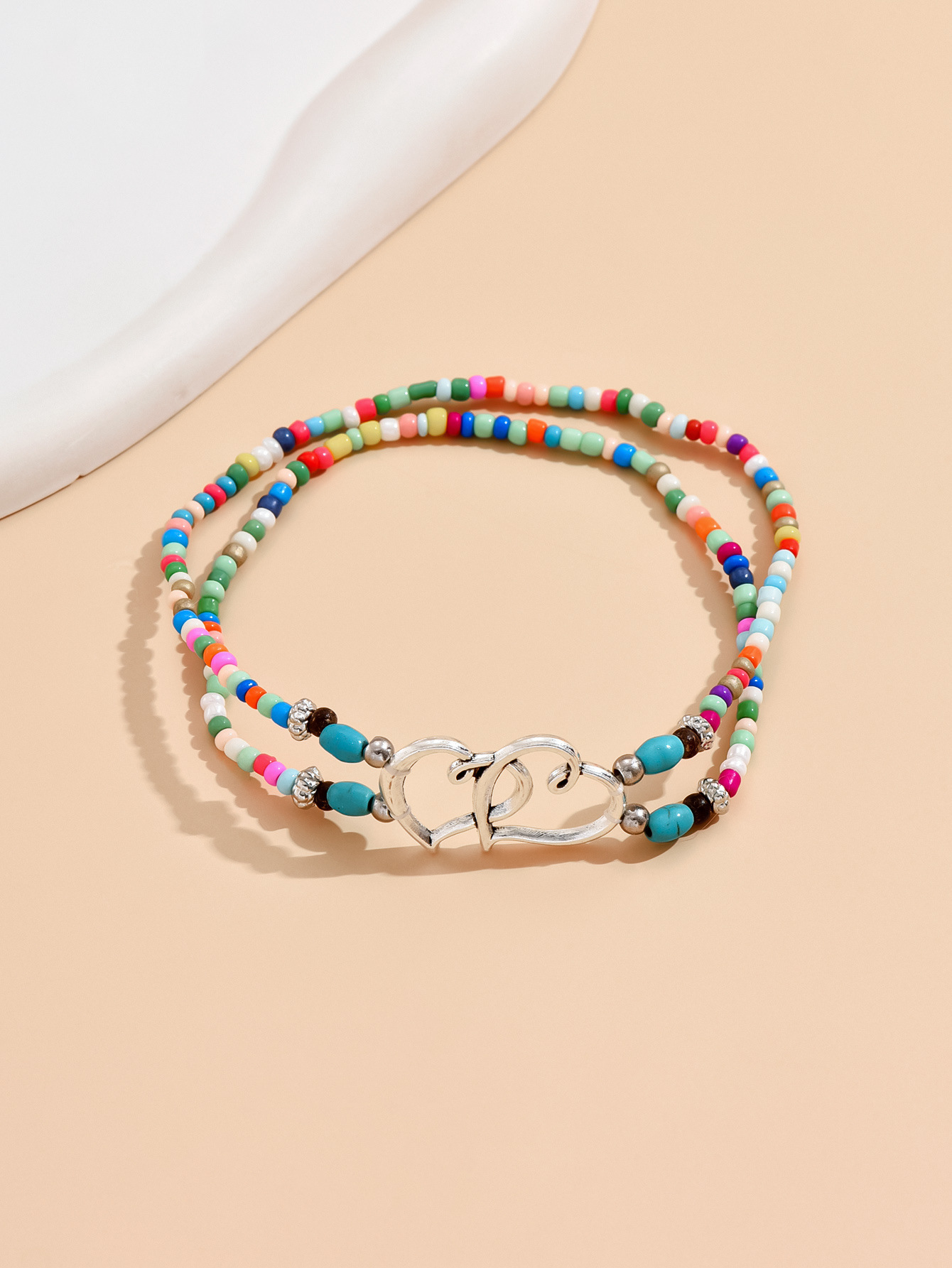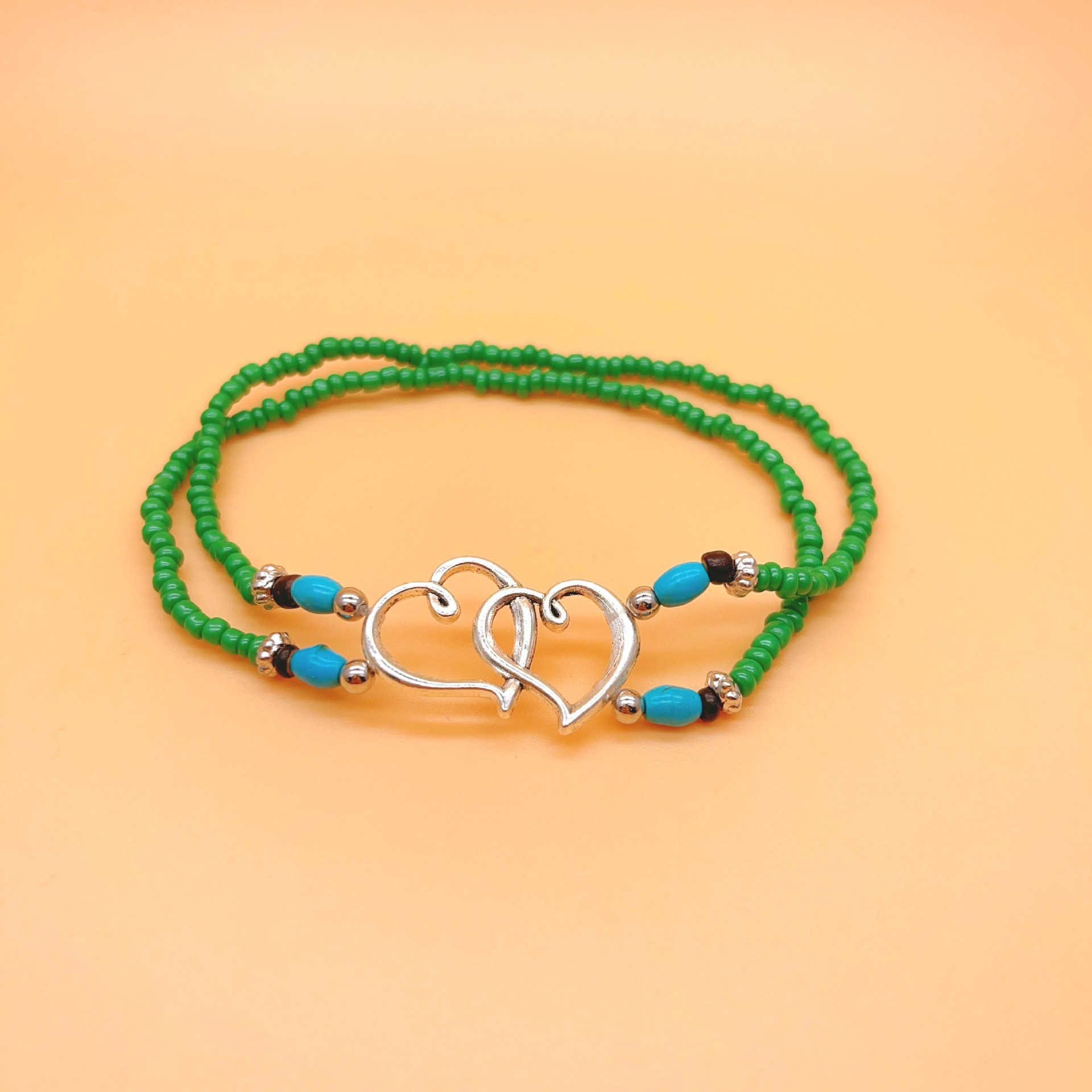 速卖通欧美沙滩风脚饰时尚叠戴式爱心米珠脚链心连心松石双层脚链