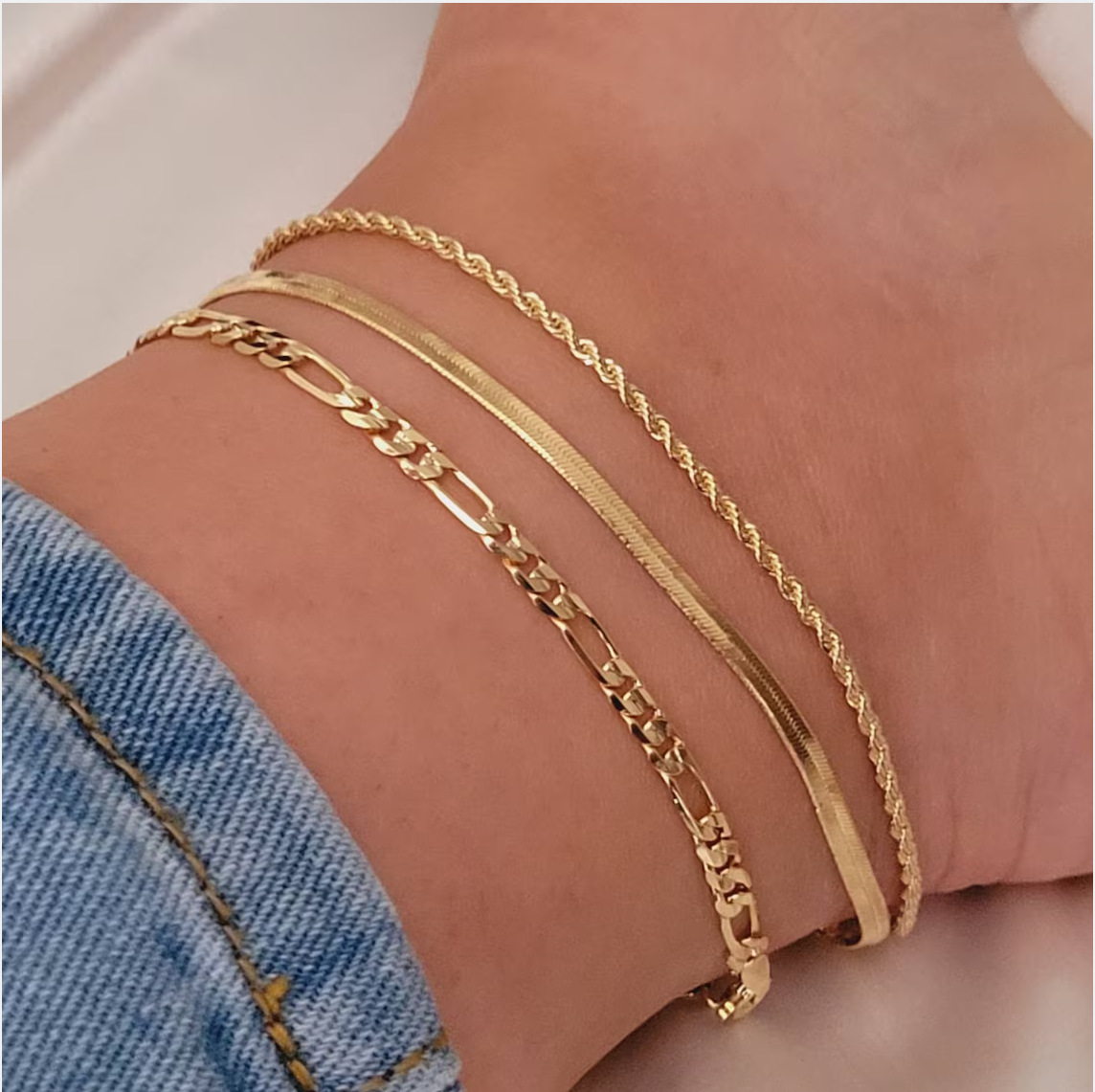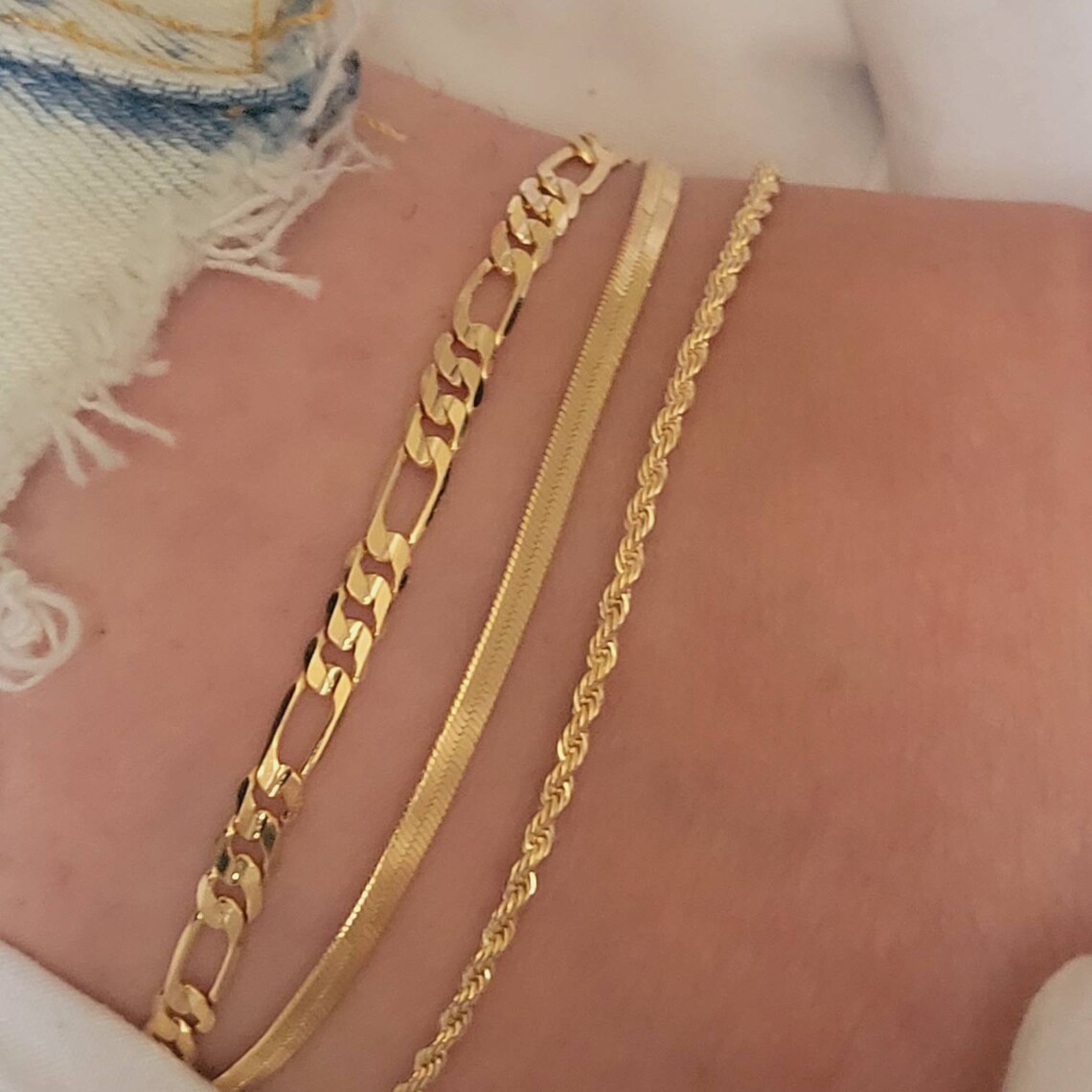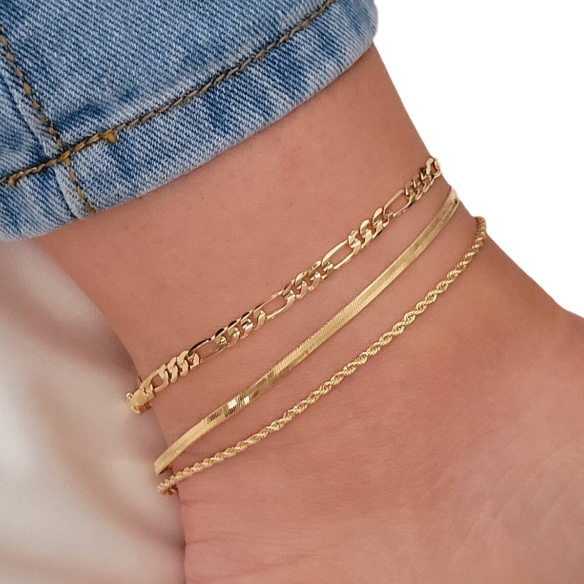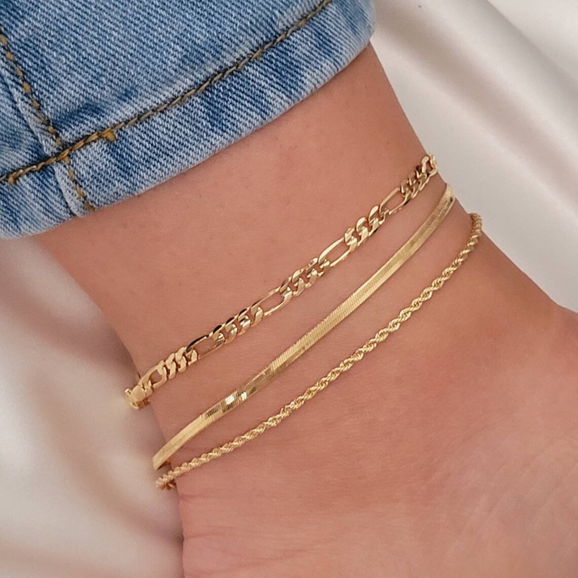 欧美跨境饰品简约个性扁蛇链麻花链三件套脚饰女新款时尚脚链套装