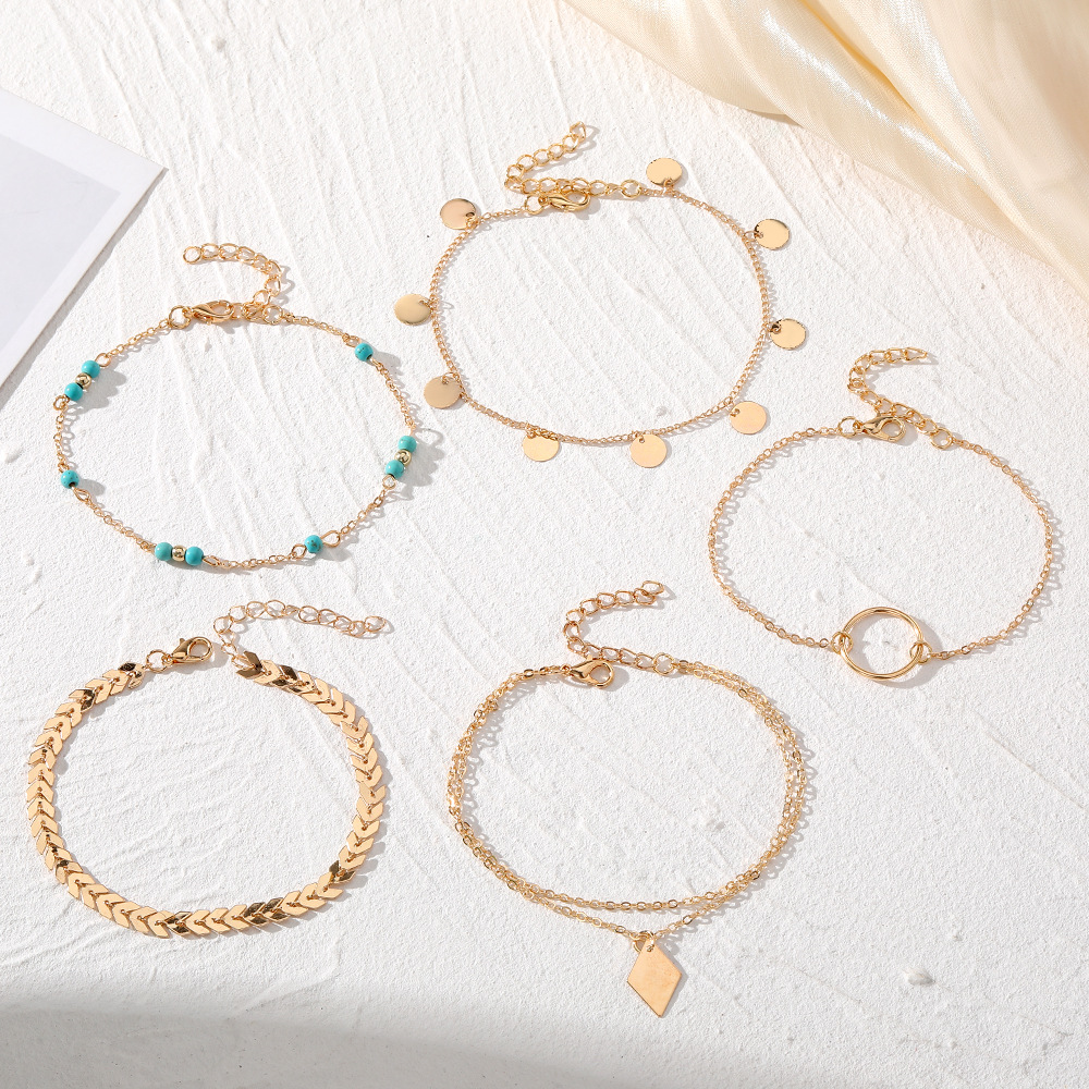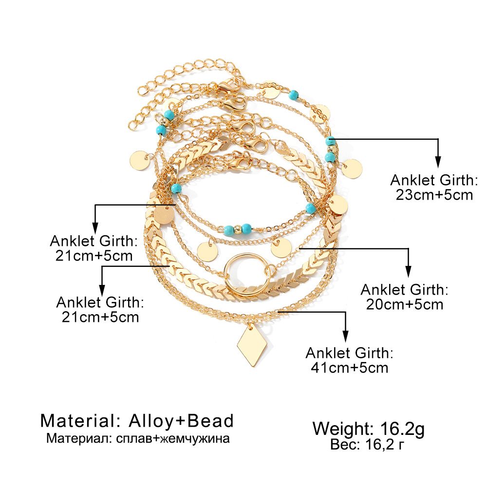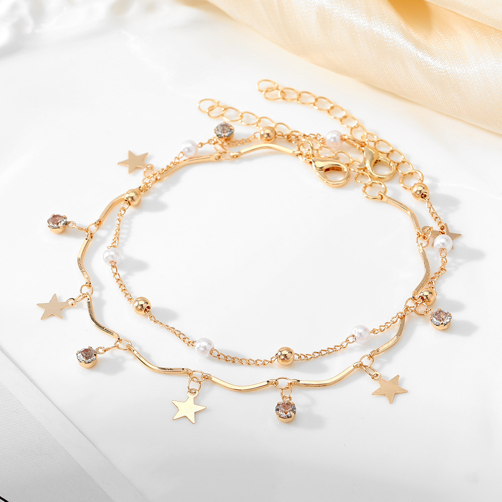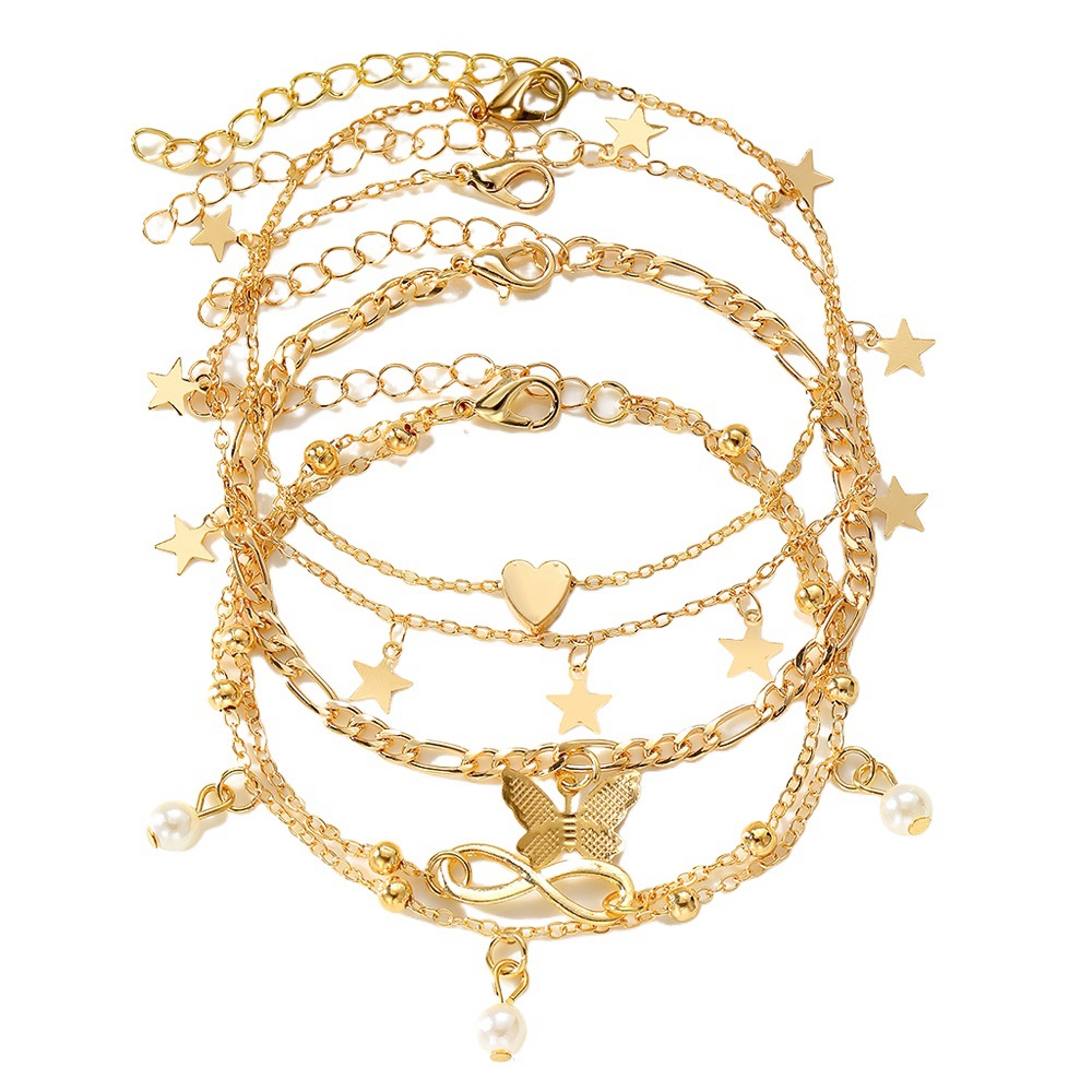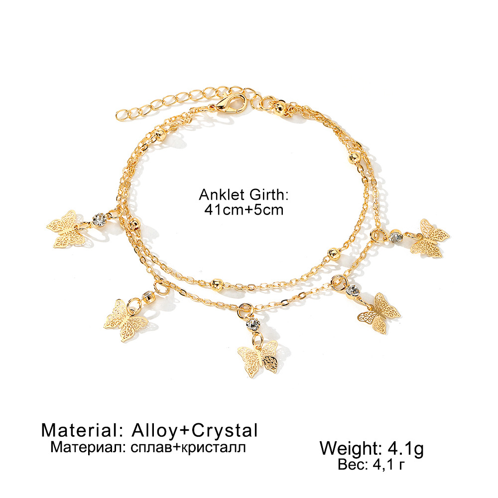 安朵跨境多层蝴蝶珍珠脚链女欧美小众沙滩手链饰品时尚高级感配饰